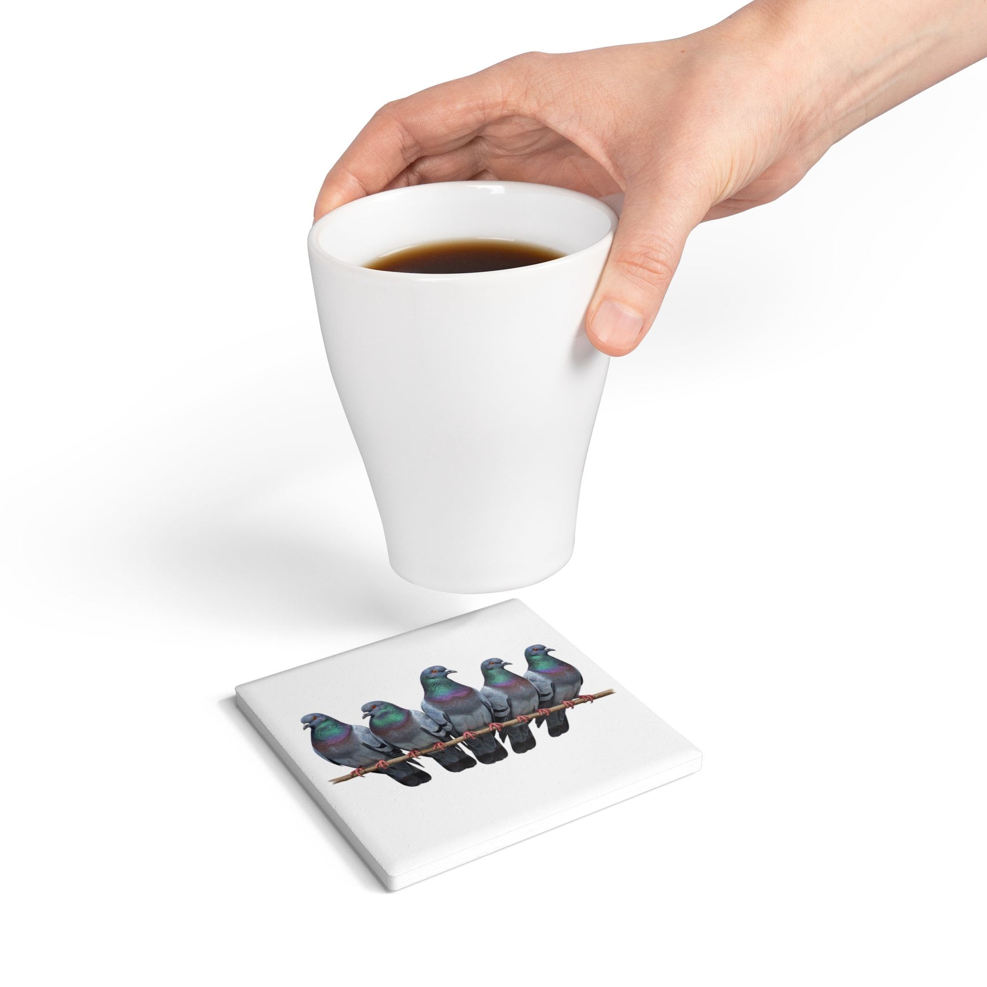 Mach’s dir gemütlich: Deine neuen Tauben Keramik-Untersetzer mit Vogelmotiv!