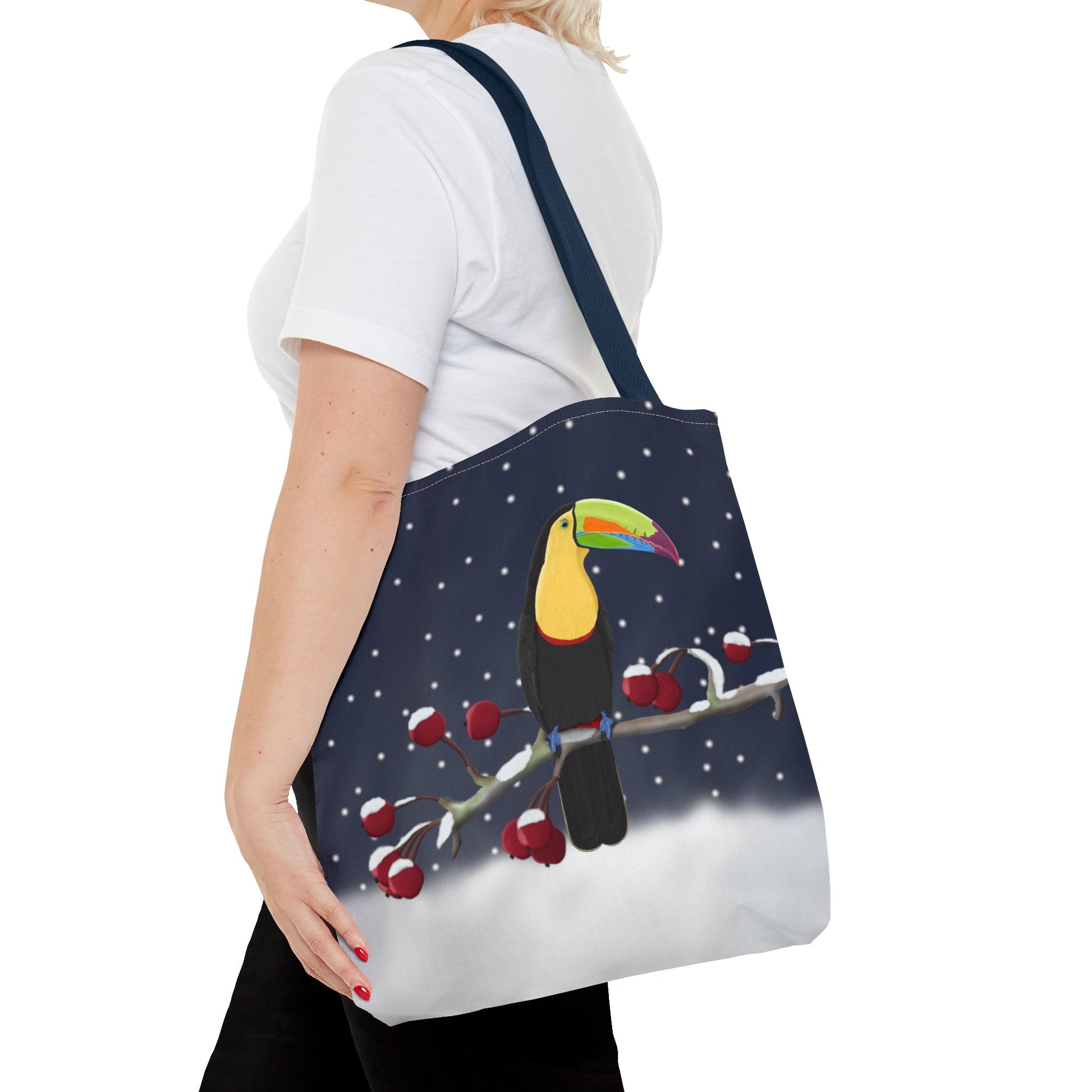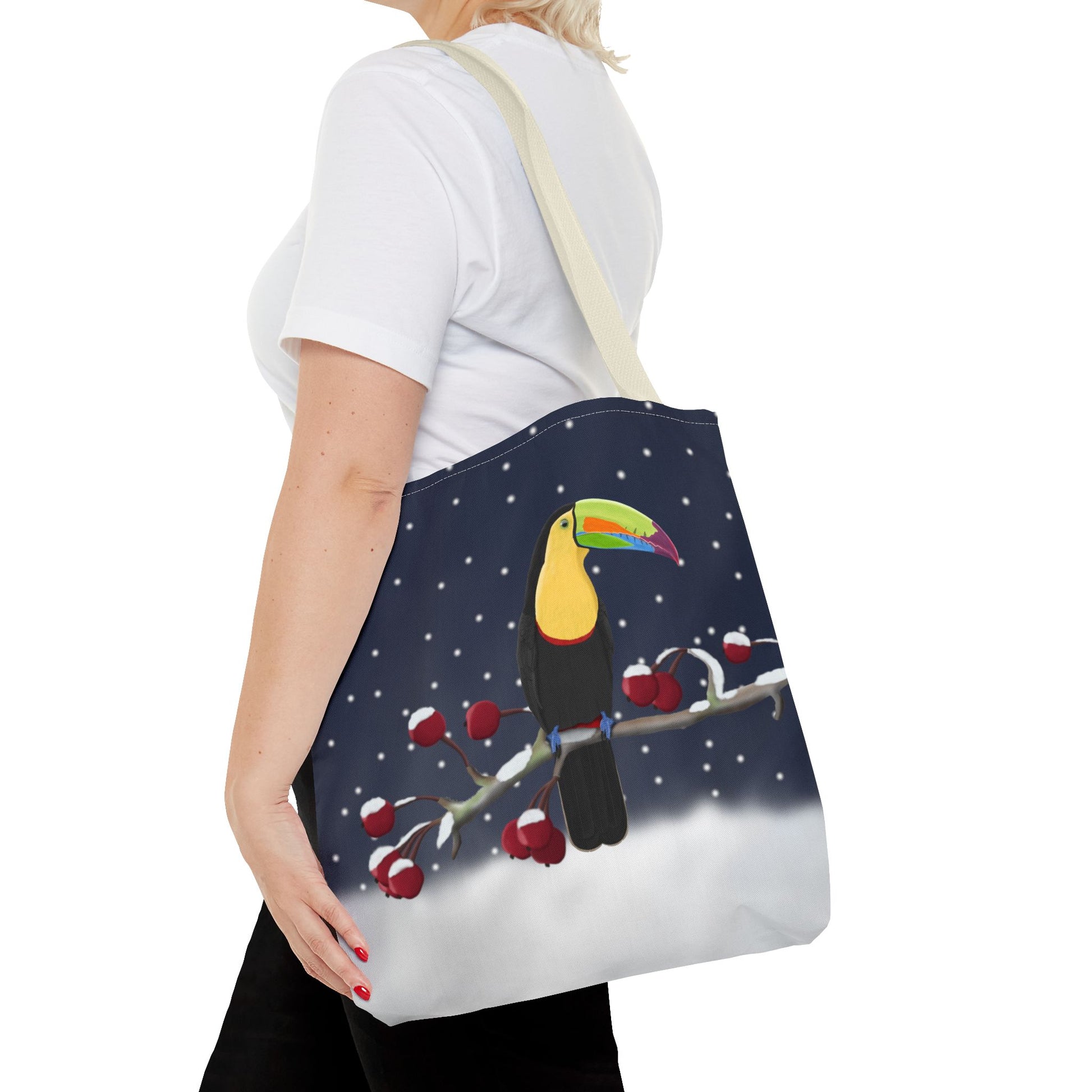 Tukan auf einem Ast im Schnee Vogel Tragetasche
