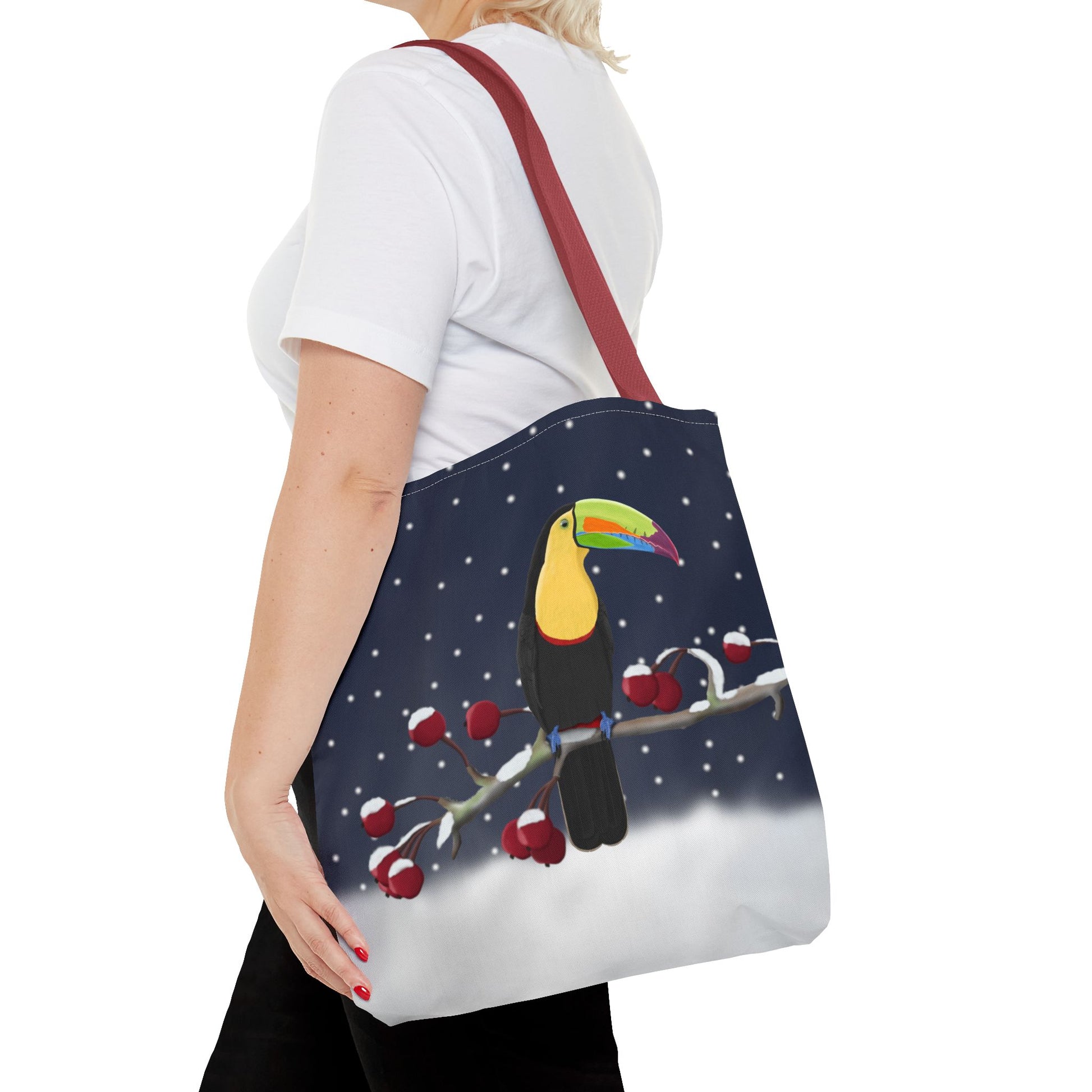 Erlebe die Freude an der Vogelbeobachtung mit unserer weihnachtlichen Tukan auf einem Ast im Schnee Vogel Tragetasche! Diese stilvolle Tasche mit den Maßen 40x40cm und einem lebhaften Weihnachtsdesign ist perfekt geeignet, um alle wichtigen Dinge für die Vogelbeobachtung mitzunehmen. Ob du nun ein erfahrener Vogelbeobachter bist oder gerade erst anfängst, diese Tasche ist ein Muss für alle Vogelliebhaber.