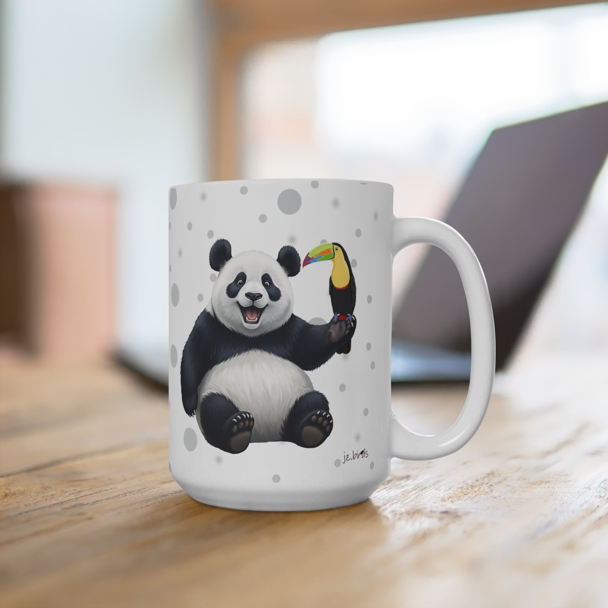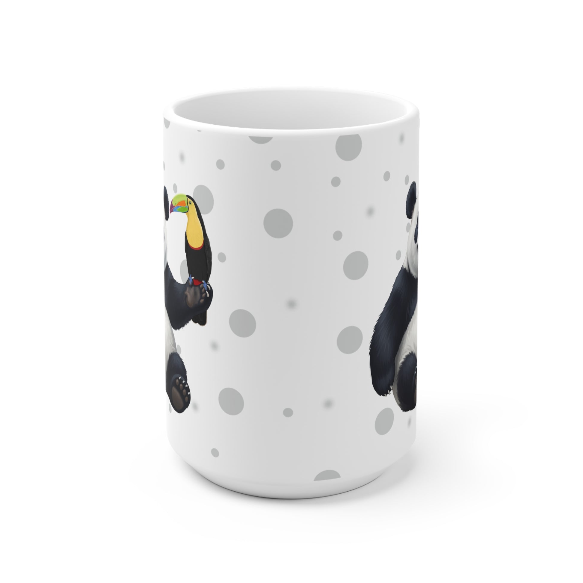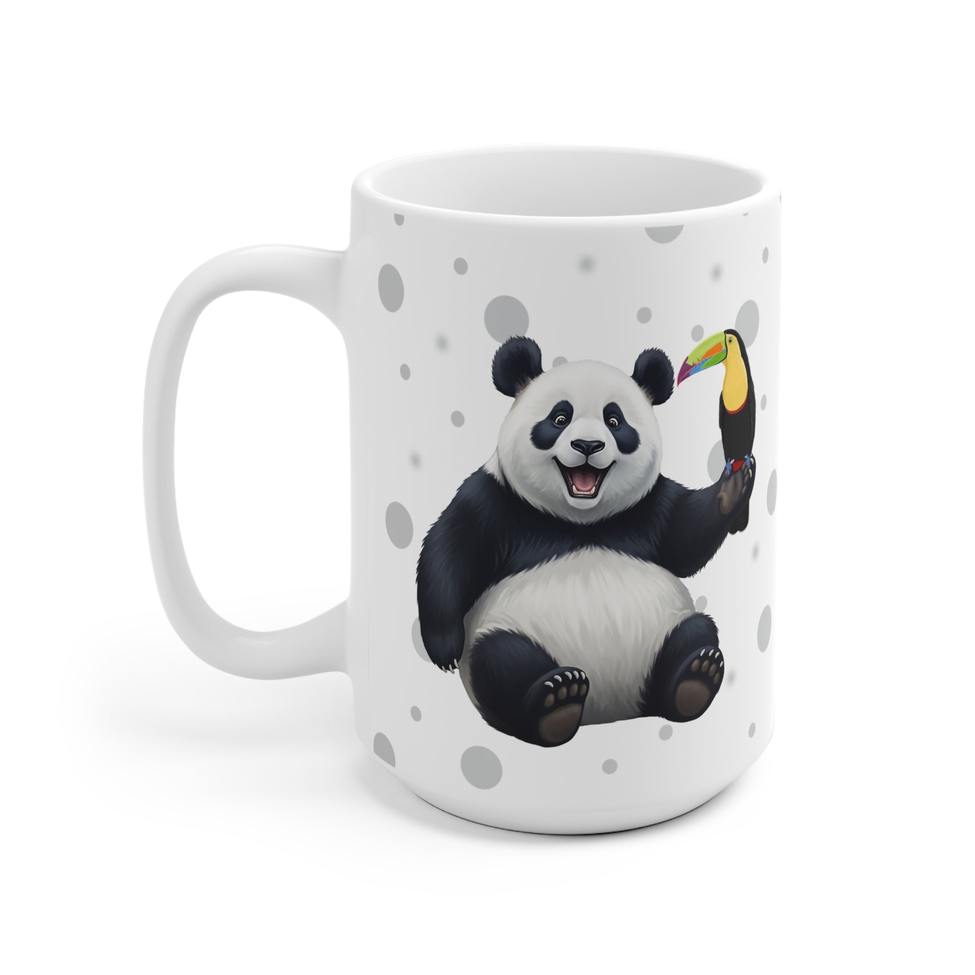 Unsere Tukan mit einem fröhlichen Panda Vogel Tiermotiv Tasse ist perfekt für Tee und heiße Schokolade. Die klassische Tasse ist in den Größen 11 oz. (0,33l) und 15 oz. (0,44l) erhältlich und eignet sich hervorragend als Geschenk für alle Vogelfreunde, Vogelbeobachter und Tierfreunde.