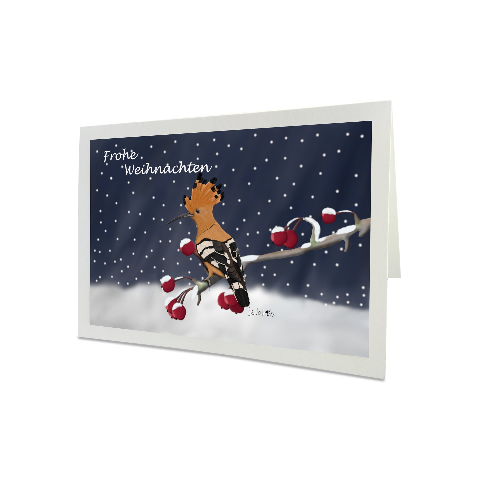 Weihnachtskarte Wiedehopf im Schnee Vogel Zeichnung Frohe Weihnachten Inklusive Umschlag