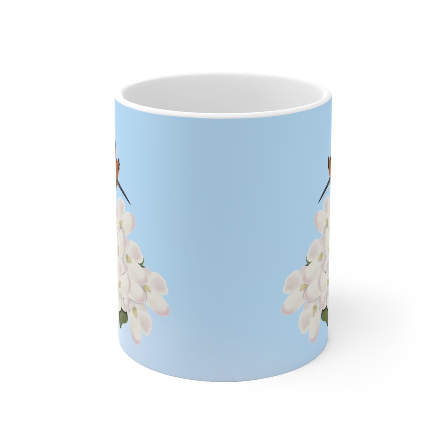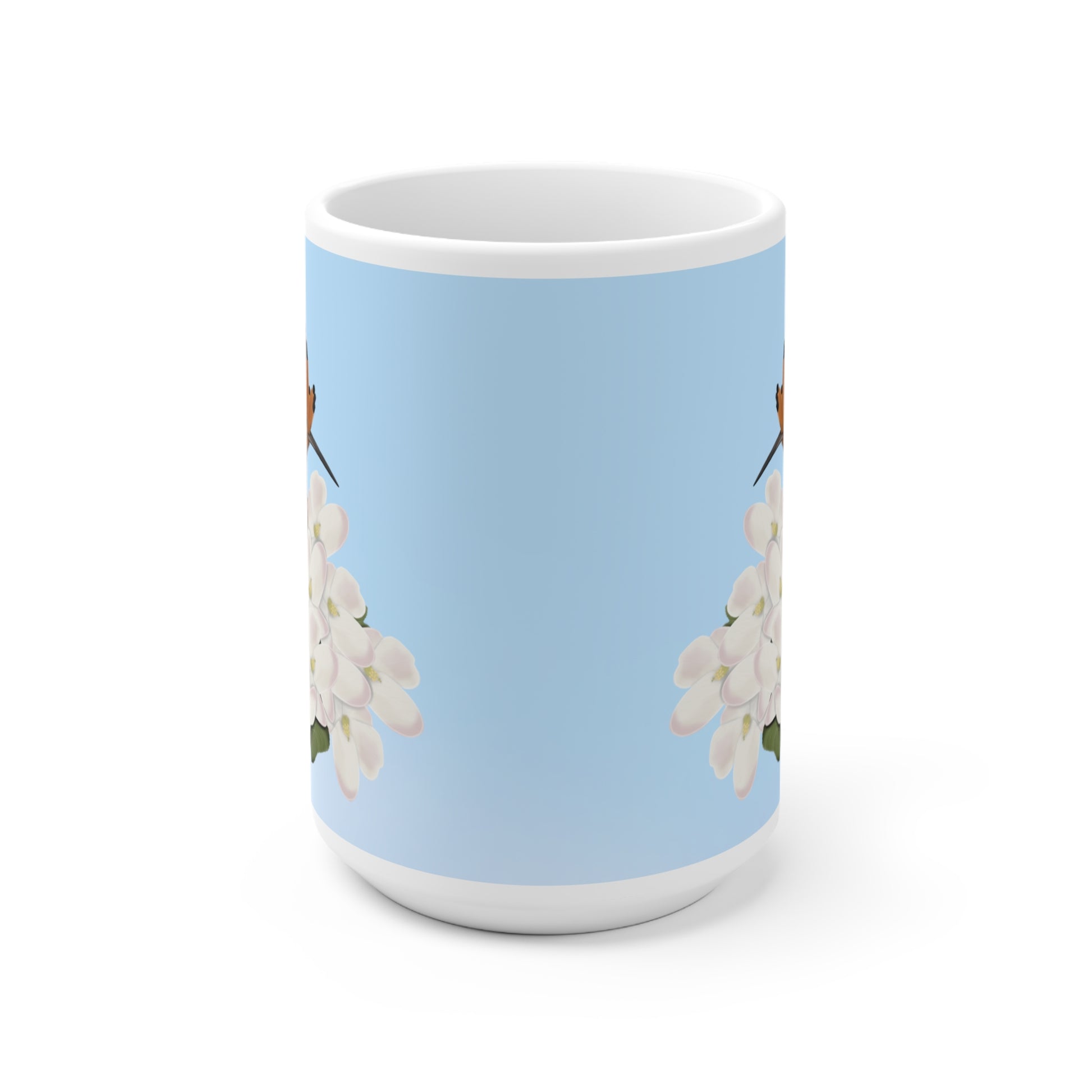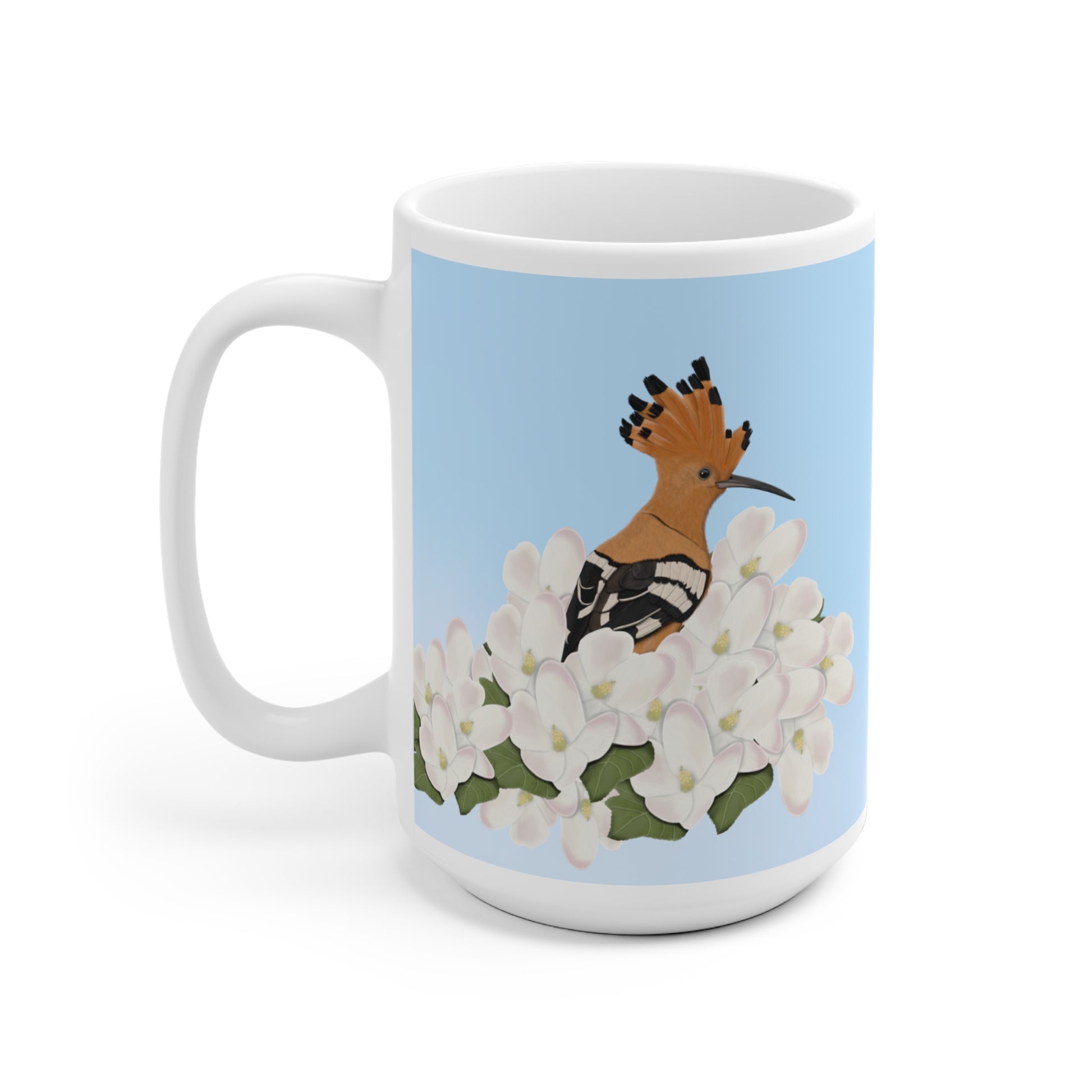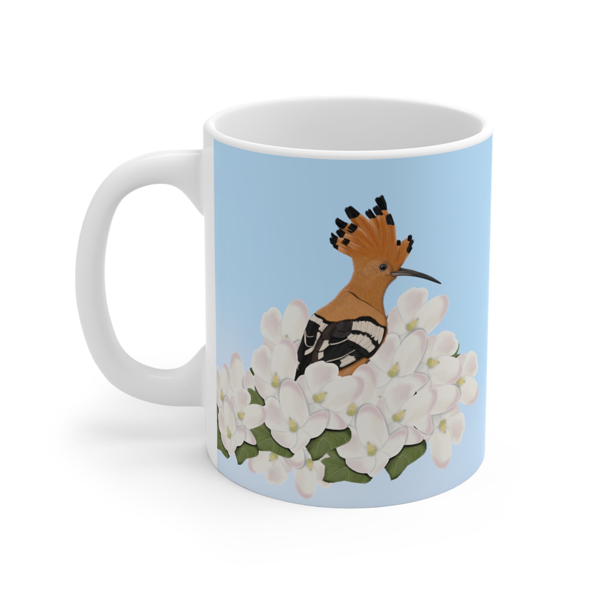 Unsere Wiedehopf mit Apfelblüten Vogel Tasse ist perfekt für Tee und heiße Schokolade. Die klassische Tasse ist in den Größen 11 oz. (0,33l) und 15 oz. (0,44l) erhältlich und eignet sich hervorragend als Geschenk für alle Vogelfreunde und Vogelbeobachter.