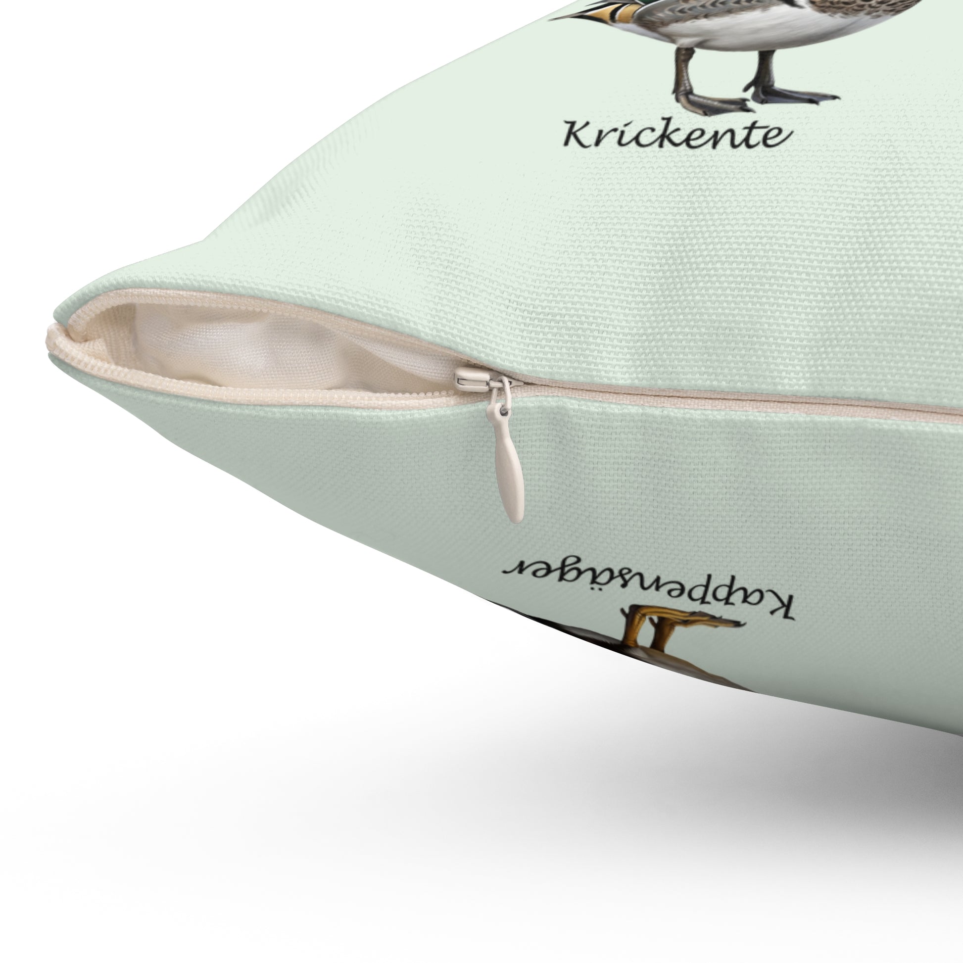 Enten Kissen in Salbeigrün | Stockente, Mandarinente Dekokissen 40x40 mit Vogelmotiv für dein Zuhause