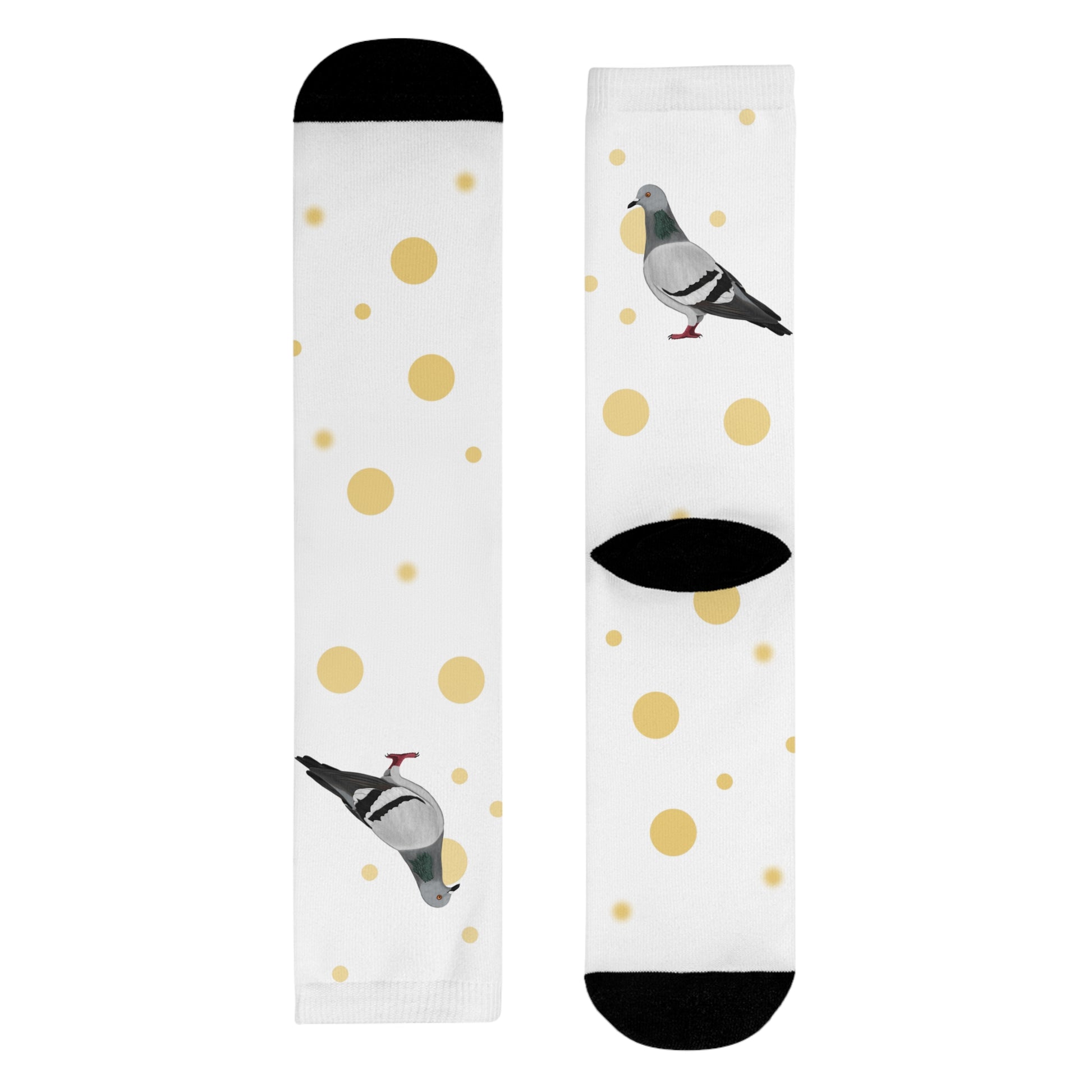 Taube Vogel Socken mit Goldenen Punkten für Vogelfreunde & Vogelbeobachter Weiß