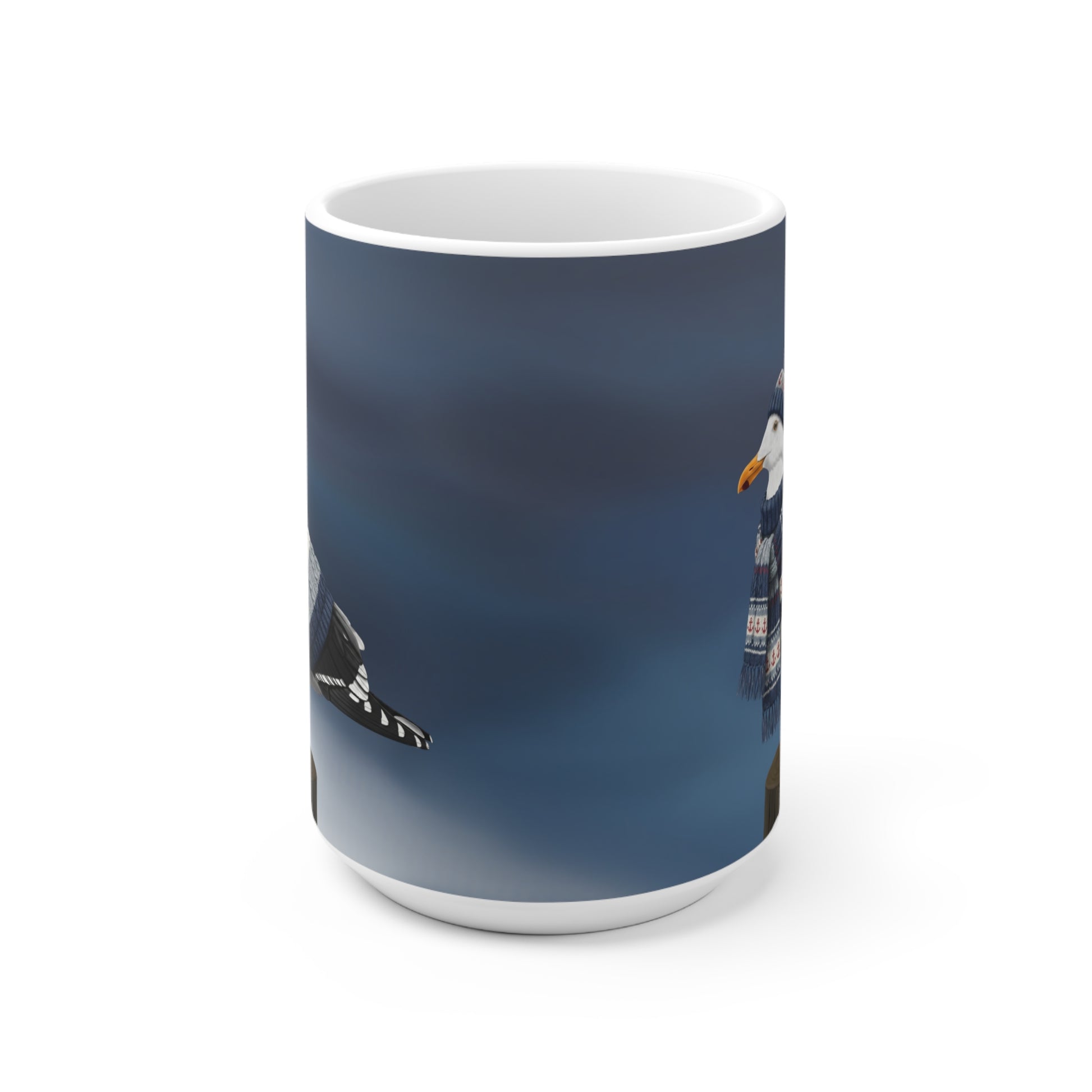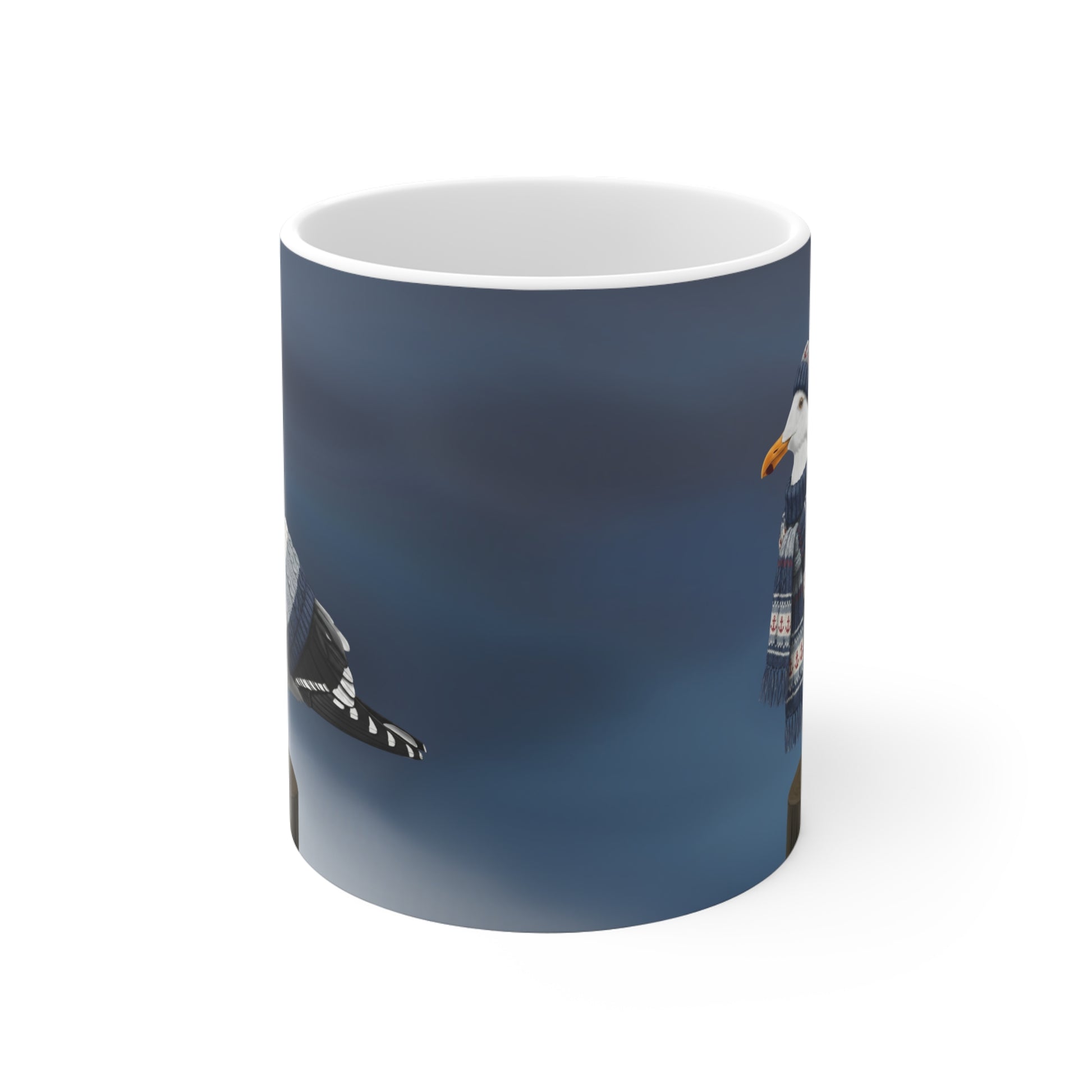 Möwe mit Strickpullover Weihnachtliche Tasse mit Vogelmotiv – Ideal für Kakao & Kaffee