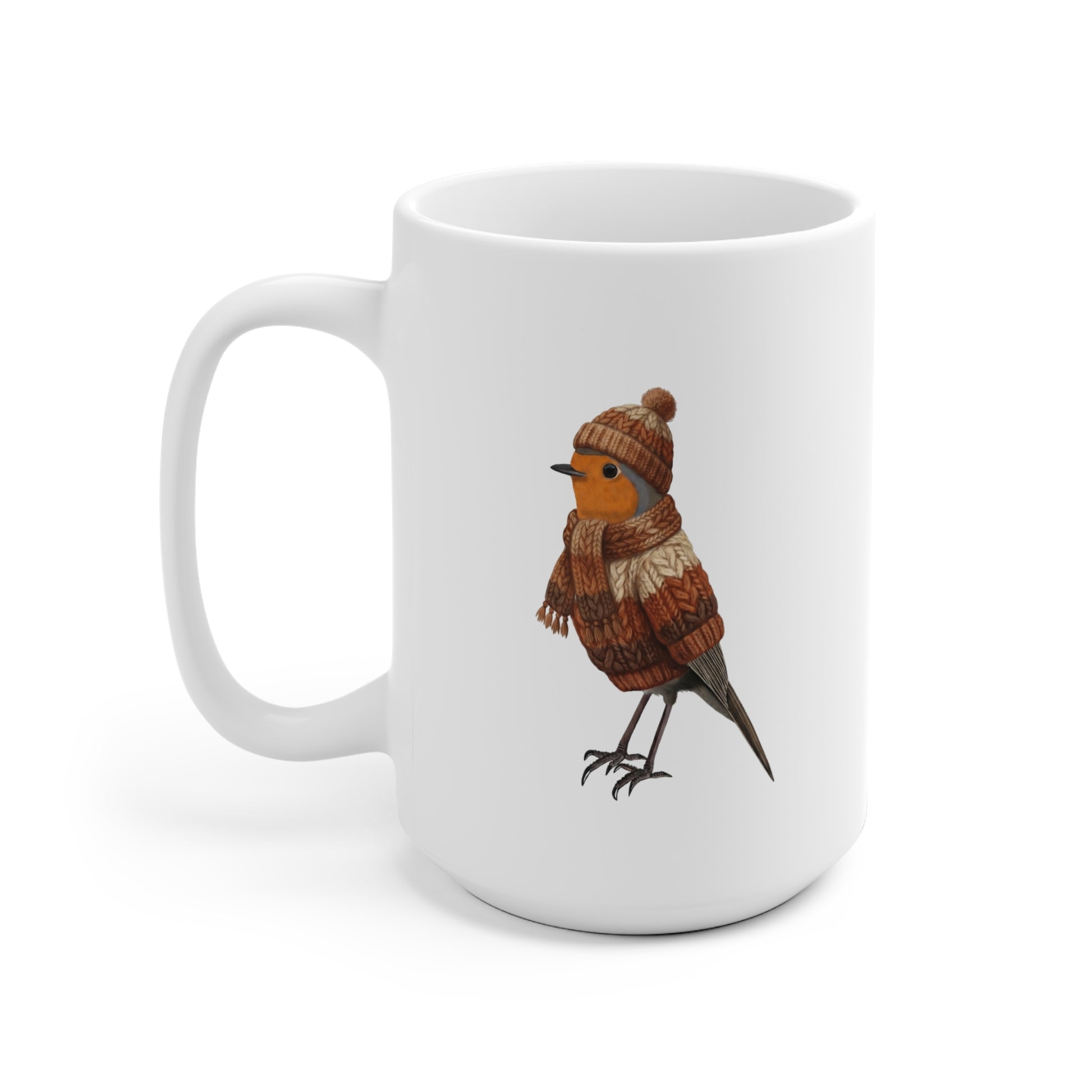 Mug de Noël Rouge-Gorge en Pull Tricoté – Idéal pour Chocolat Chaud & Café