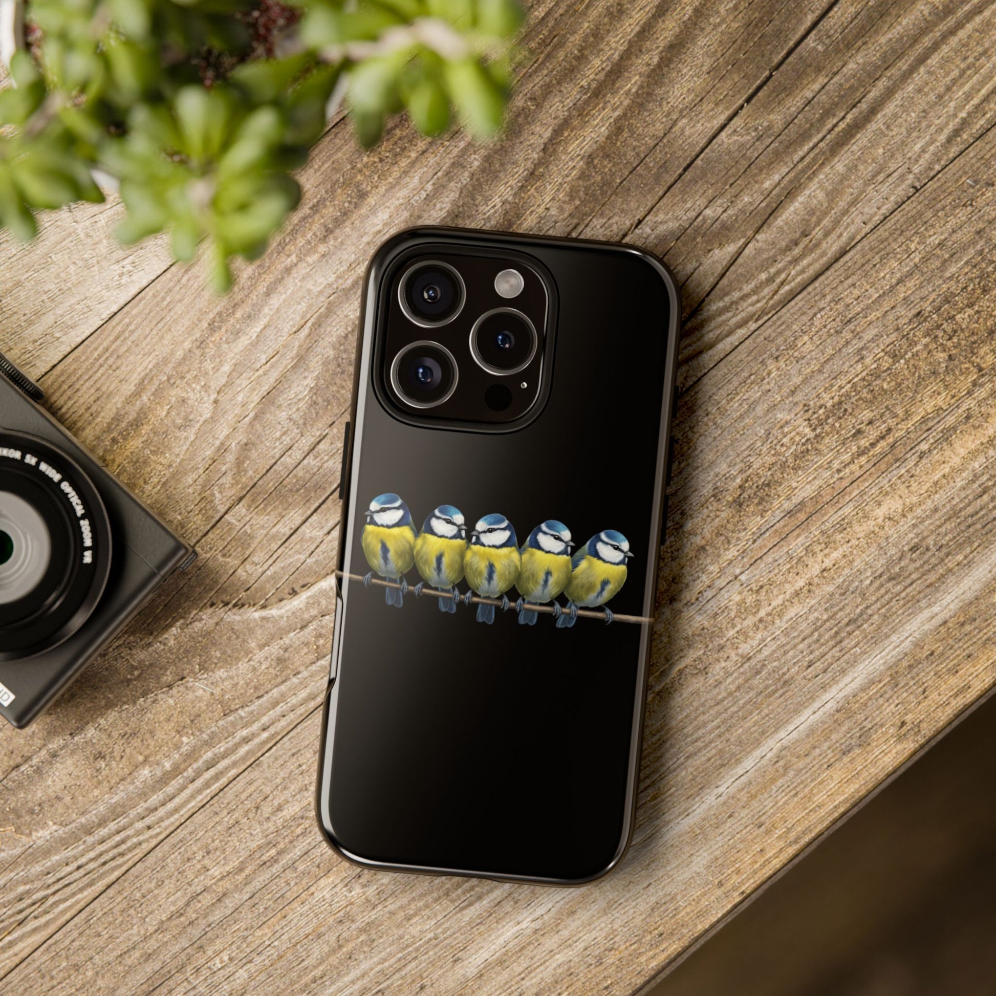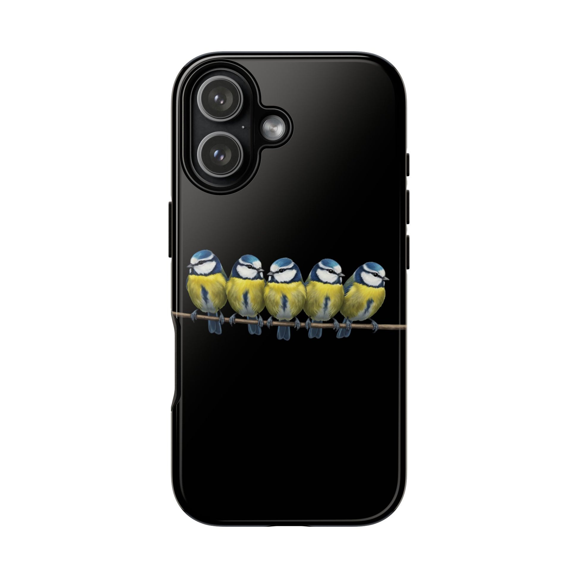 Blaumeisen auf einem Ast Premium Handyhülle – Doppelt Geschützt & Rundum Bedruckt Schwarz