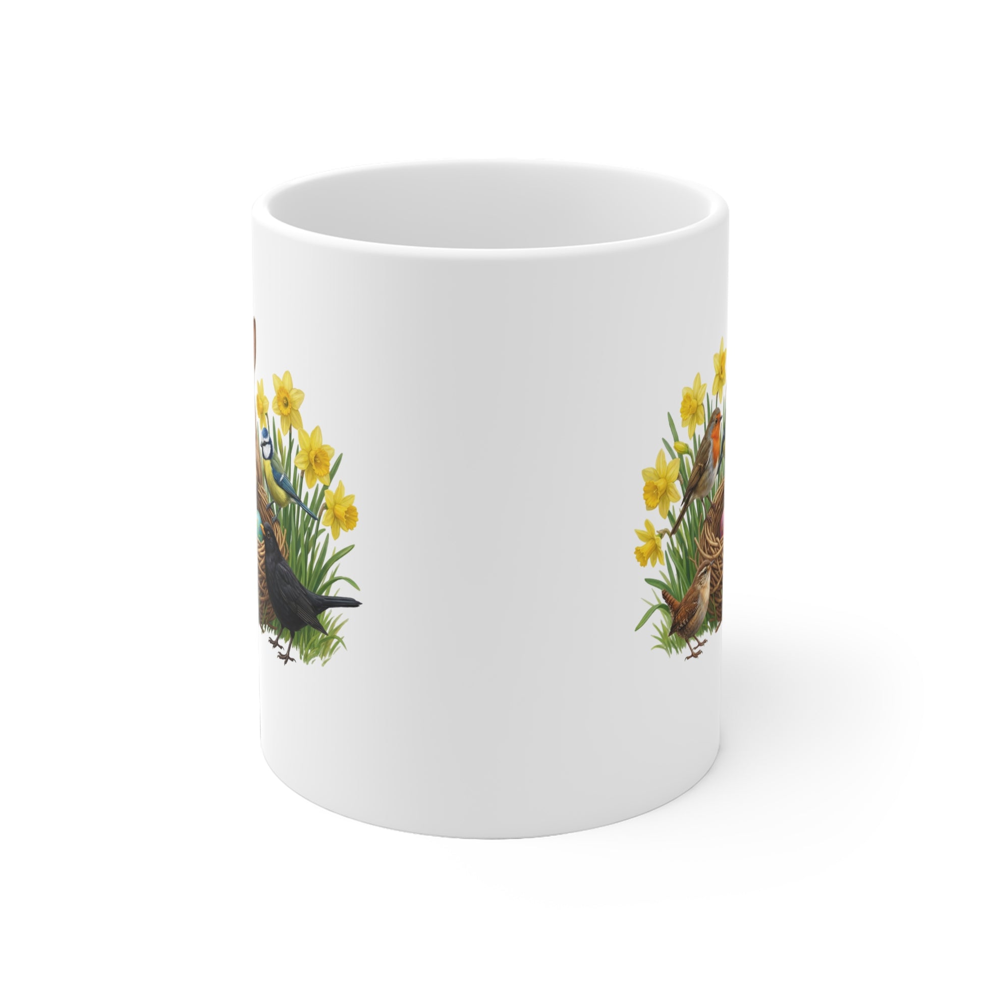Kaninchen Rotkehlchen Amsel am Nest mit Osterglocken Tasse - Oster-Geschenk für Vogelfreunde