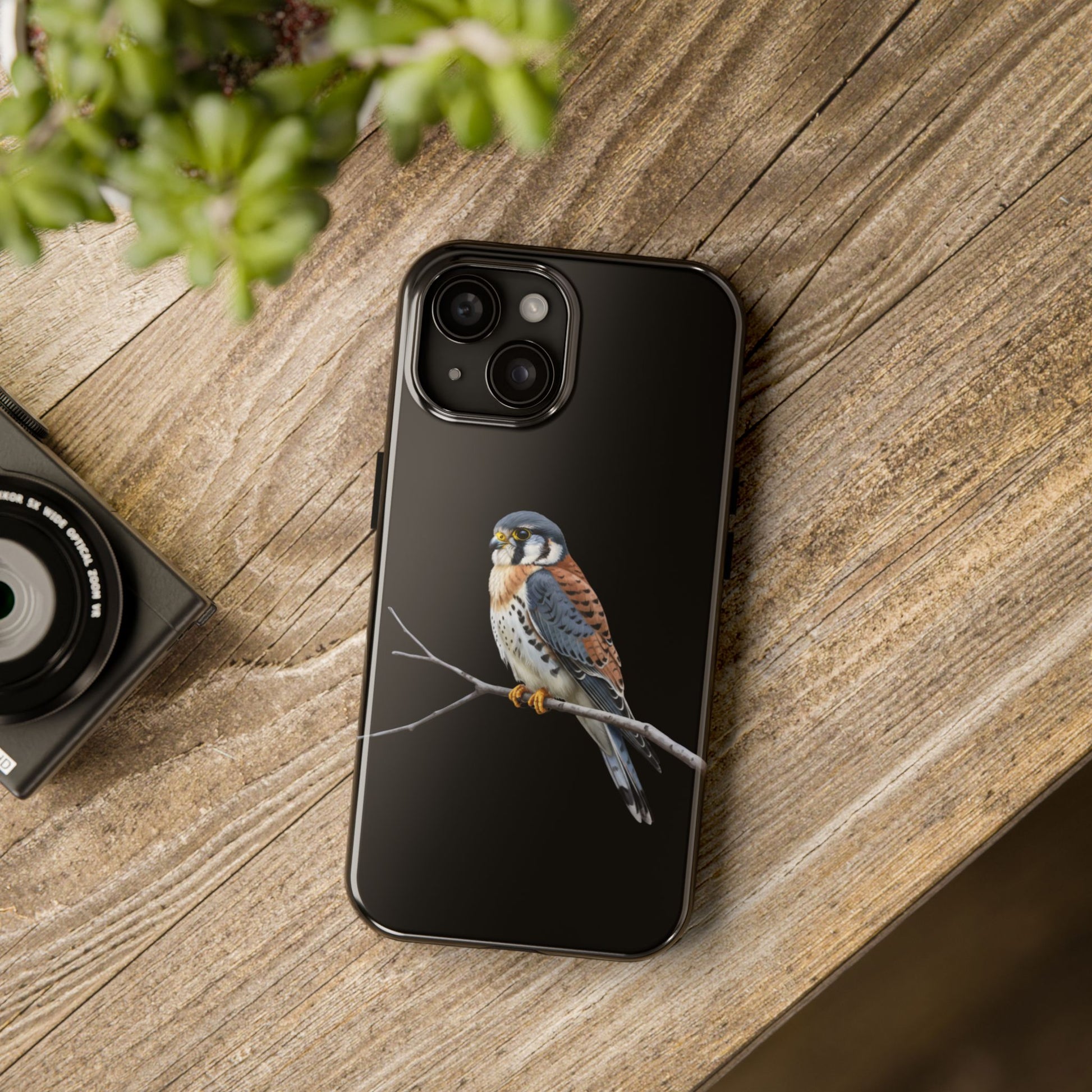 Set against a sleek, deep black background, the vibrant colors of the American Kestrel truly pop, making this case a striking statement piece. It’s the perfect everyday companion for bird watchers, nature photographers, and anyone who loves the great outdoors.