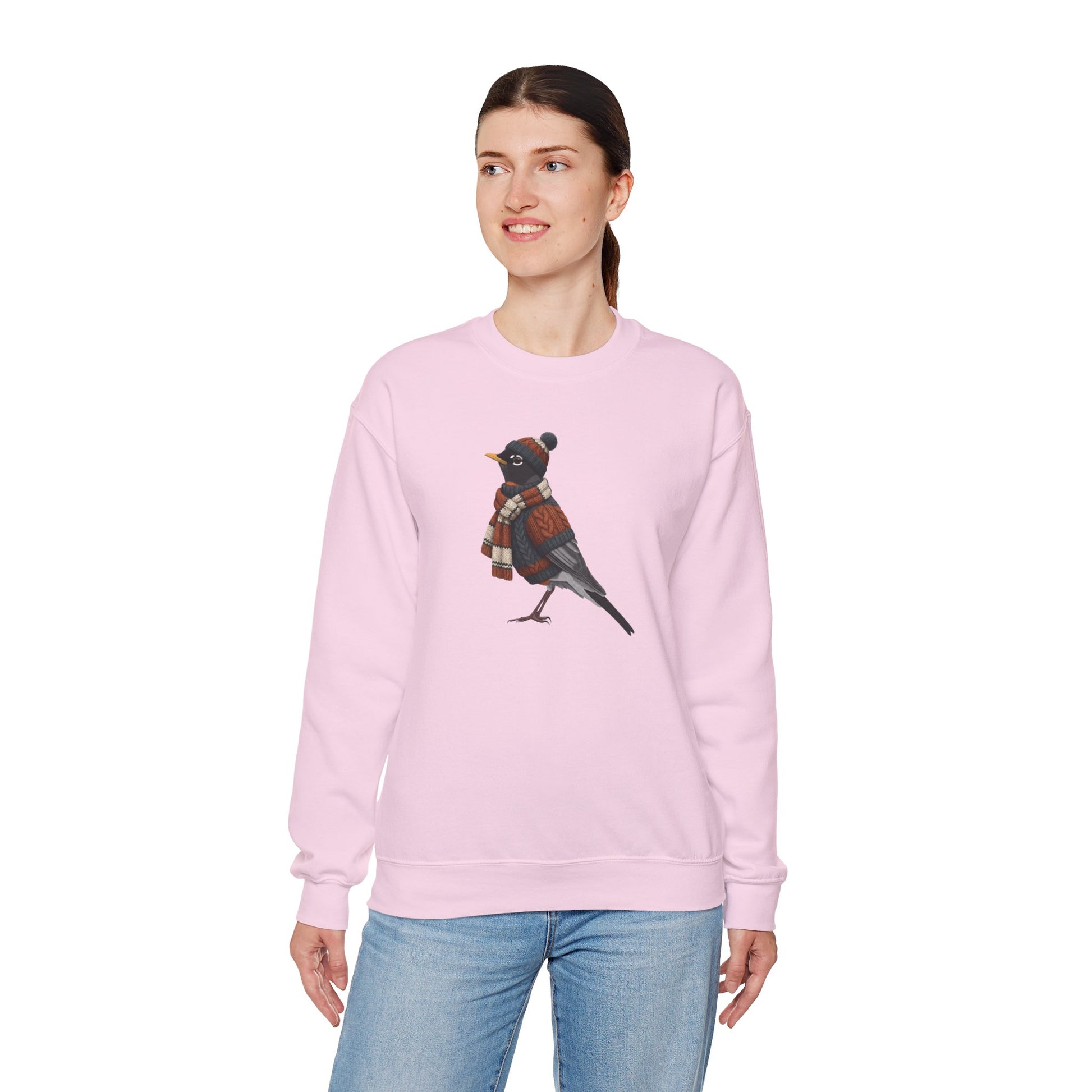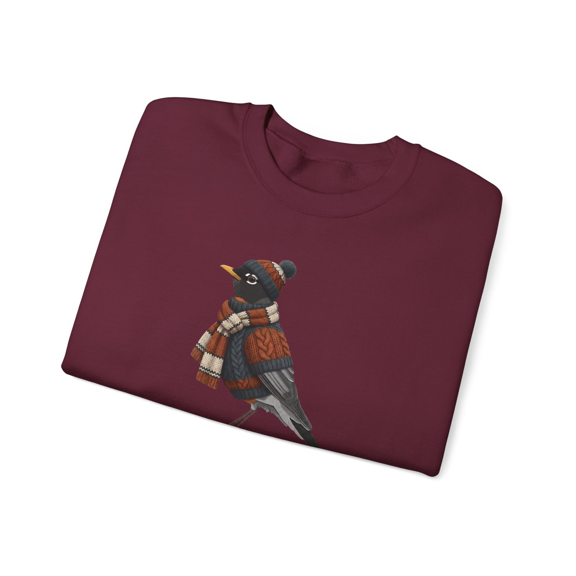 アメリカンロビン ウィンター スウェットシャツ | バードウォッチャー クルーネック | 鳥好きの方へのユニセックス ソングバード ニットギフト