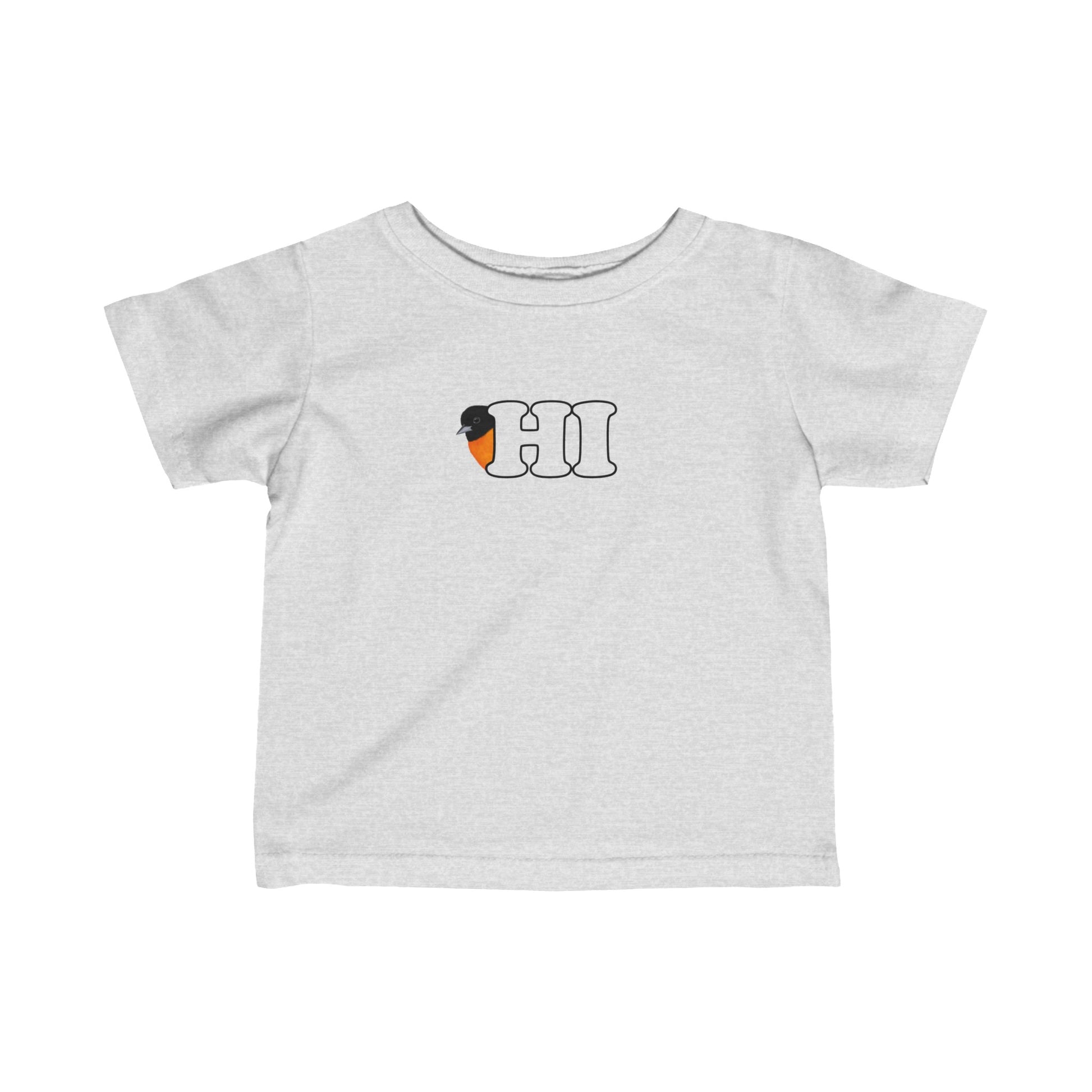 ベビー&トドラー用の可愛いボルチモア・オリオール・バードTシャツで、一日中ツイートしましょう!小さなお子様にぴったりのこのTシャツは、遊び心のある「Hi」の鳥のデザインで、楽しくてユニークな印象を与えます。快適で可愛いバードTシャツで、小さな鳥をスタイリッシュに目立たせましょう!