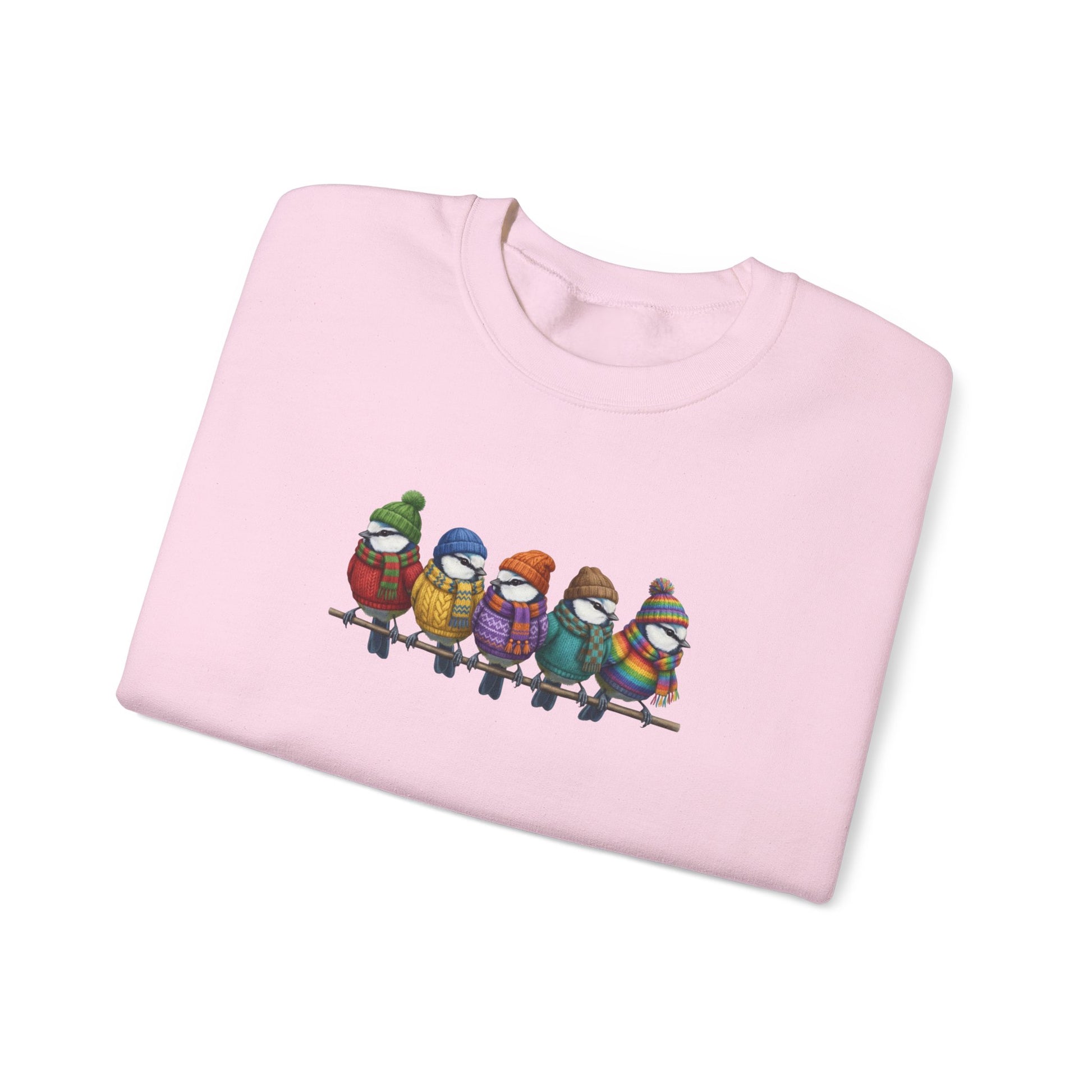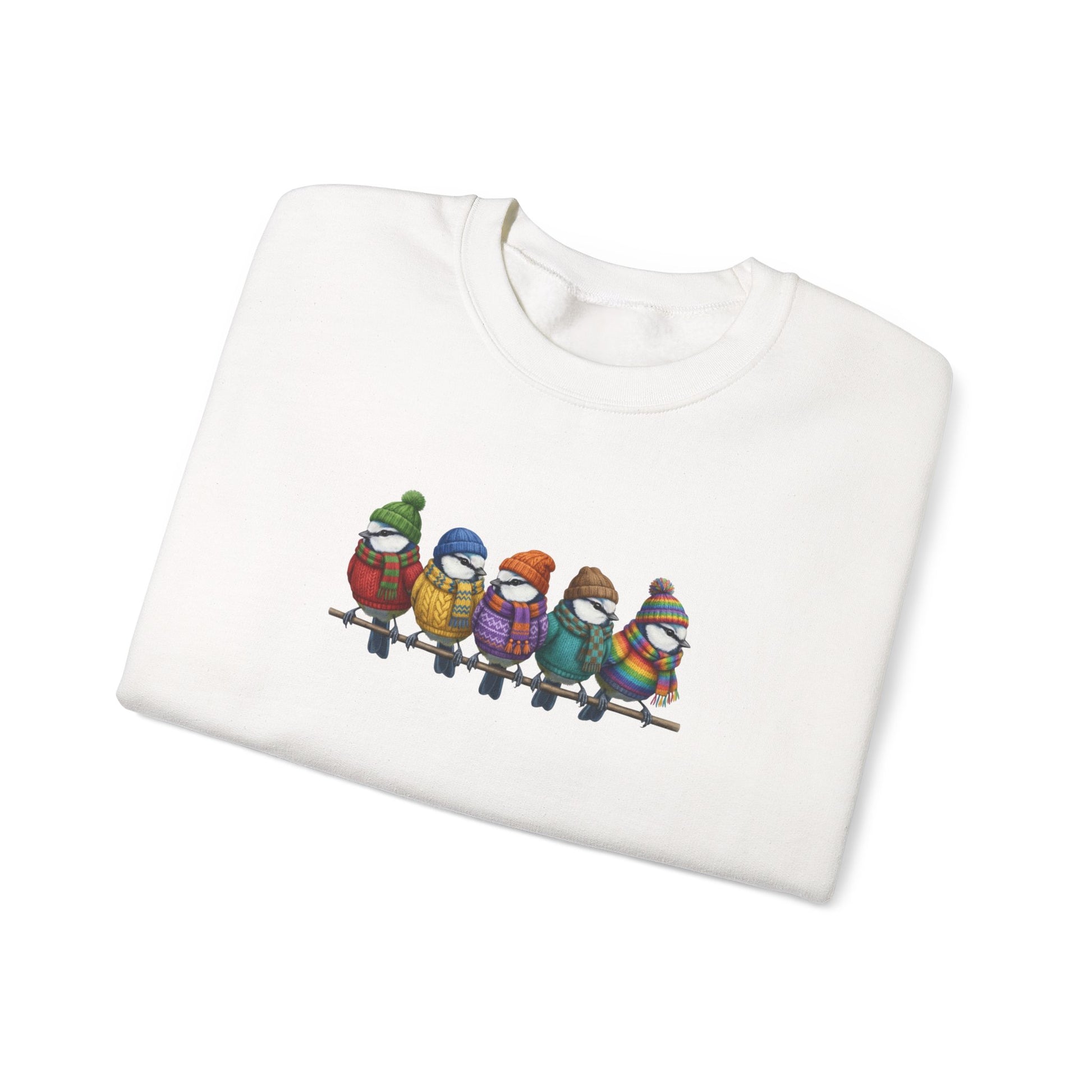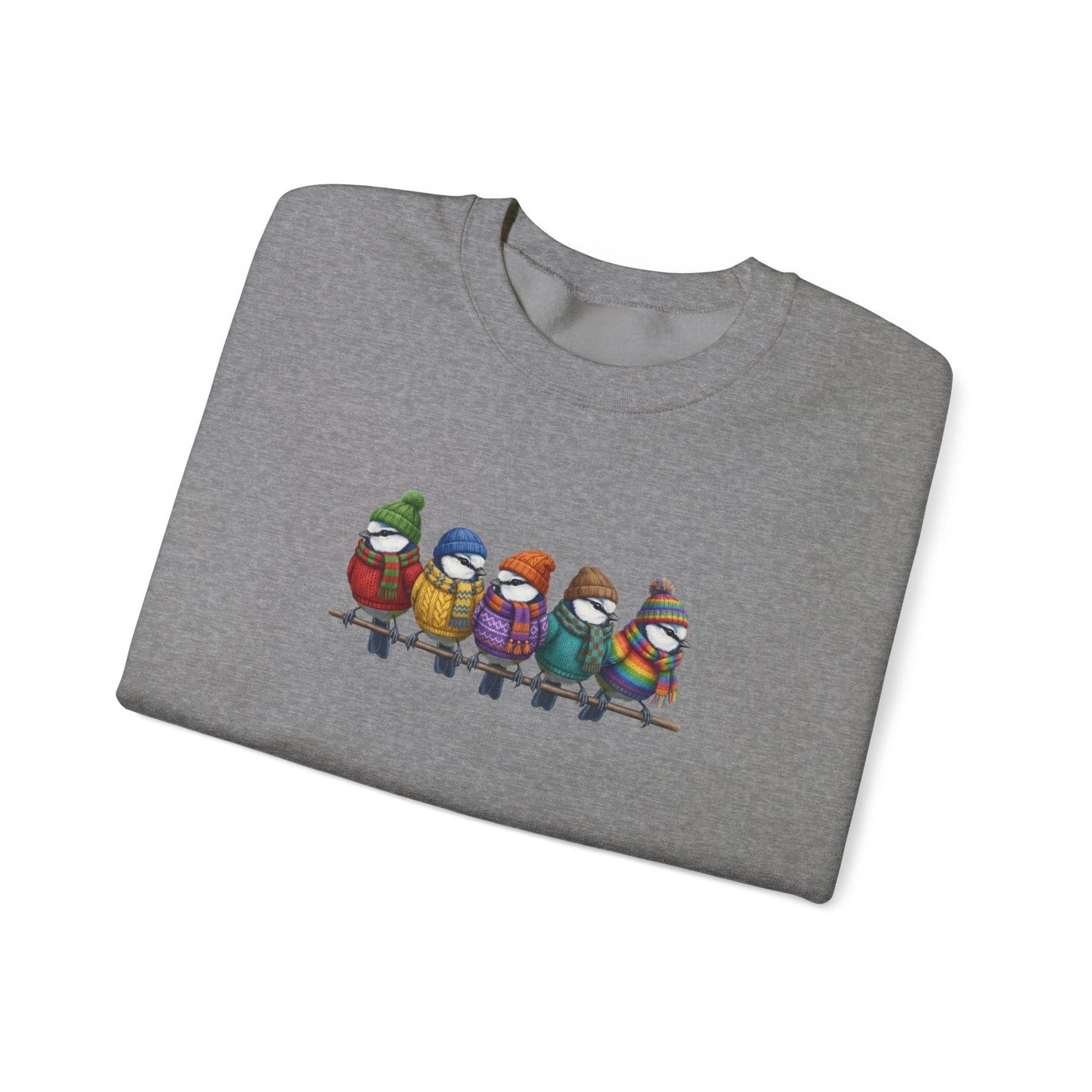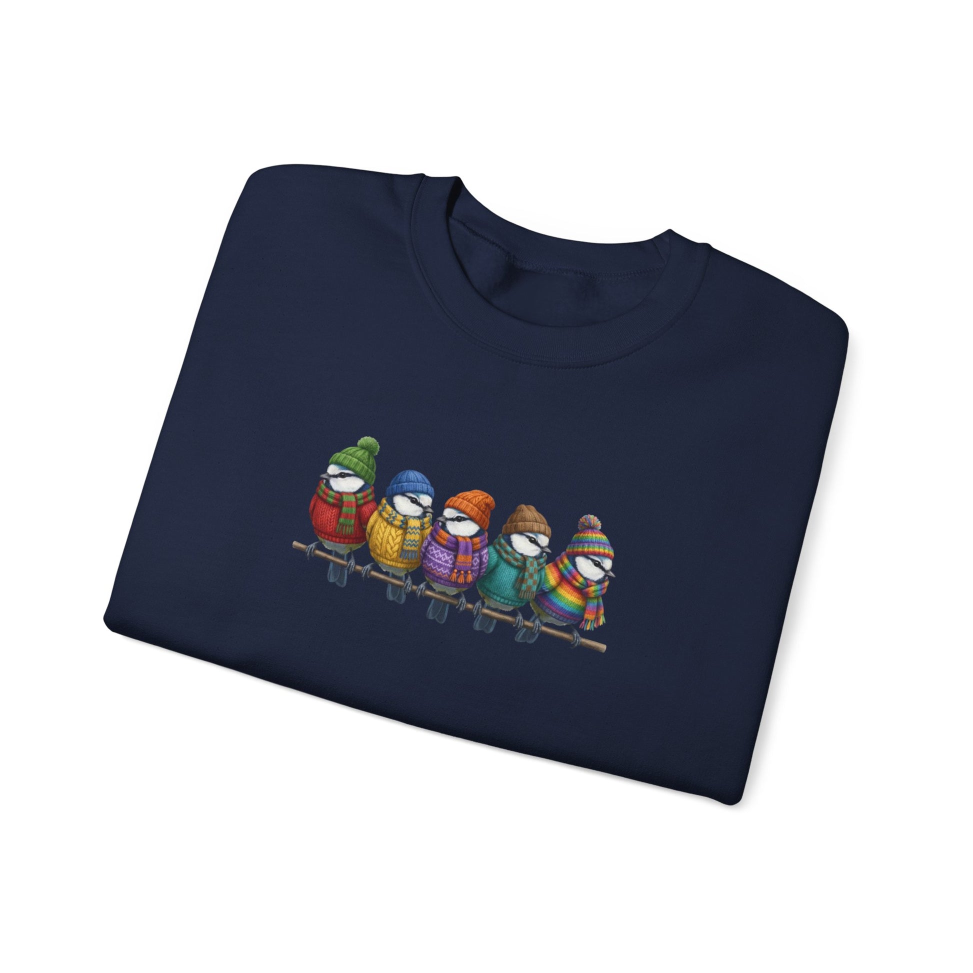 ブルーのシジュウカラ柄スウェットシャツ | バードウォッチャー クルーネック | 鳥好きの方へのユニセックス ソングバード ニットギフト