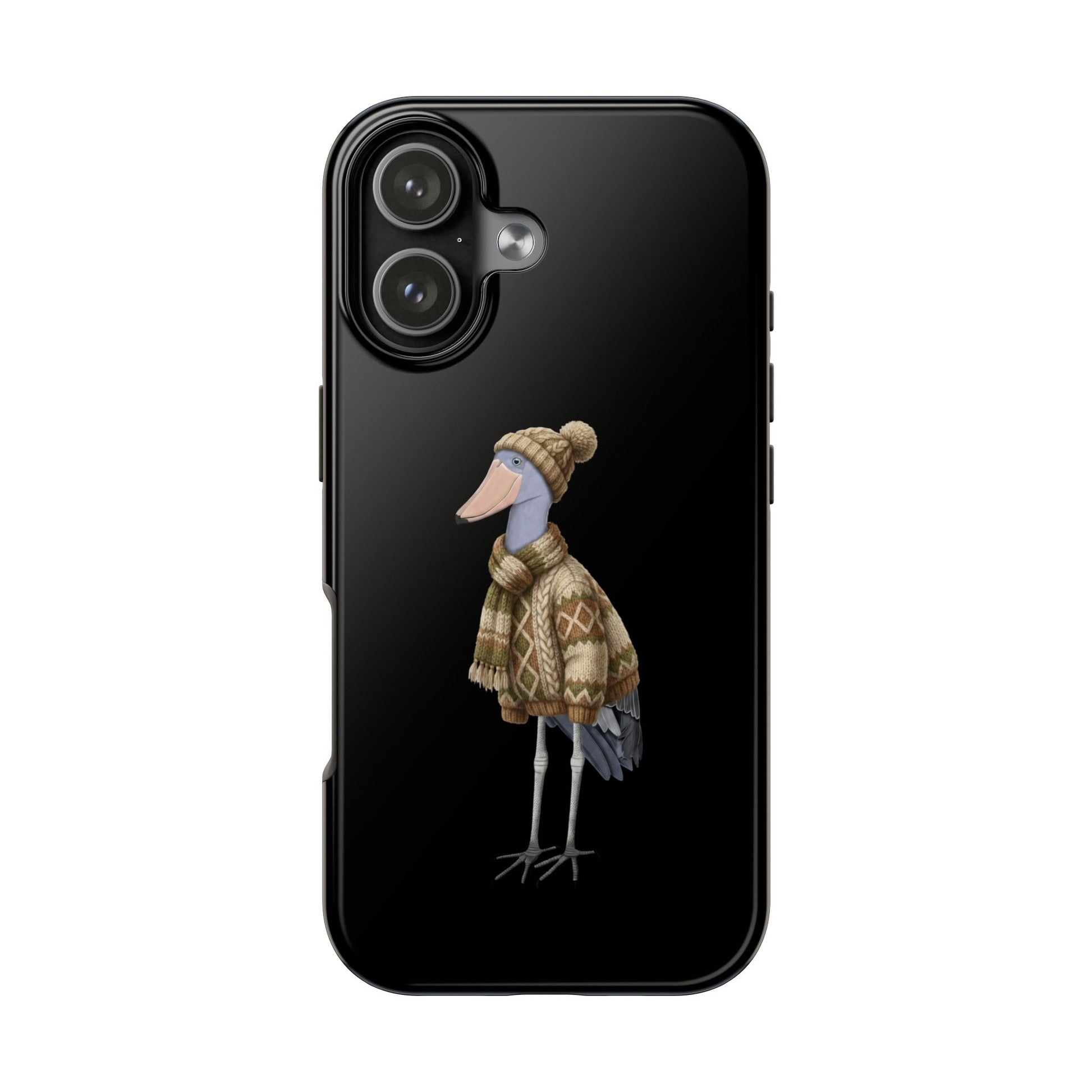 鳥のアートが描かれたハシビロコウの二層式iPhoneケース - 鳥類学者や鳥好きの方へのプレゼントに最適