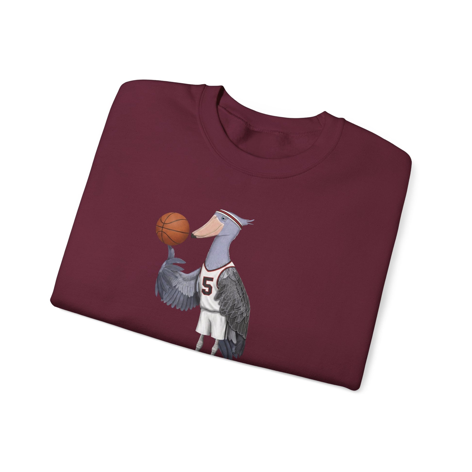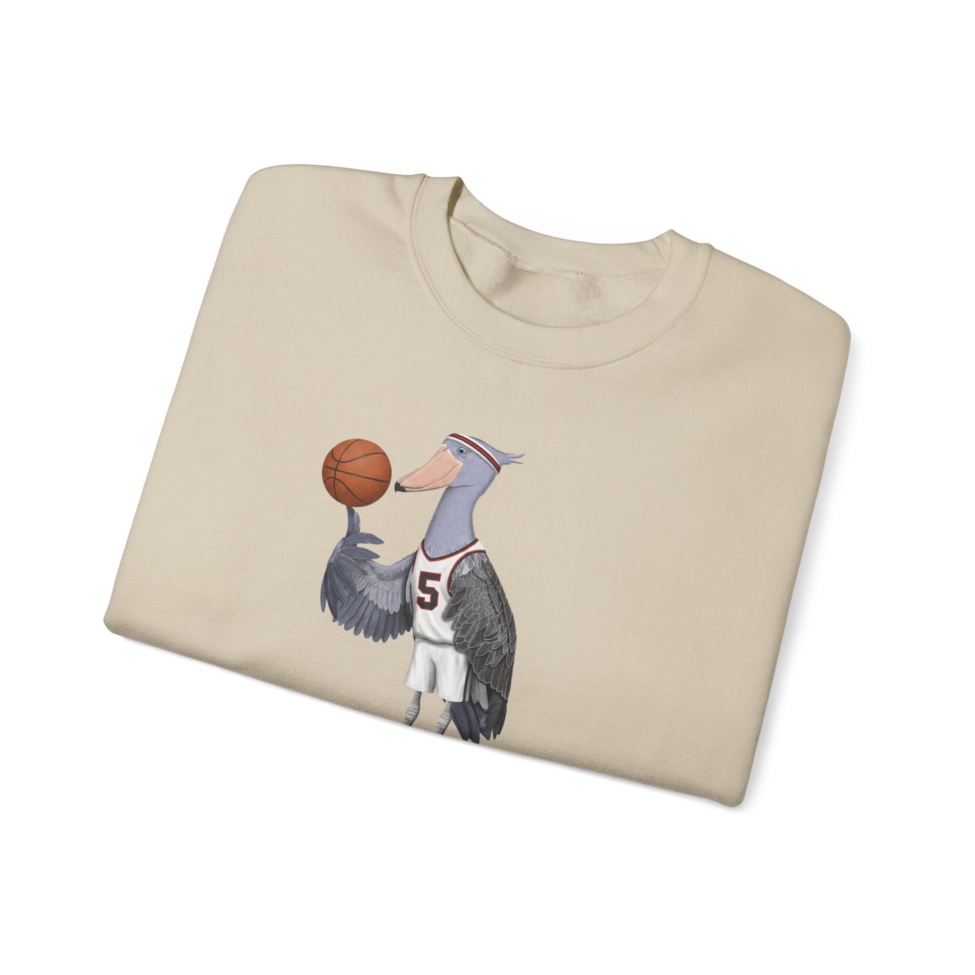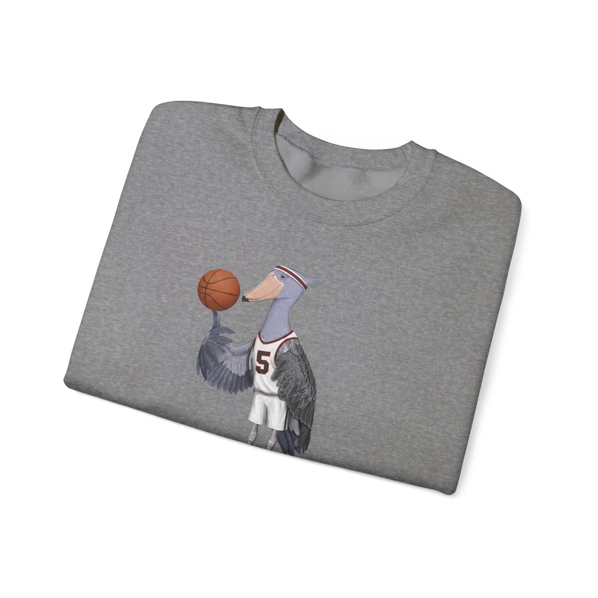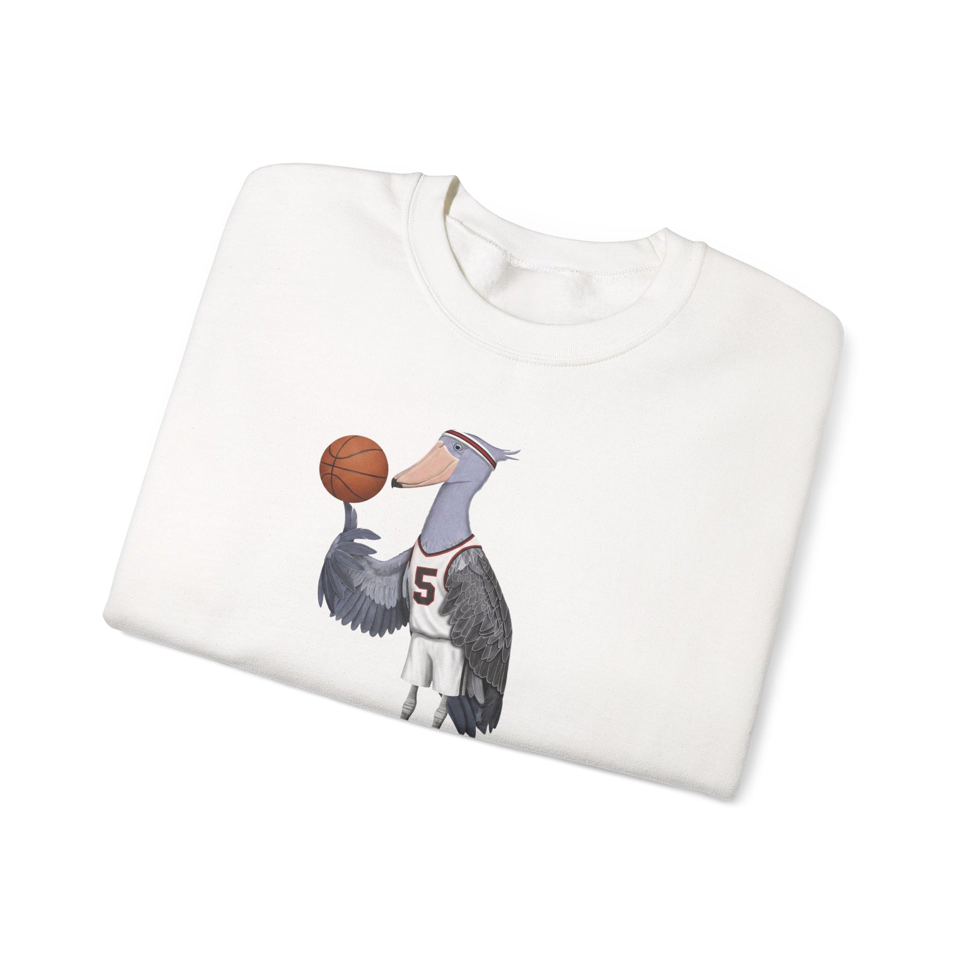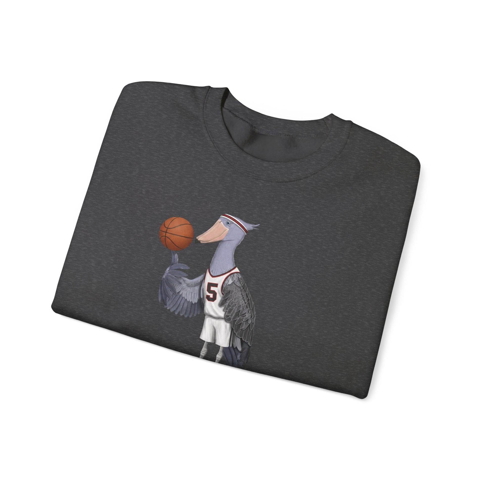 ハシビロコウの面白いバスケットボールの鳥のスウェットシャツ | バードウォッチャークルーネック | ユニセックスのユニークなバスケットボールファンギフト