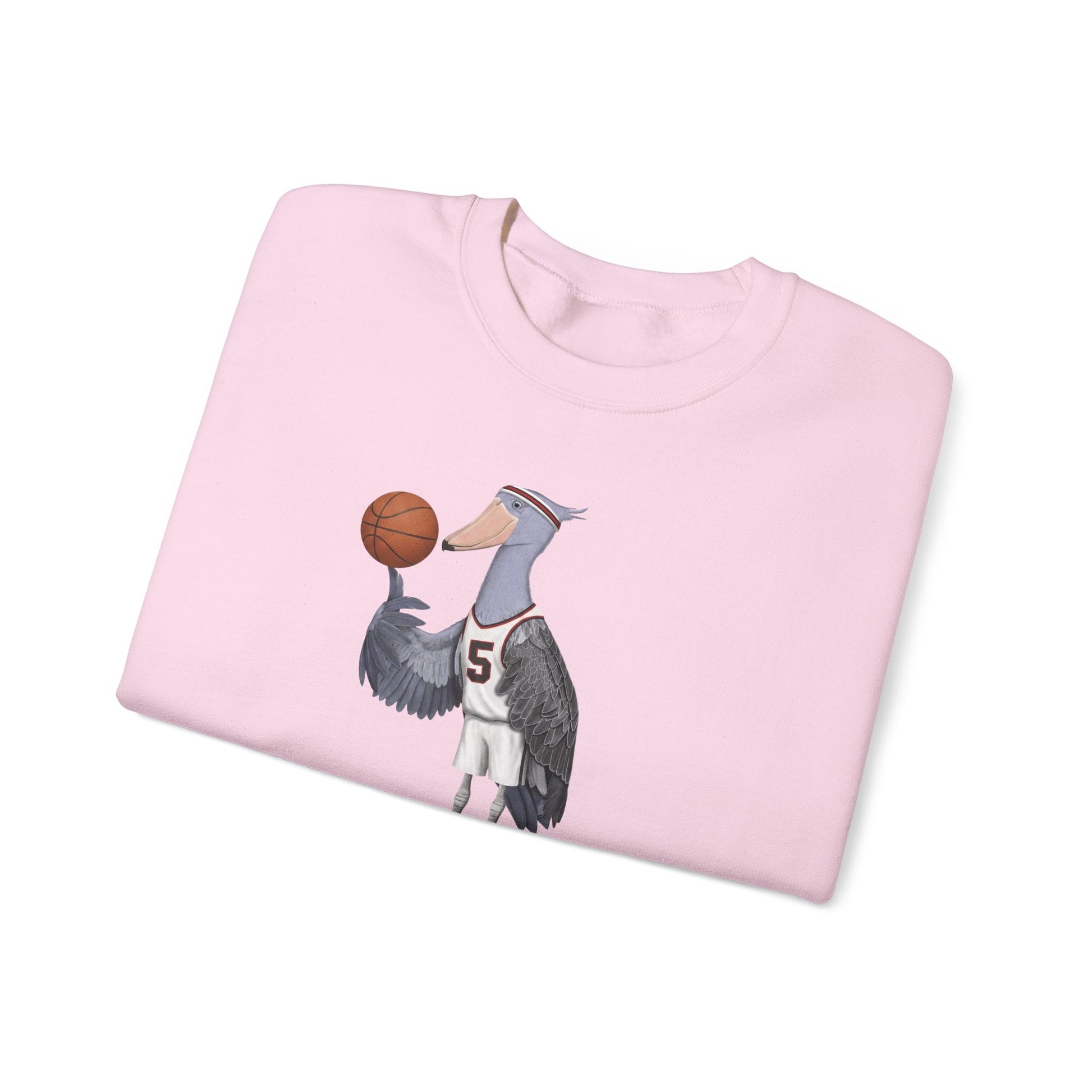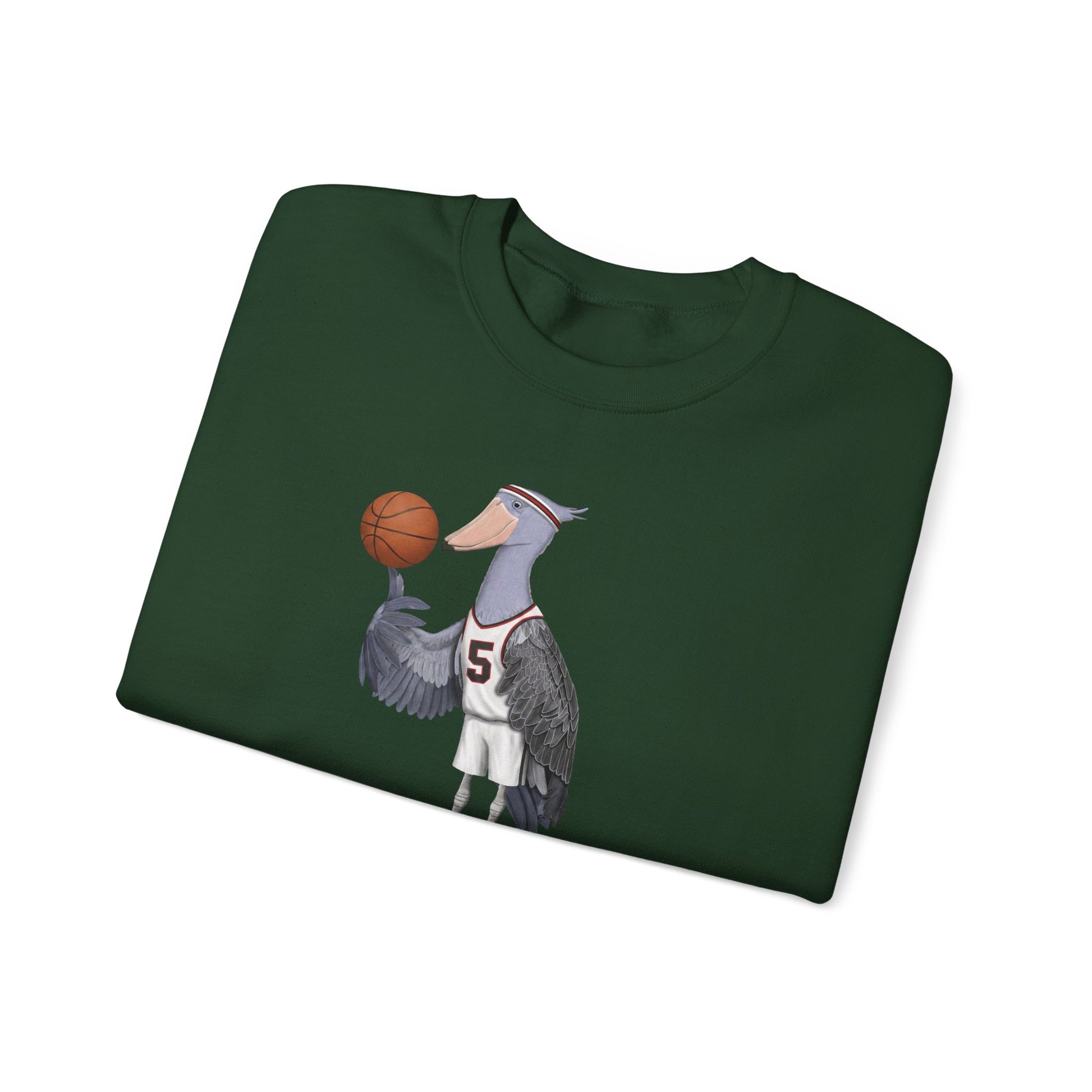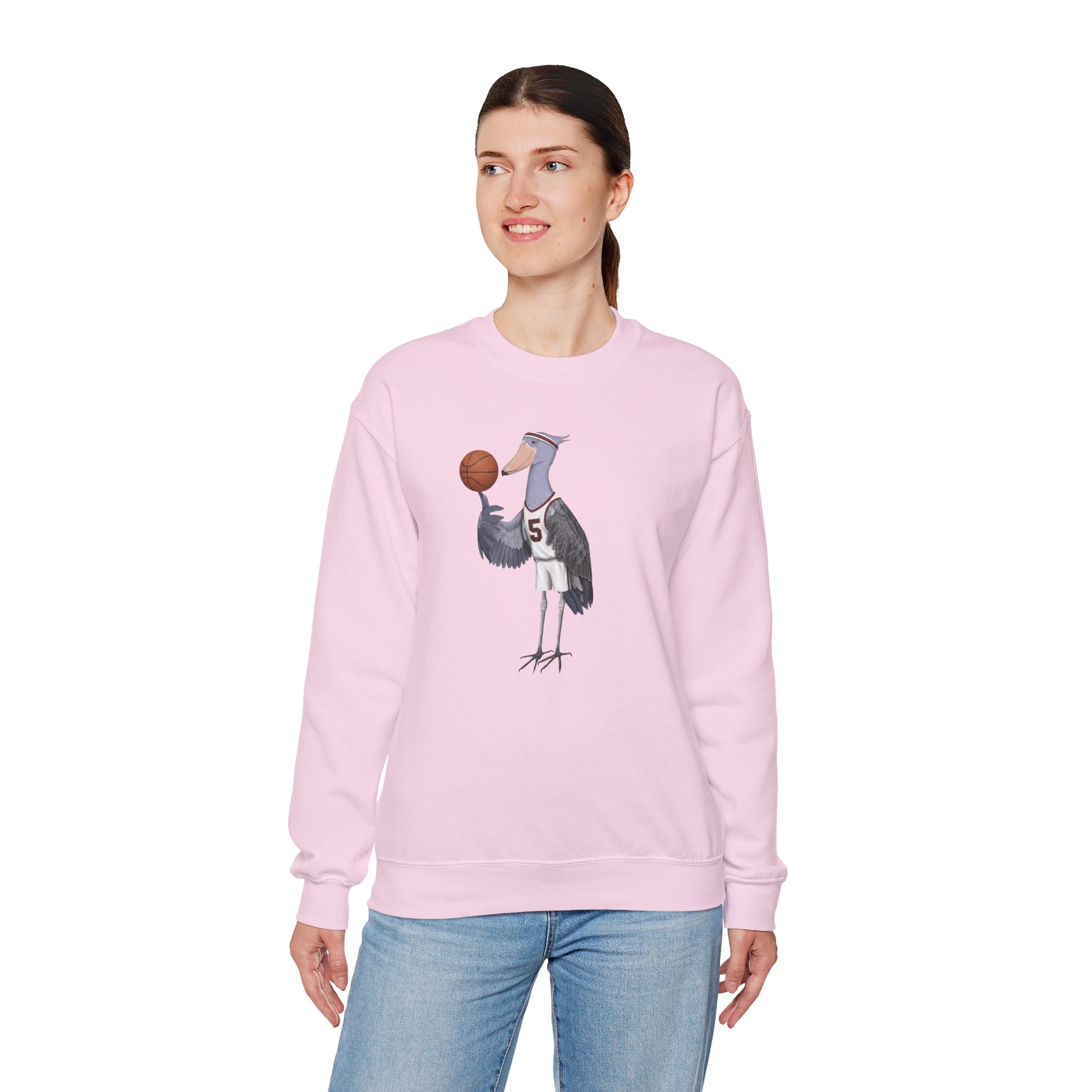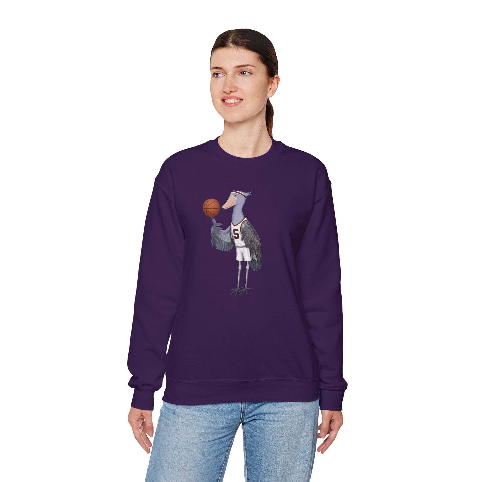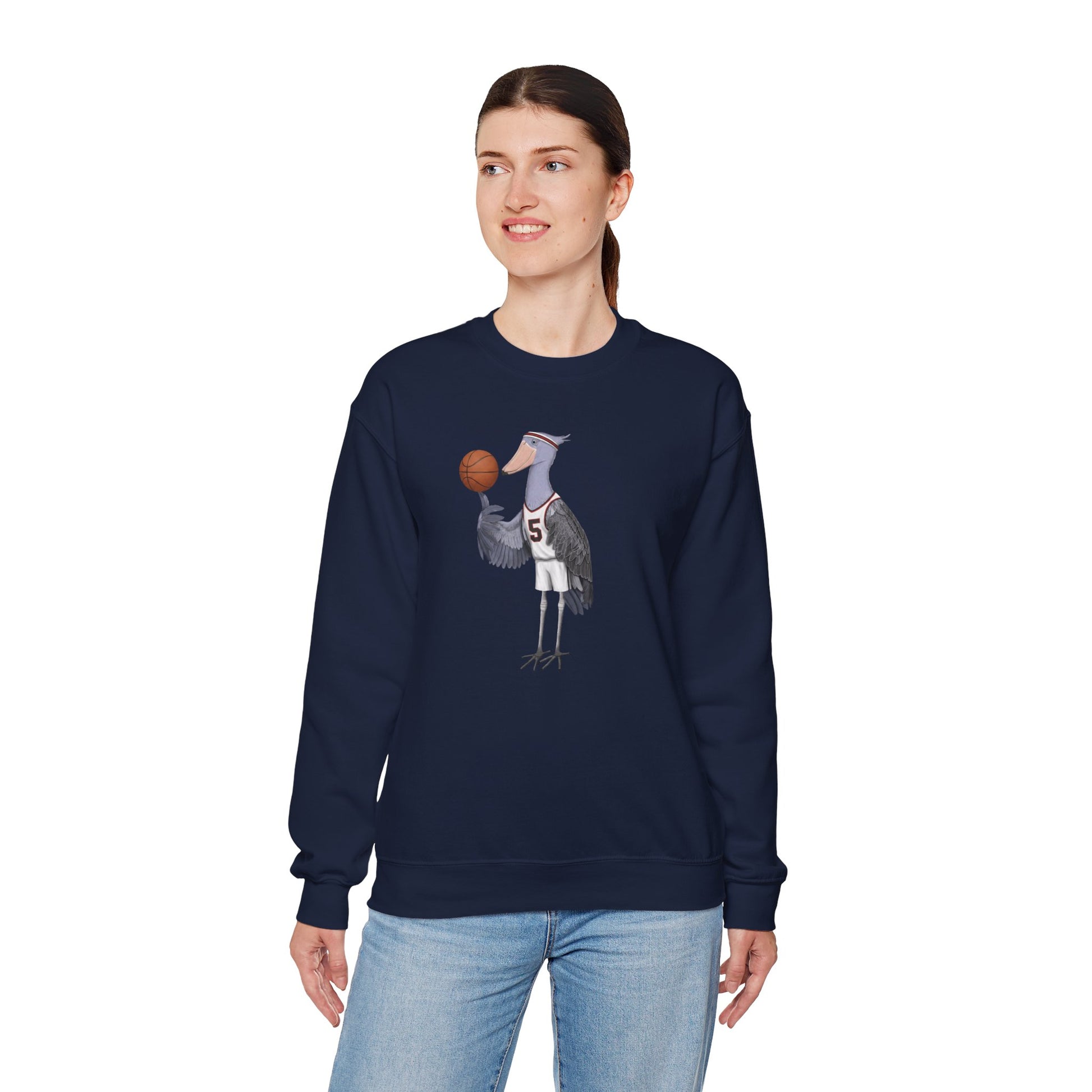ハシビロコウの面白いバスケットボールの鳥のスウェットシャツ | バードウォッチャークルーネック | ユニセックスのユニークなバスケットボールファンギフト
