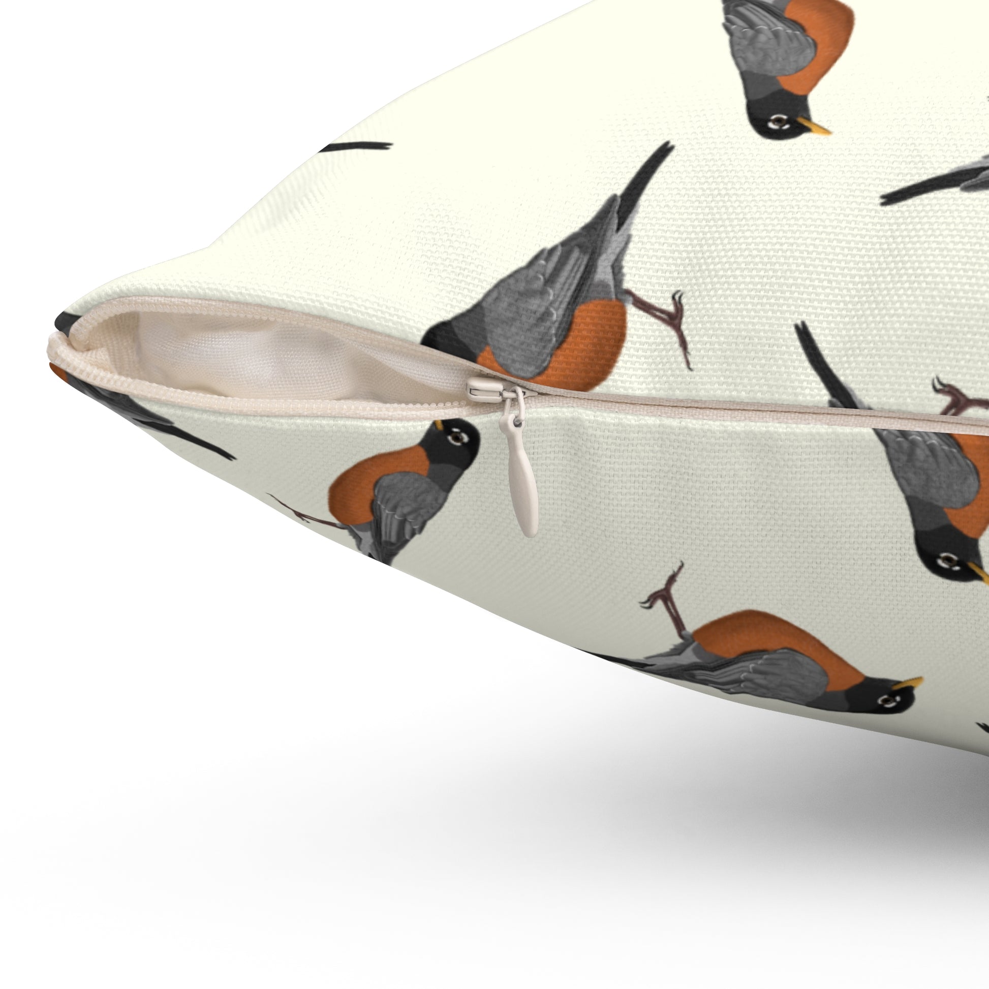 American Robin All-Over Pattern Throw Pillow Creamy White | Decorative Bird Art Home Decor