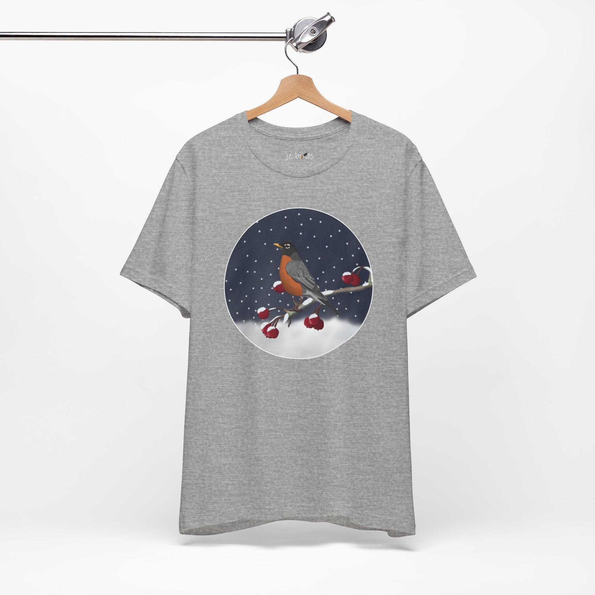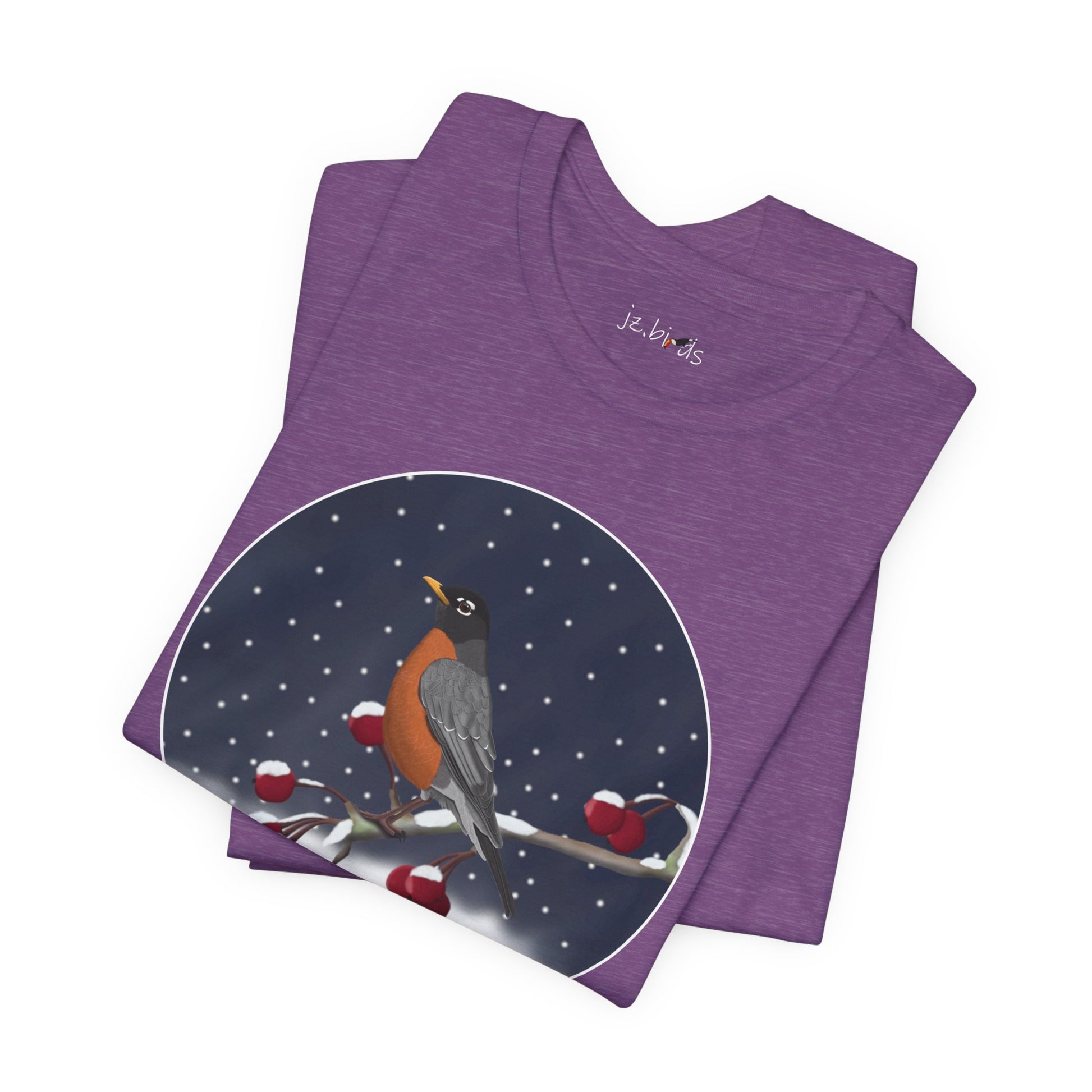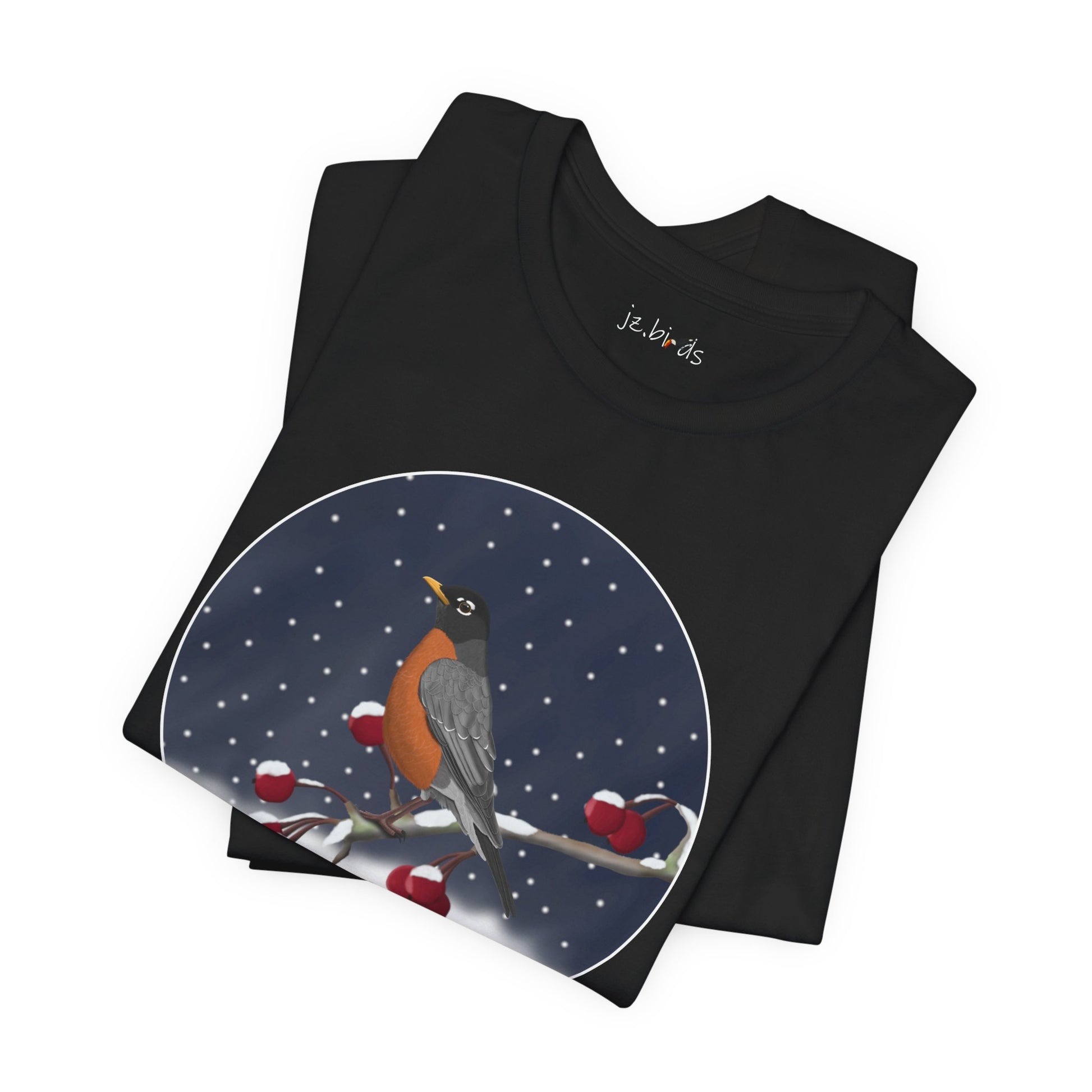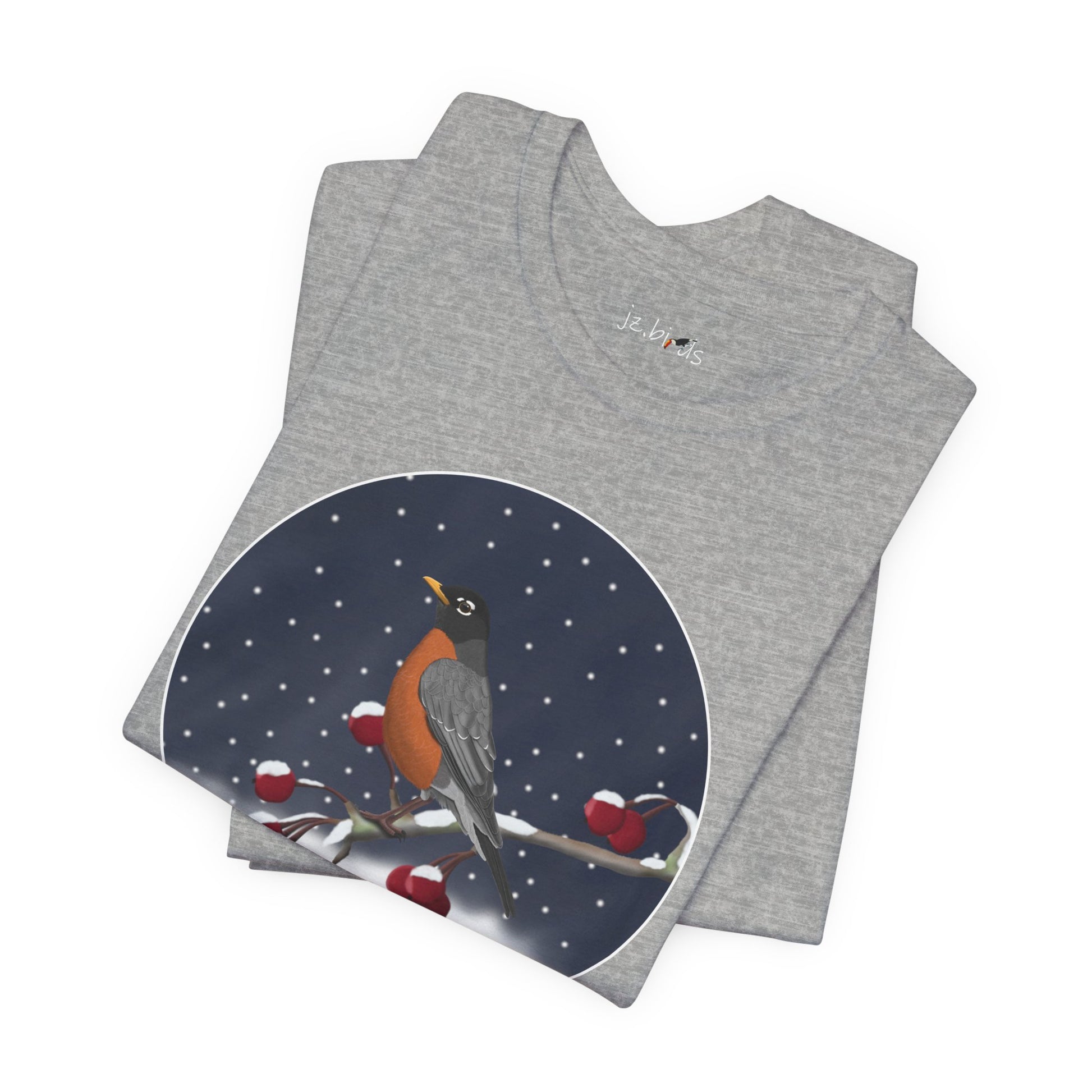 American Robin on a Winter Branch Birdwatcher Christmas Bird T-Shirt