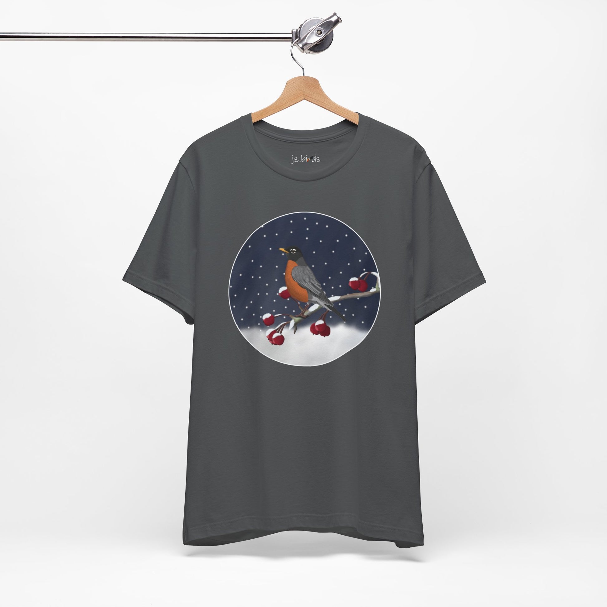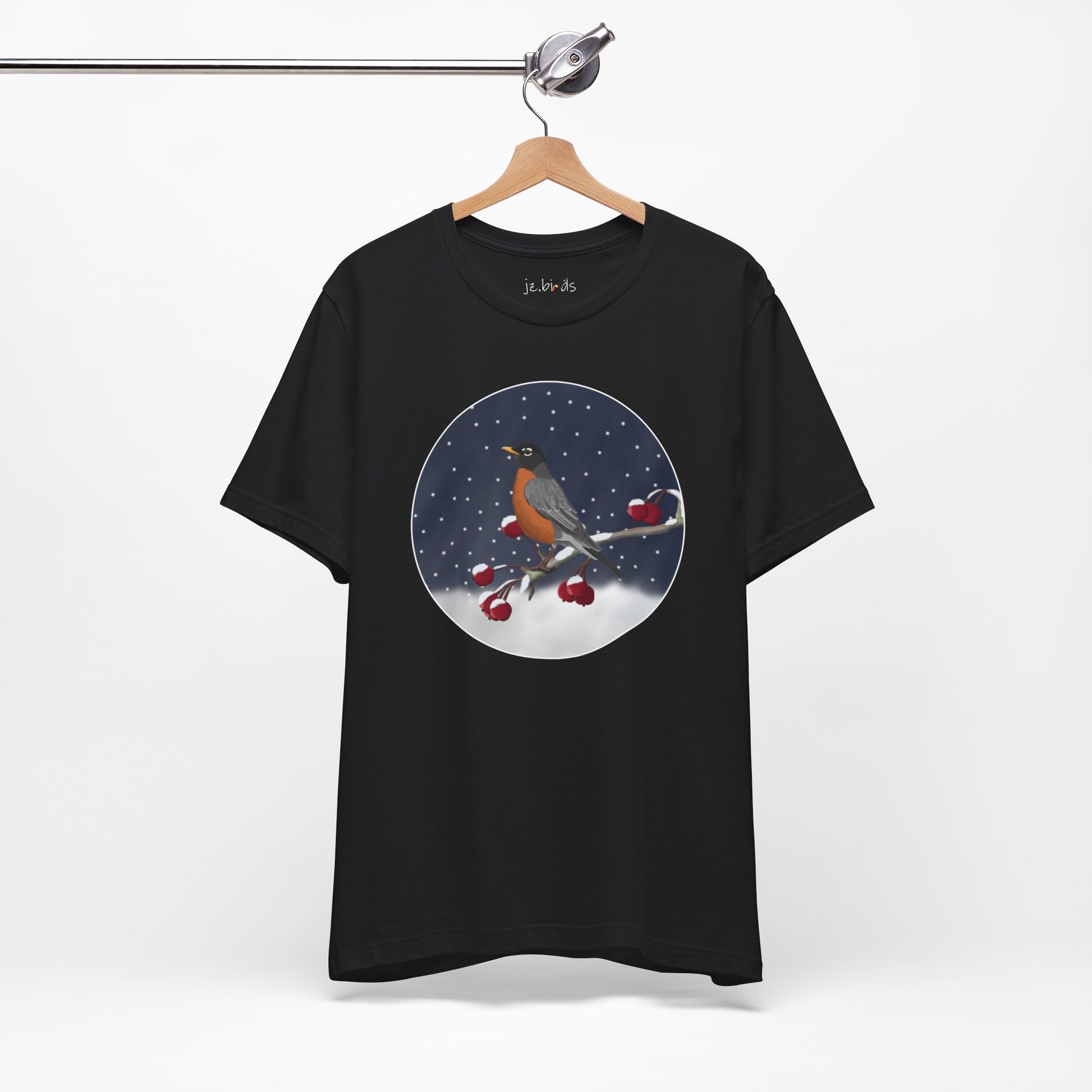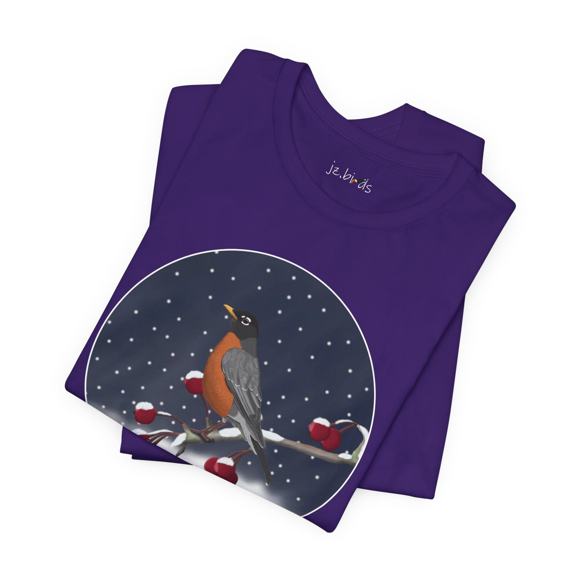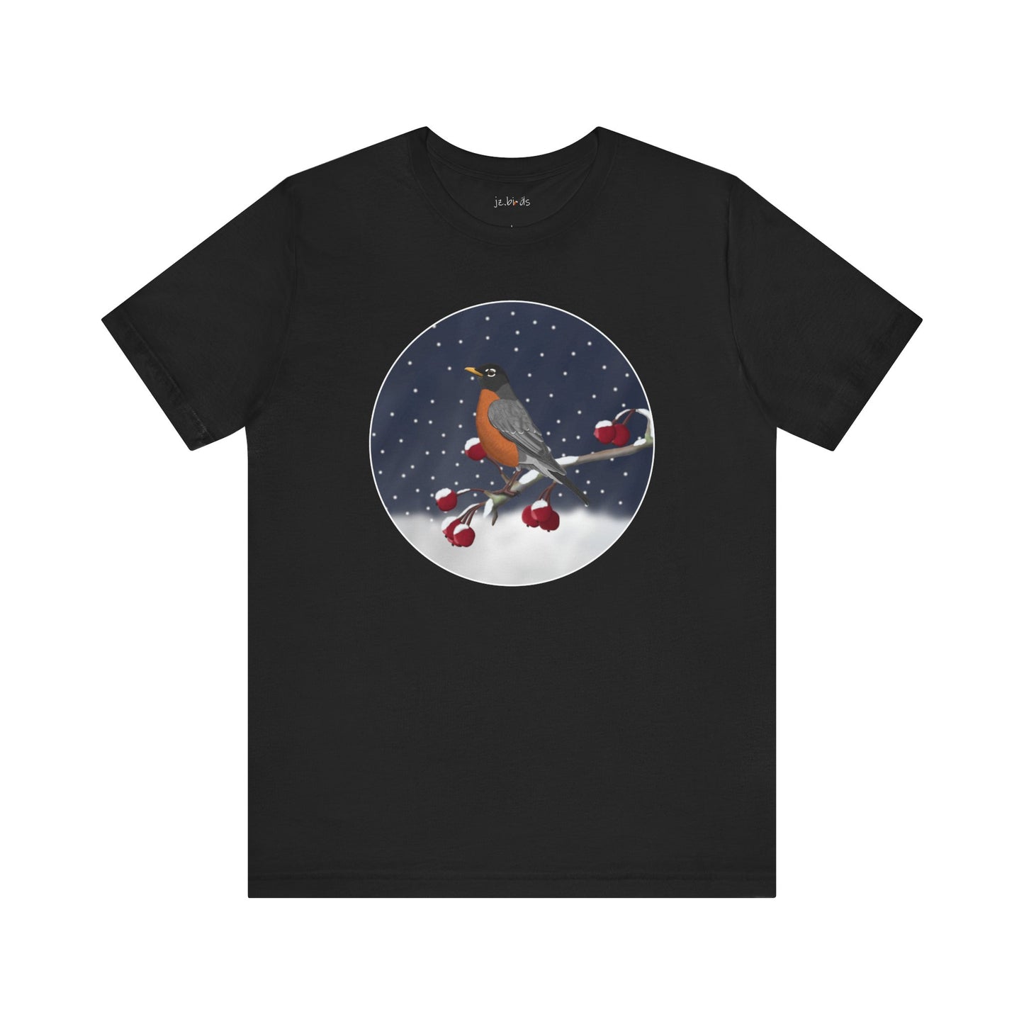 American Robin on a Winter Branch Birdwatcher Christmas Bird T-Shirt