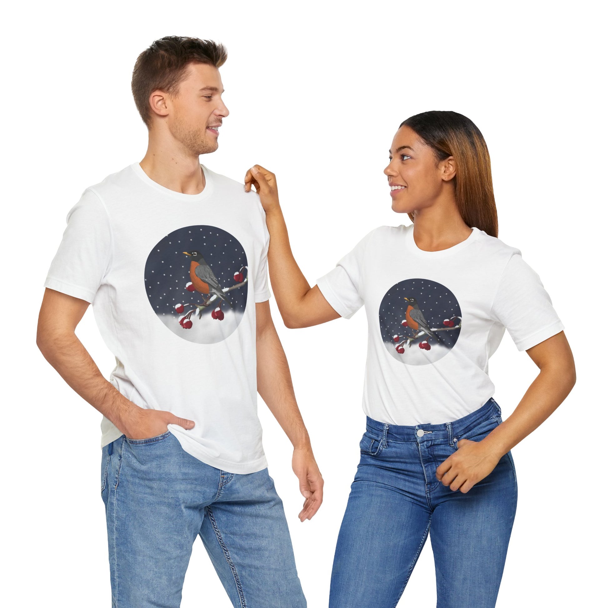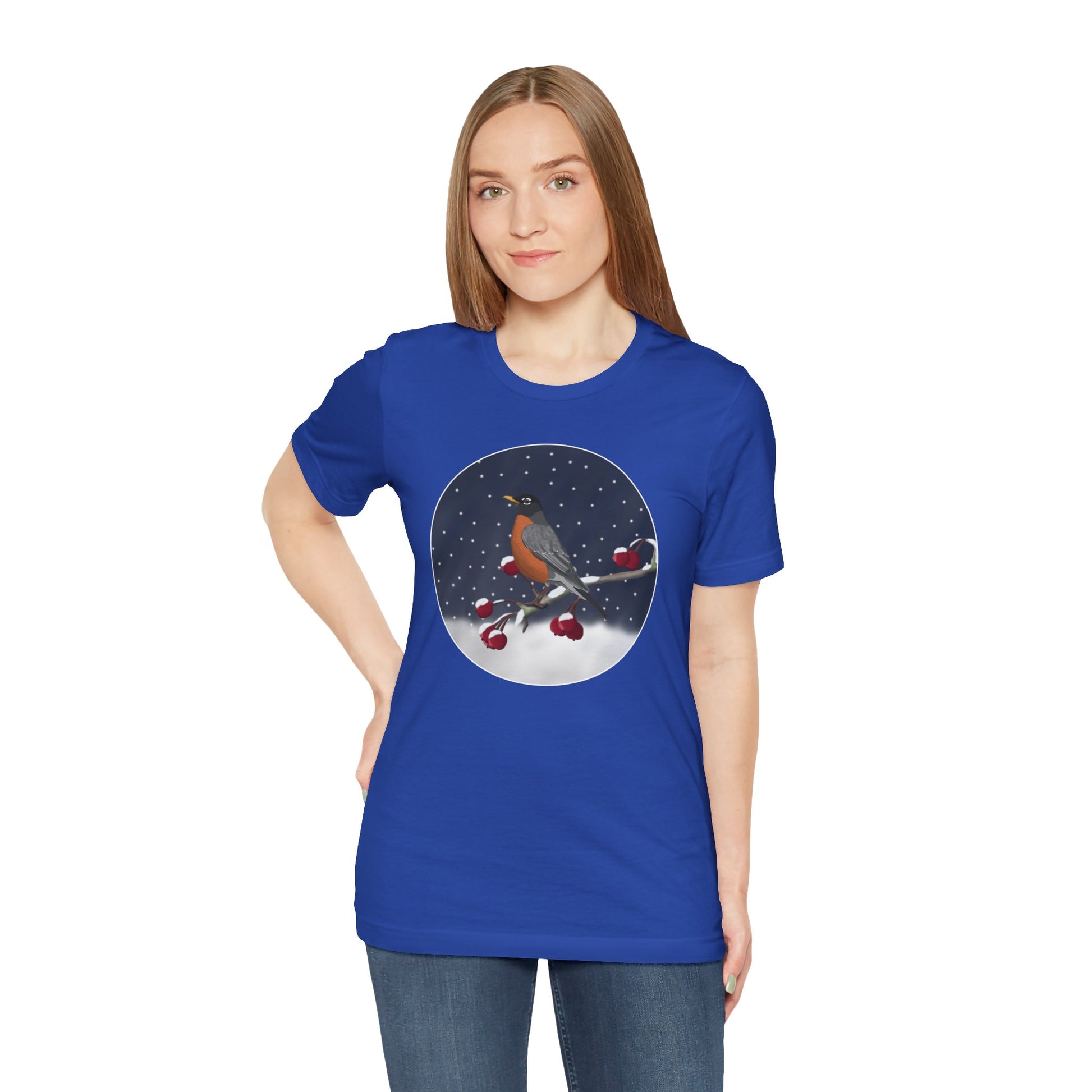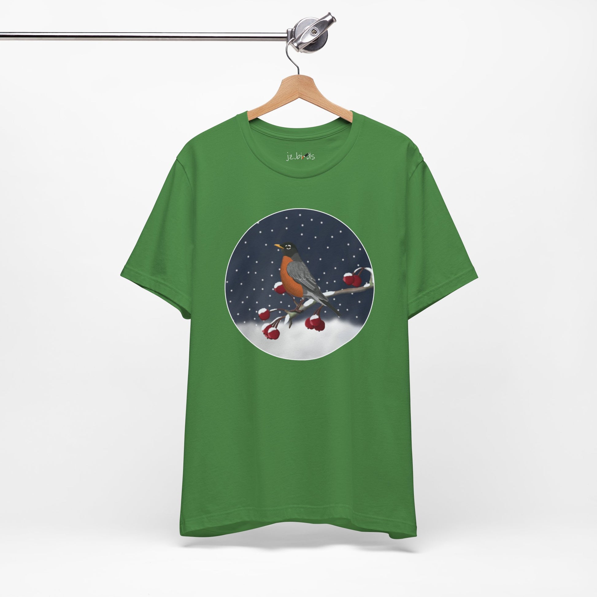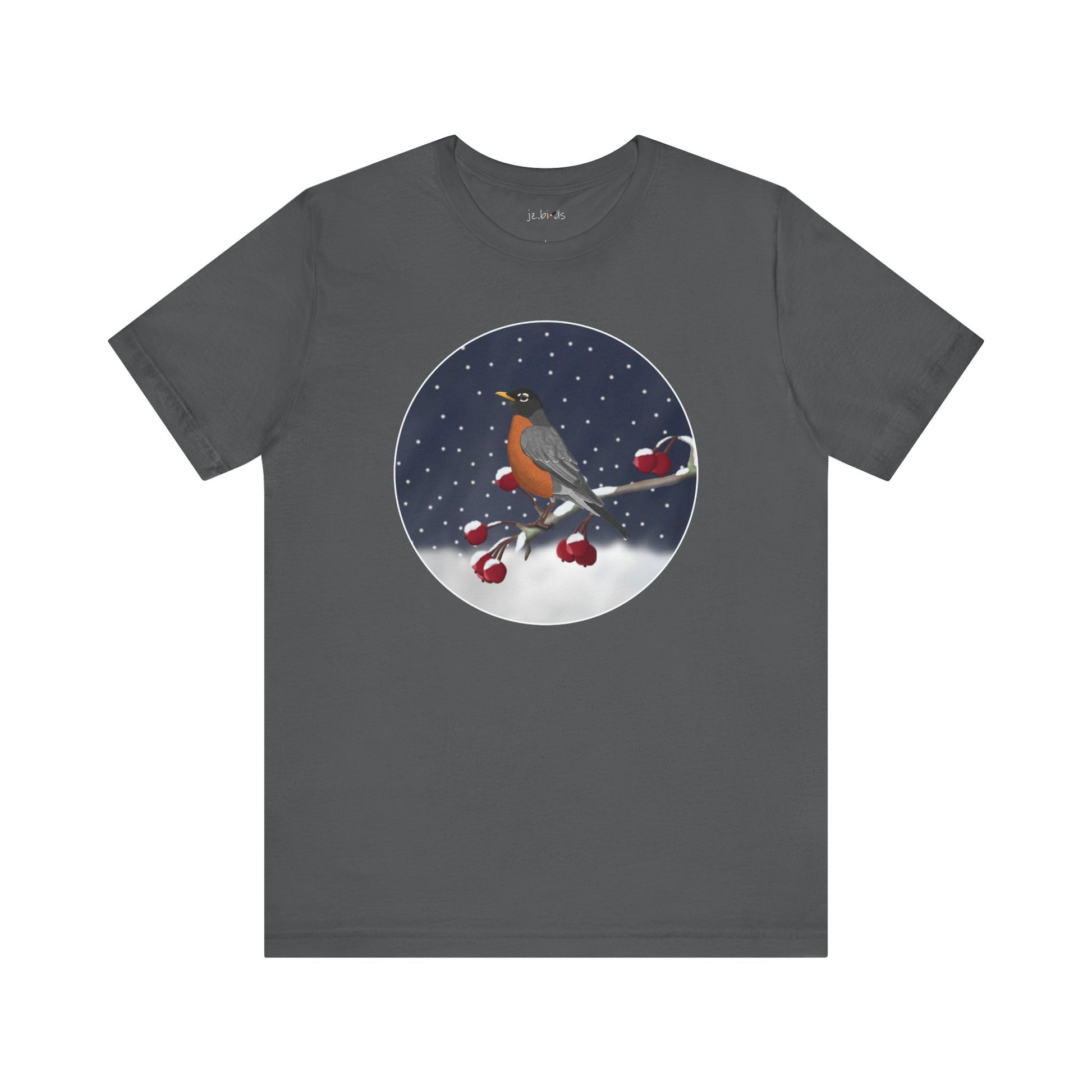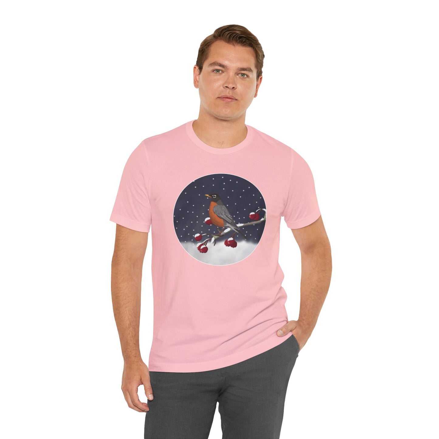 American Robin on a Winter Branch Birdwatcher Christmas Bird T-Shirt
