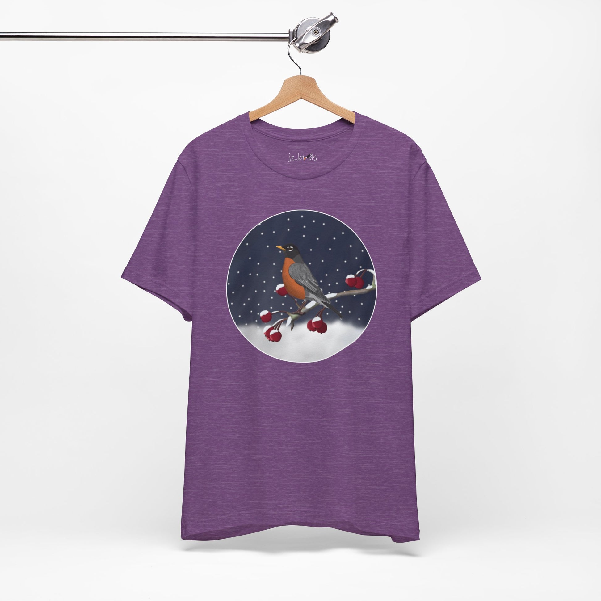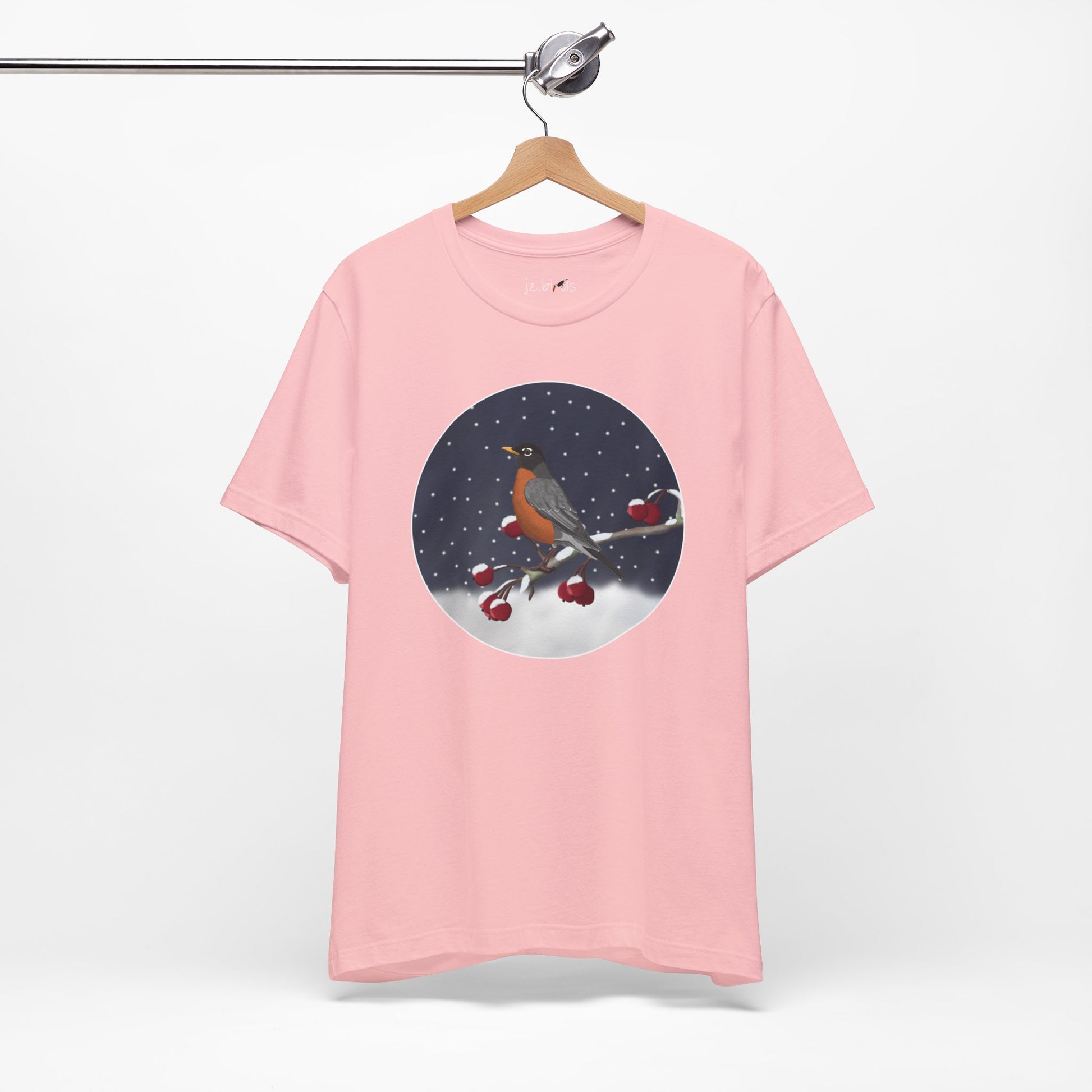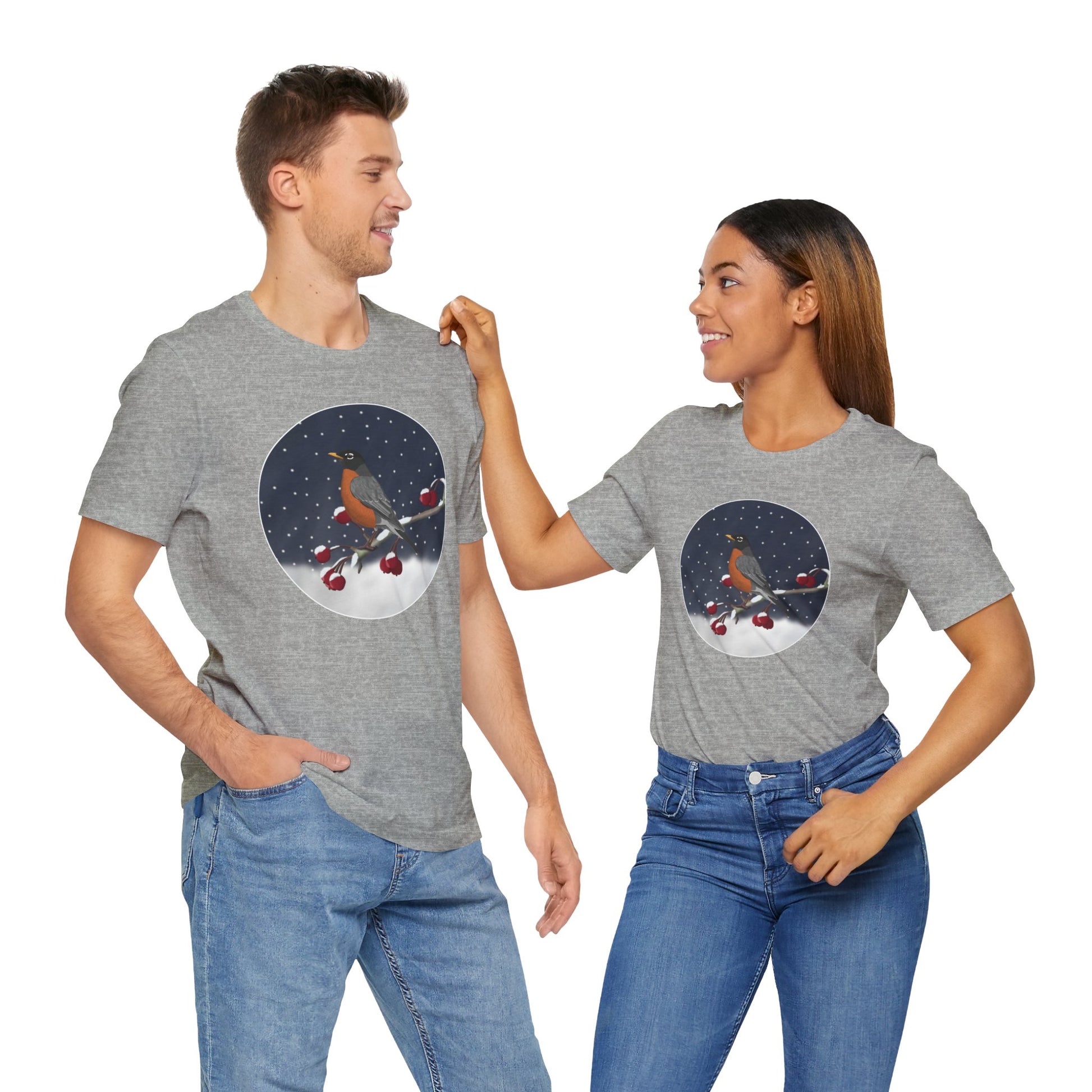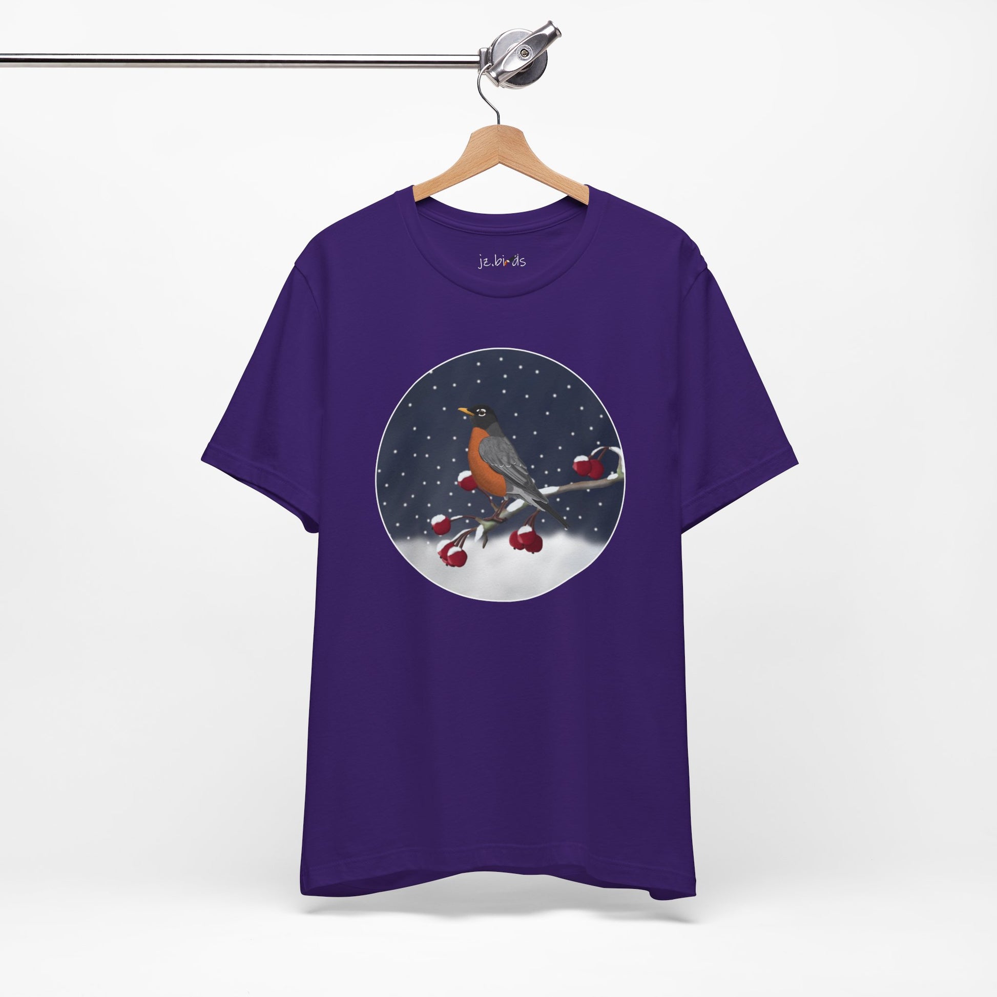 American Robin on a Winter Branch Birdwatcher Christmas Bird T-Shirt