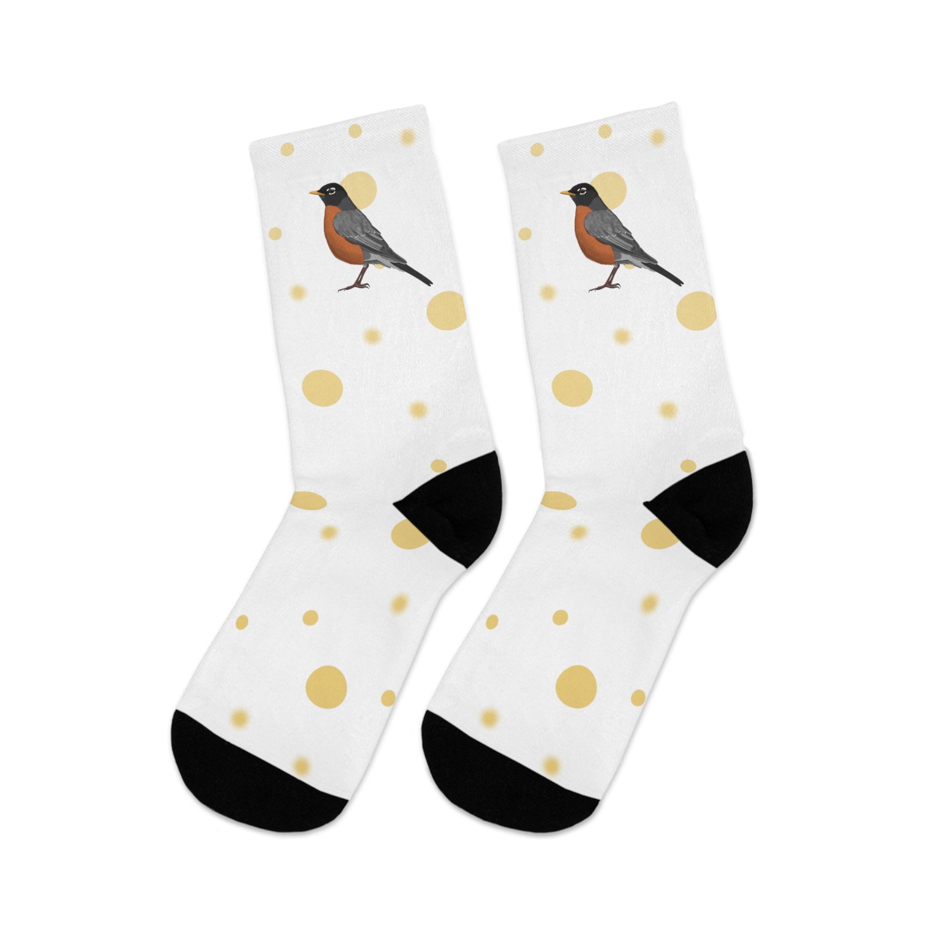 American Robin with Golden Dots Birding & Birdwatching Bird Socks White