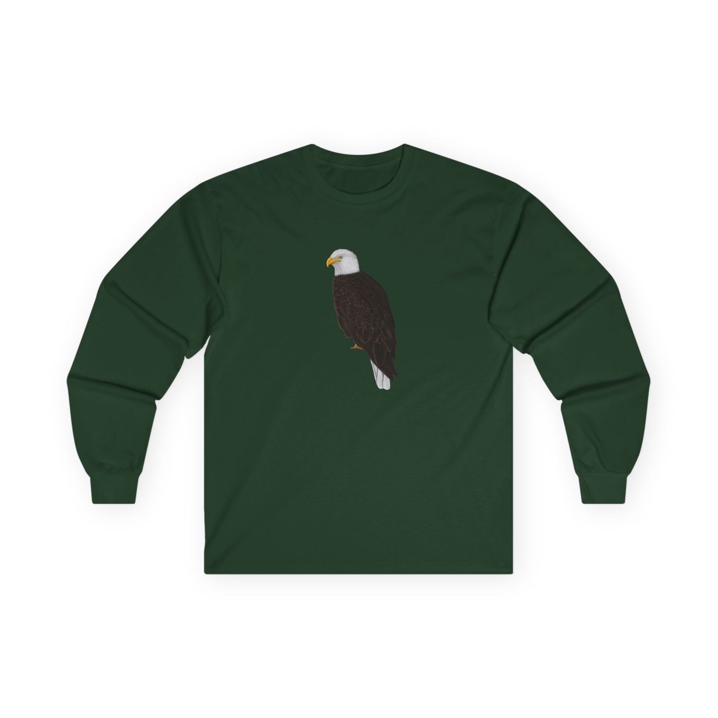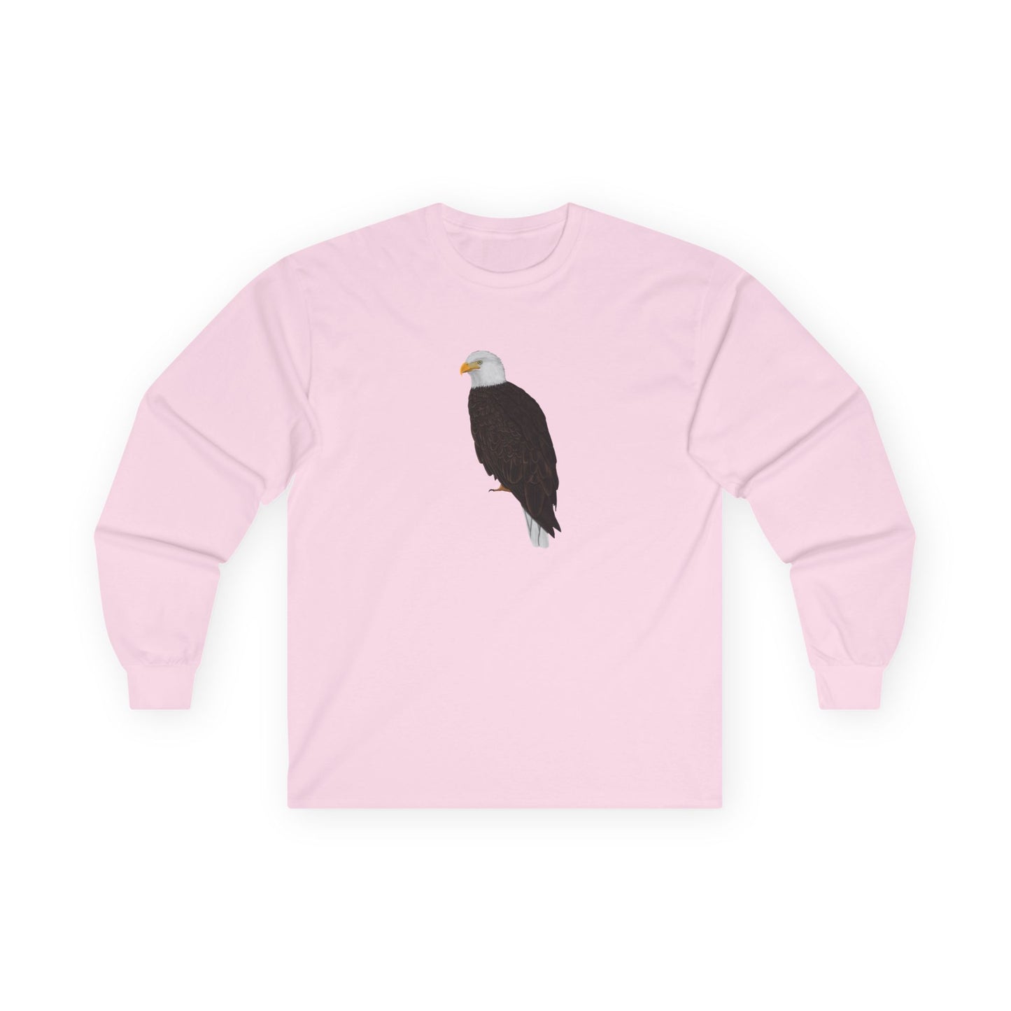 This Bald Eagle bird long sleeve t-shirt is made from high-quality cotton, ensuring a comfortable fit. Its bird design adds a touch of whimsy to your wardrobe. Perfect for a casual day out or a relaxed night in, this shirt is a must-have for any bird enthusiast
