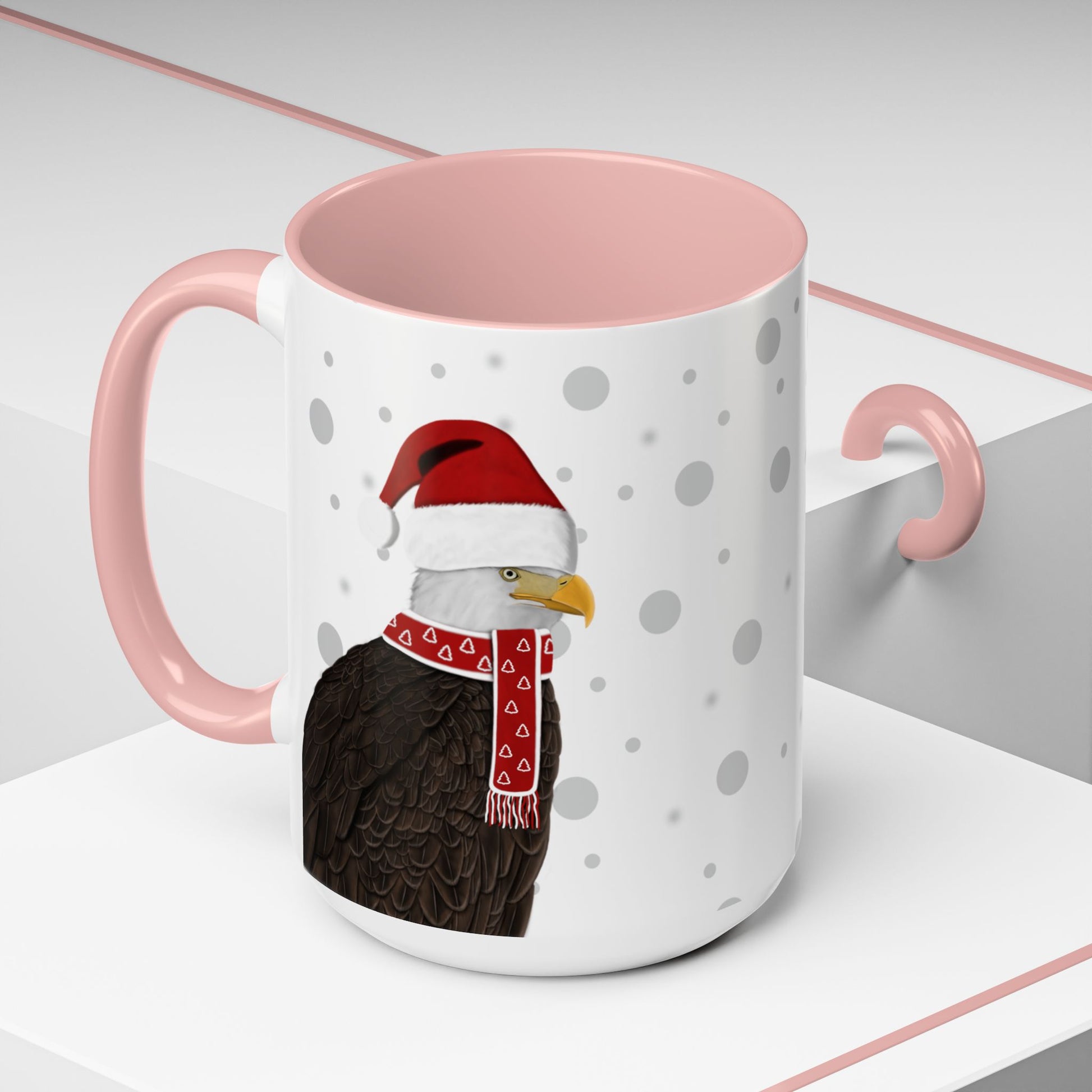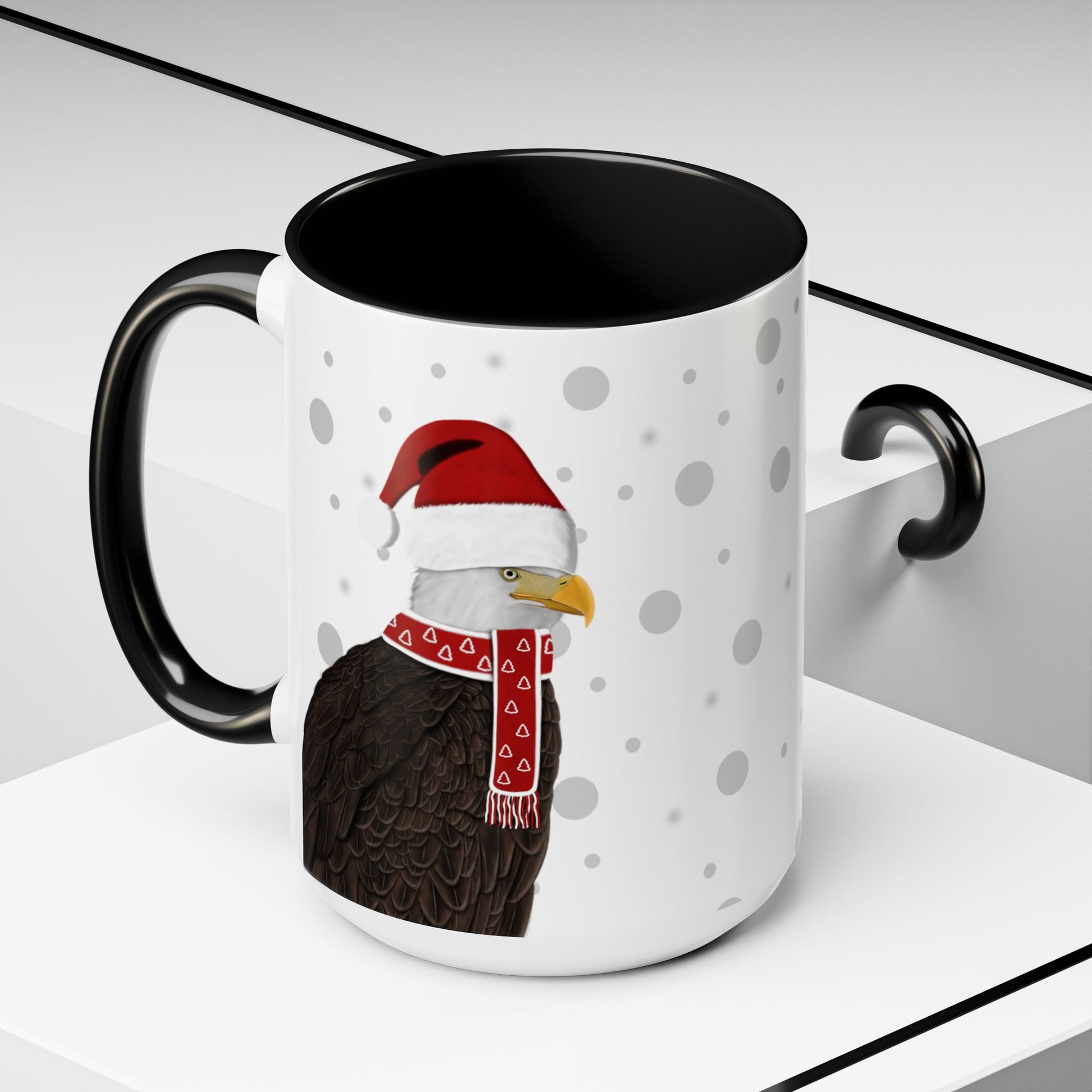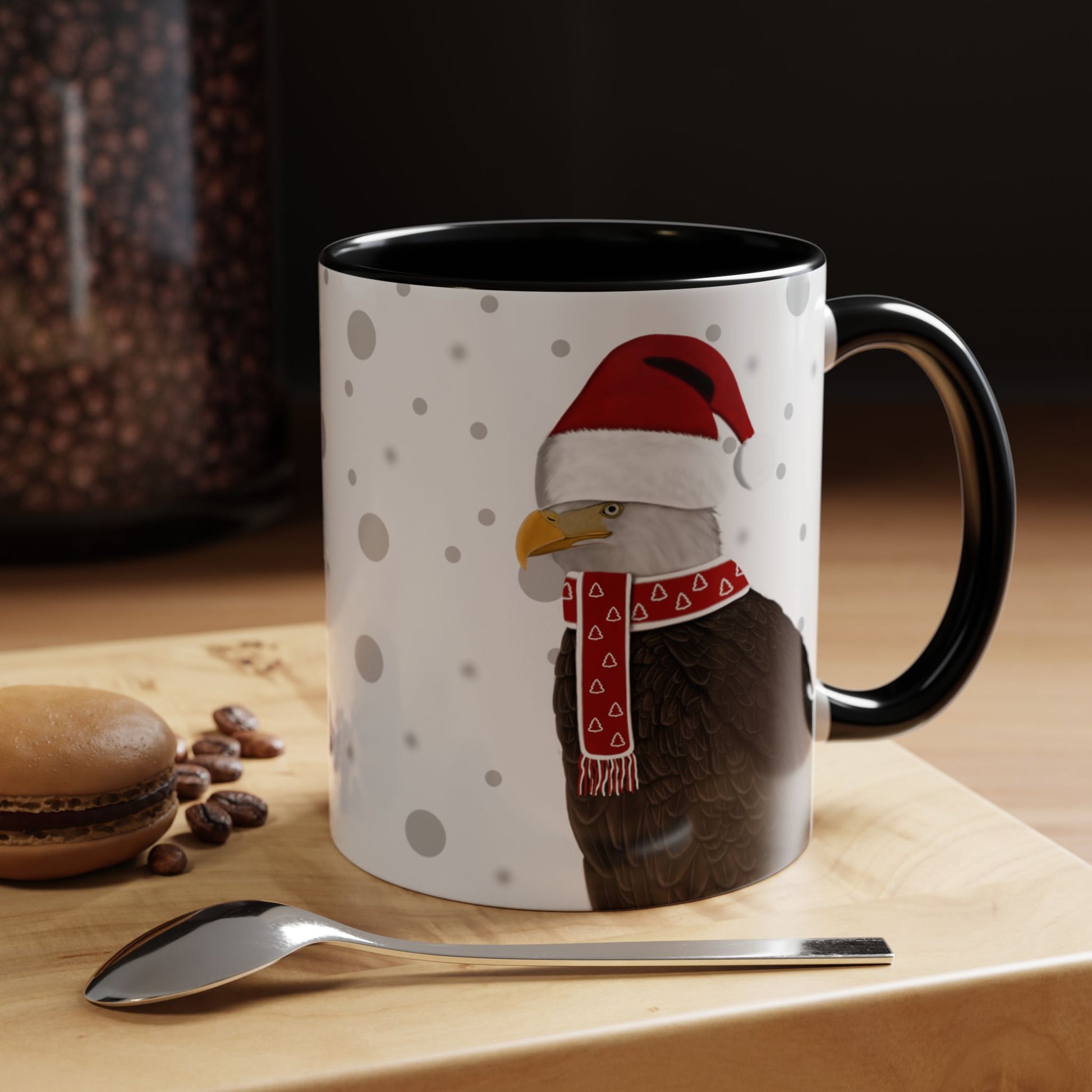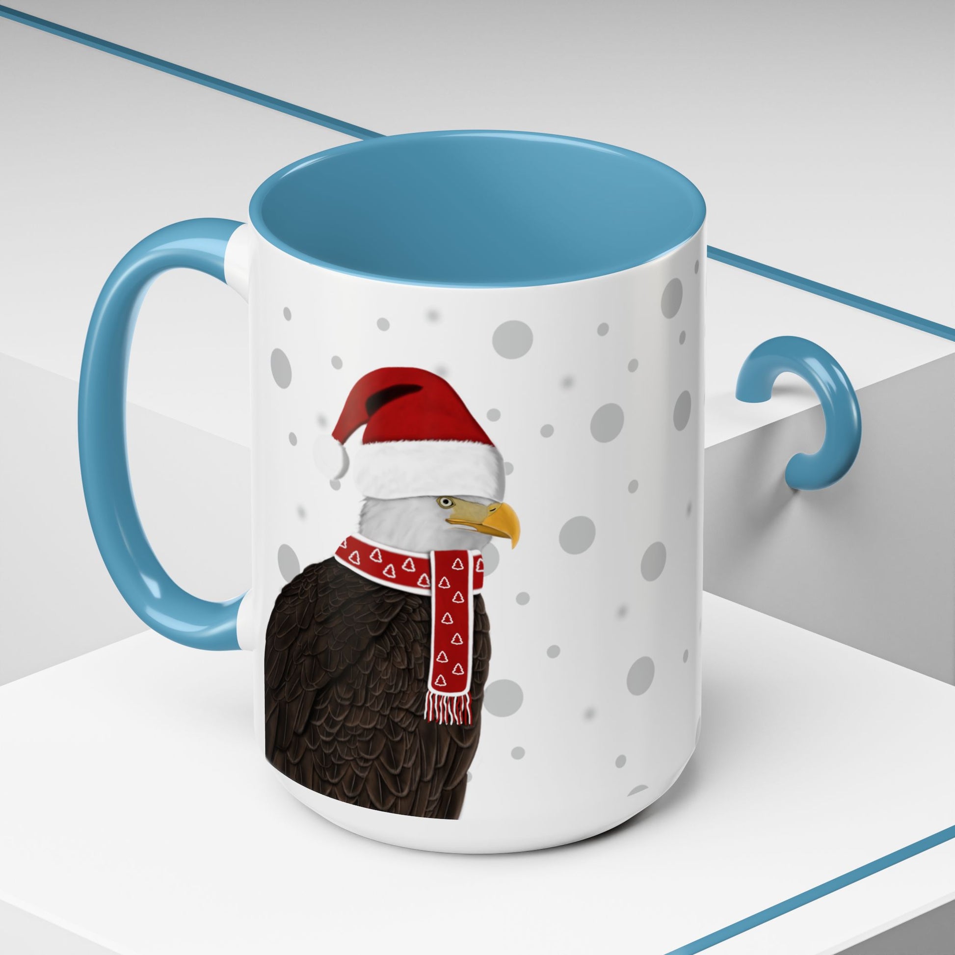 This festive coffee mug is perfect for the holiday season, featuring a charming Bald Eagle Christmas bird design. Made of durable ceramic, it's the ideal way to enjoy your favorite hot beverages during the winter months. Add some joy to your mornings with this cheery mug.