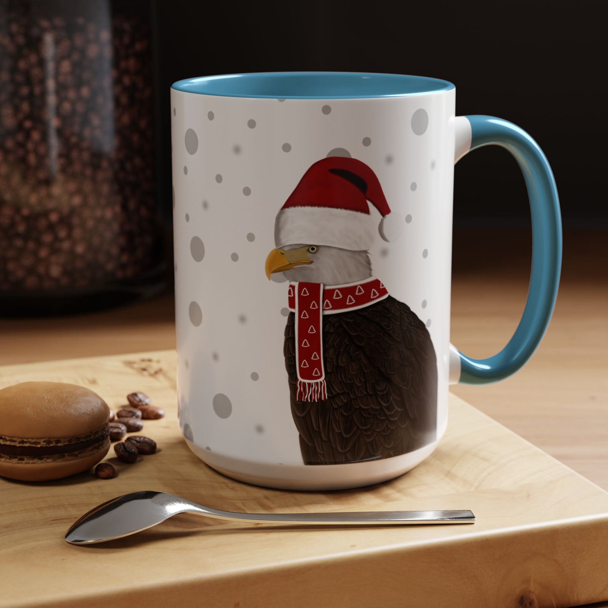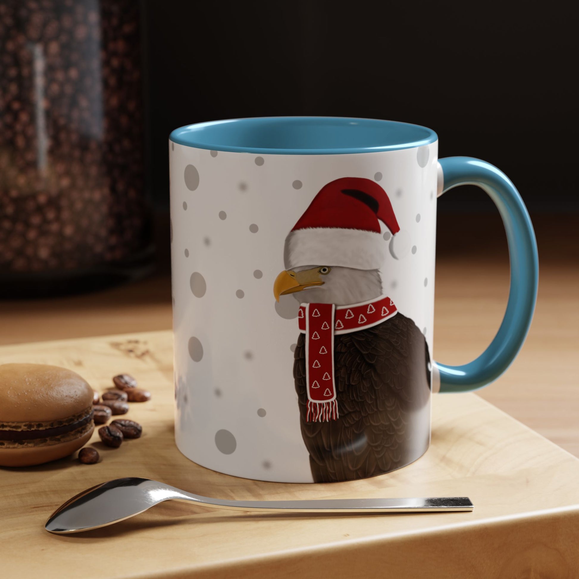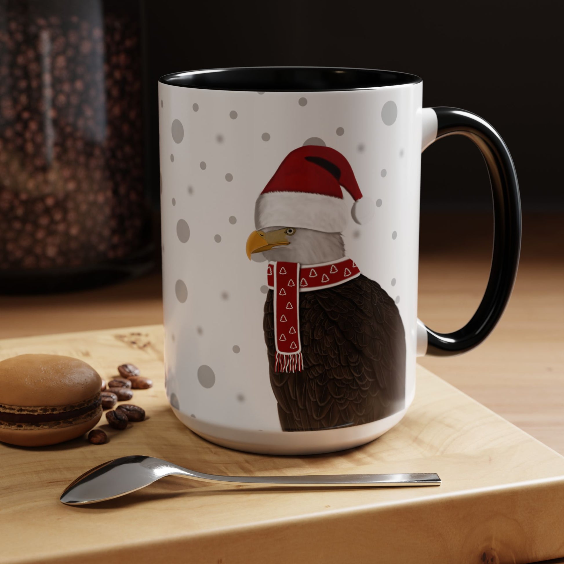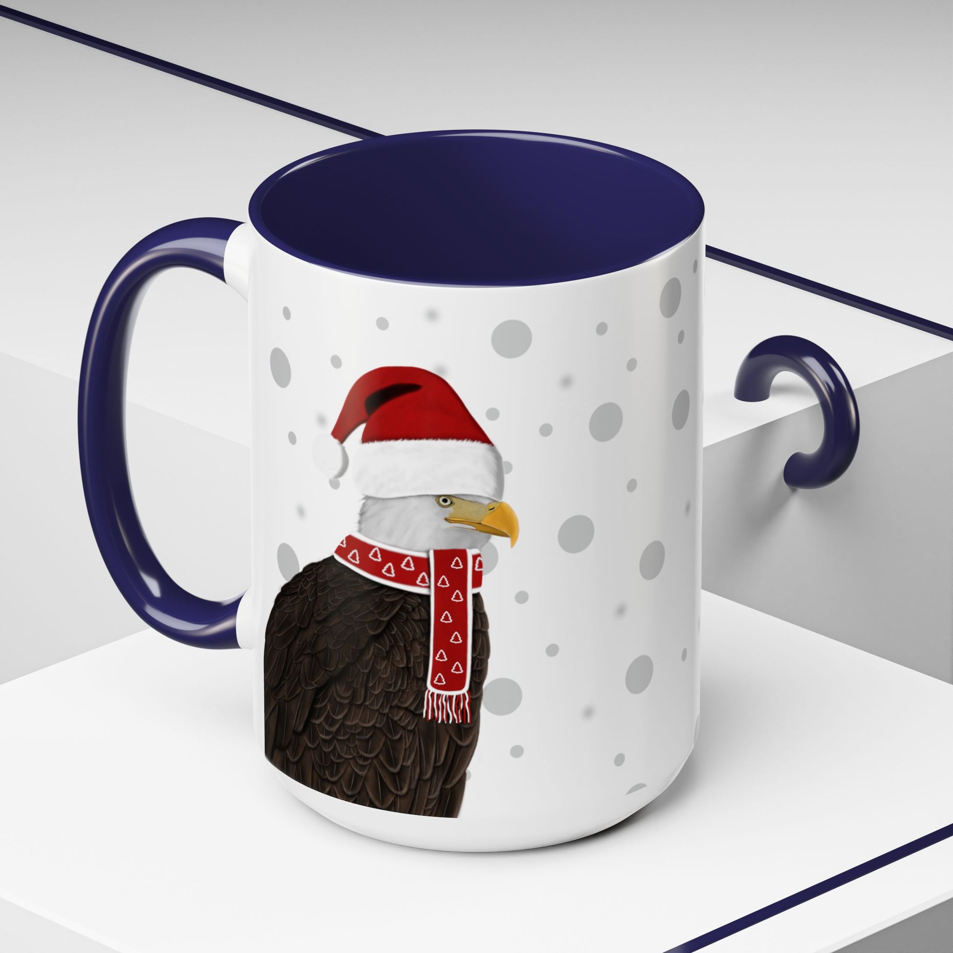 This festive coffee mug is perfect for the holiday season, featuring a charming Bald Eagle Christmas bird design. Made of durable ceramic, it's the ideal way to enjoy your favorite hot beverages during the winter months. Add some joy to your mornings with this cheery mug.