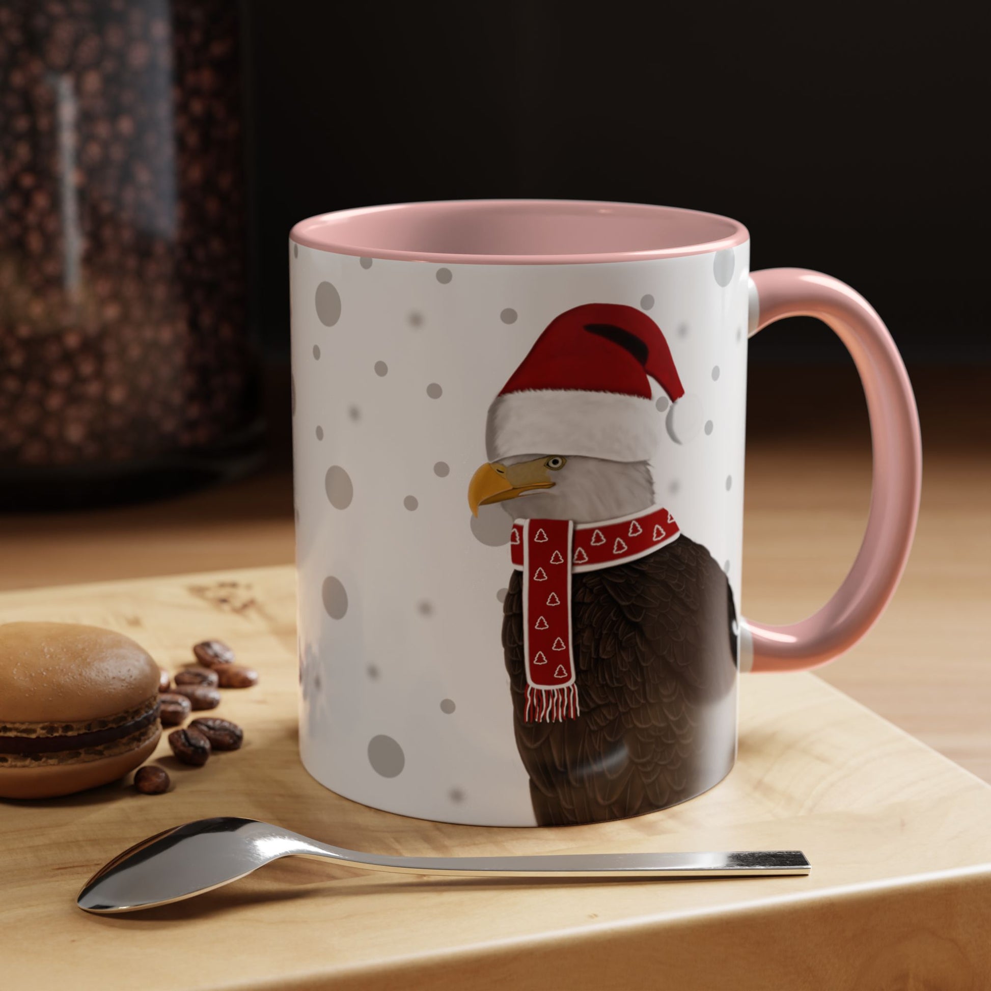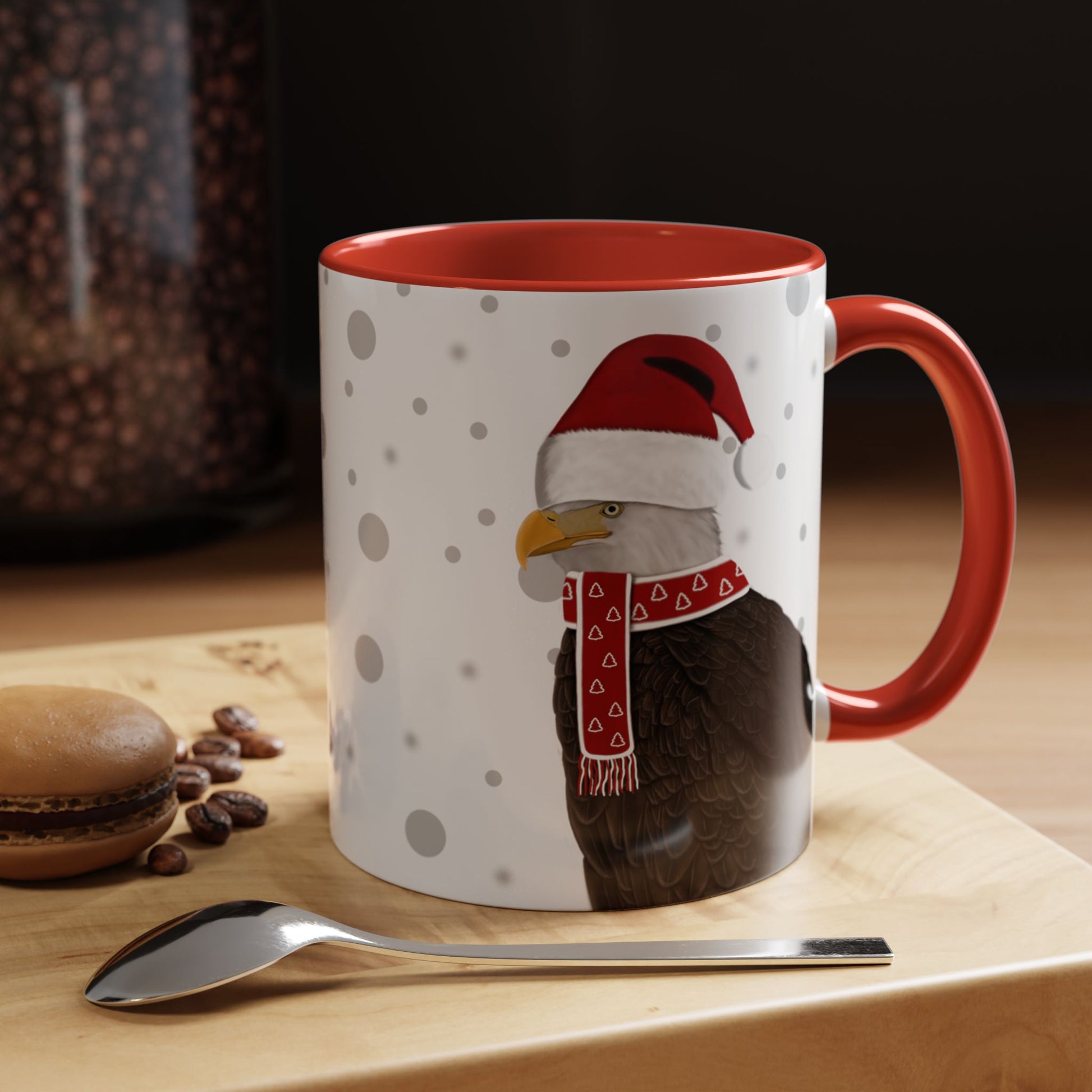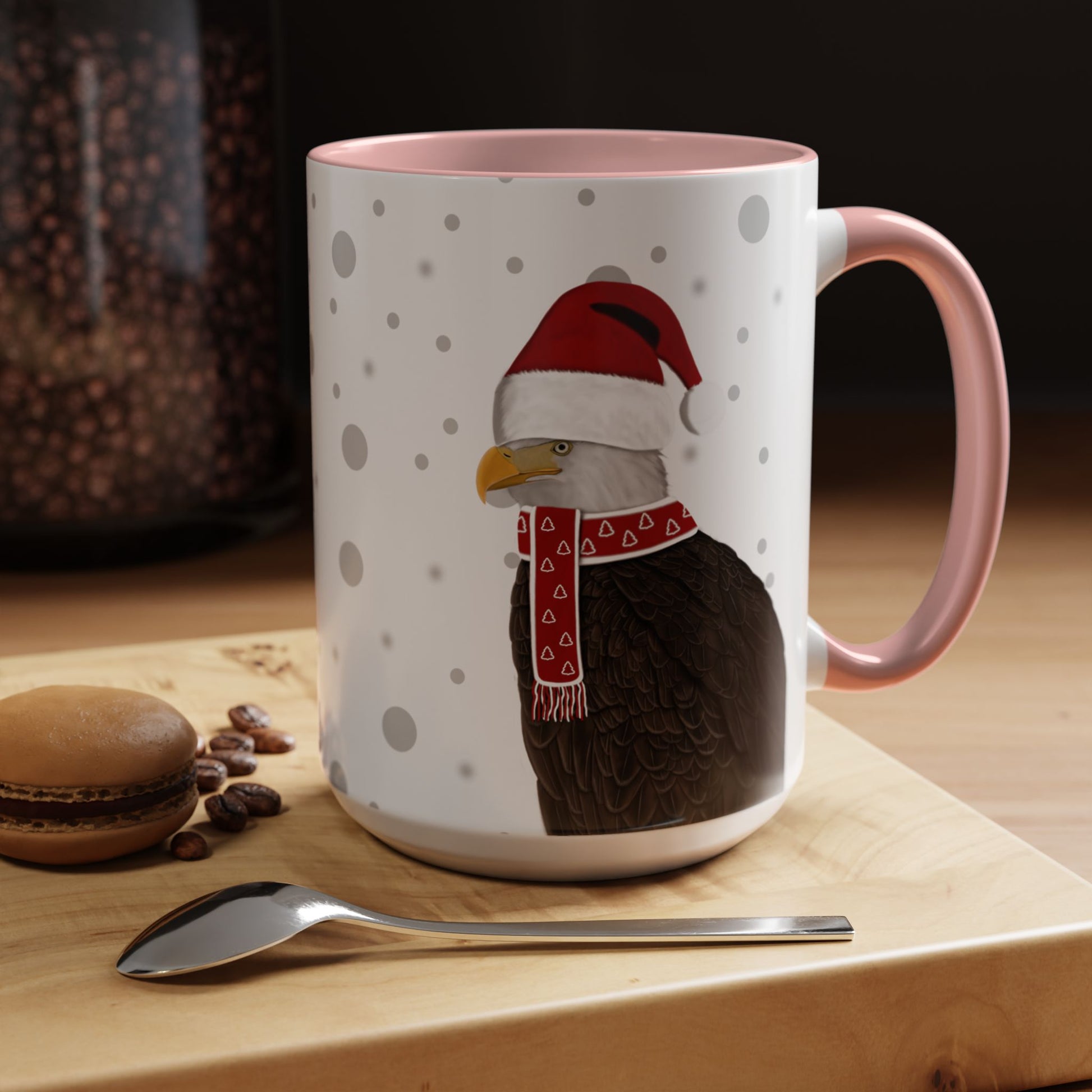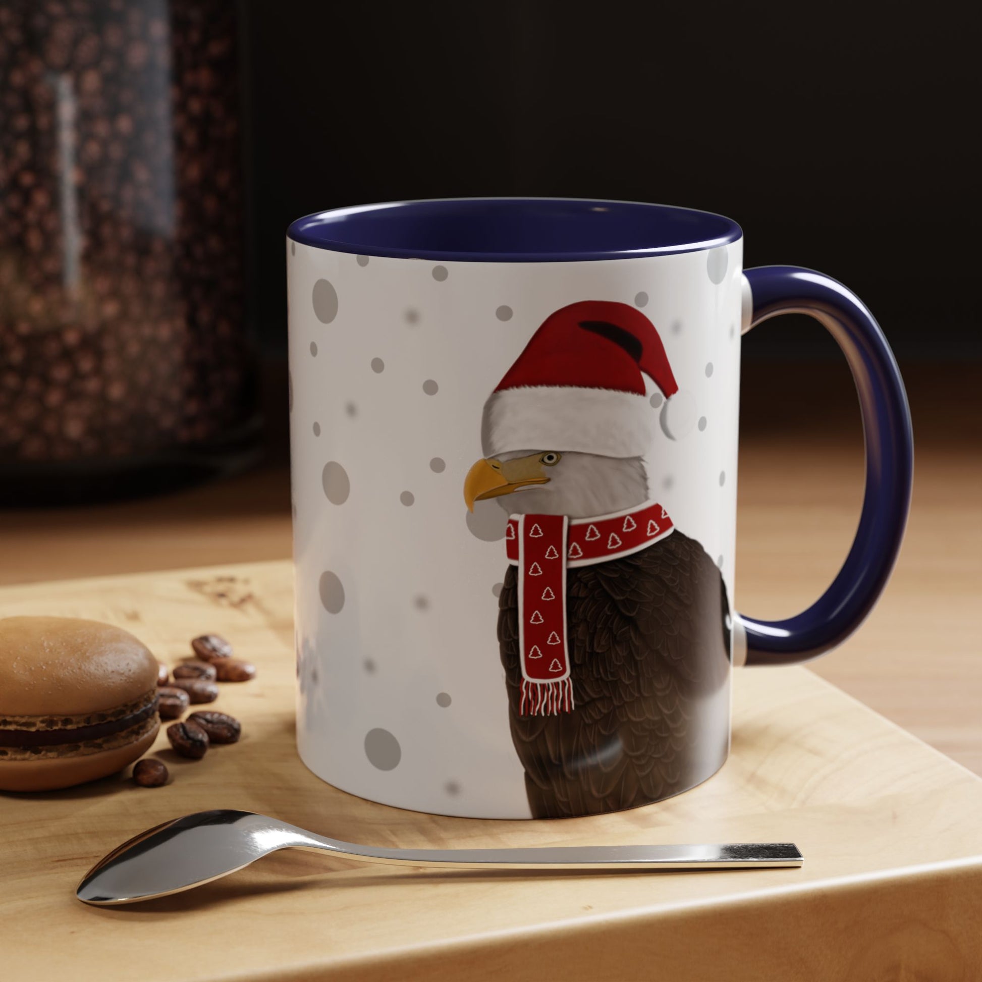 This festive coffee mug is perfect for the holiday season, featuring a charming Bald Eagle Christmas bird design. Made of durable ceramic, it's the ideal way to enjoy your favorite hot beverages during the winter months. Add some joy to your mornings with this cheery mug.