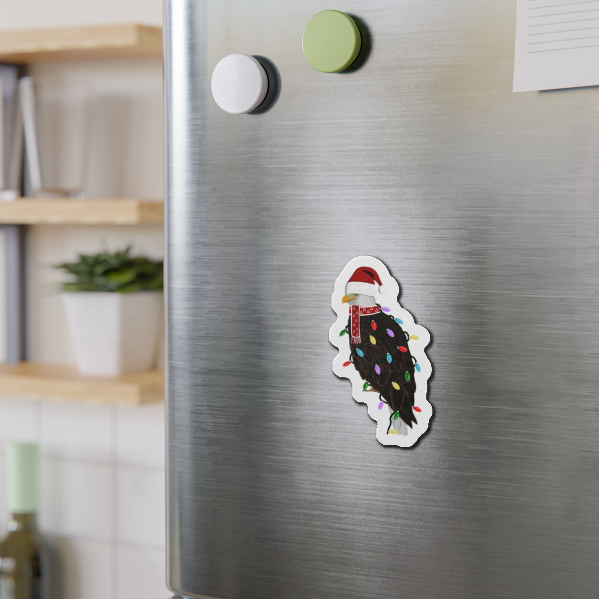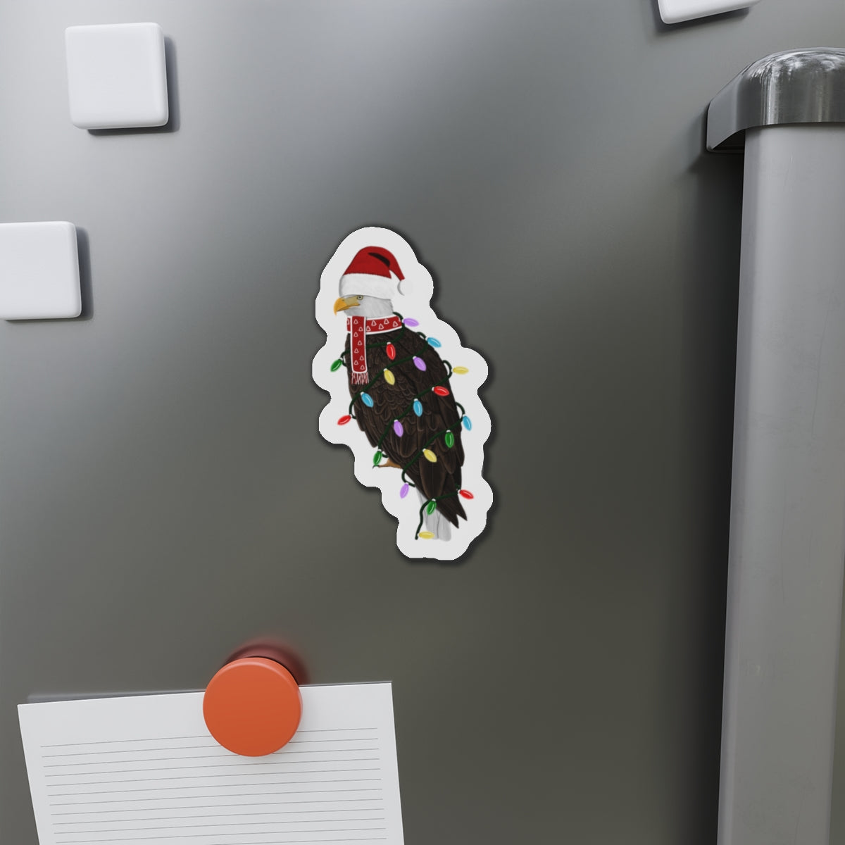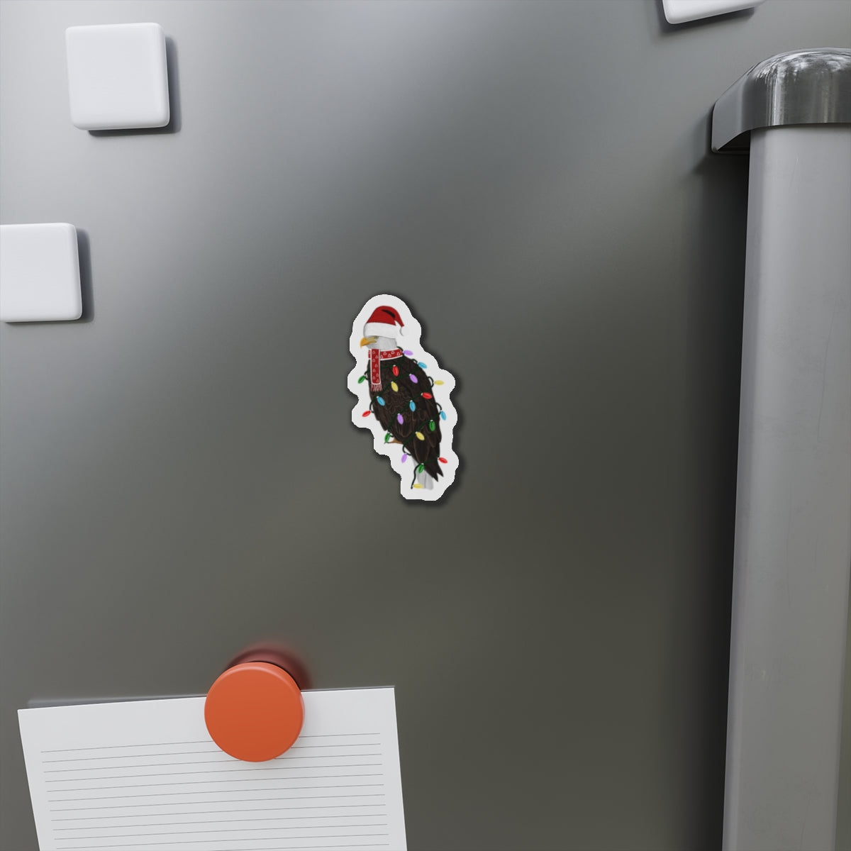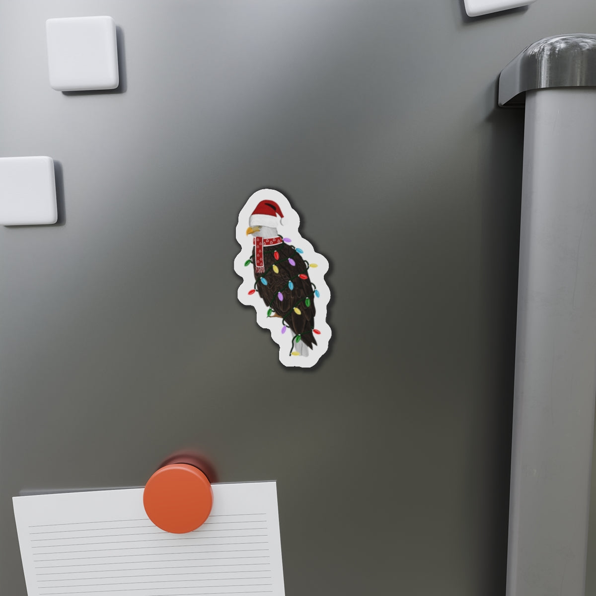 Bald Eagle with Fairy Lights and Scarf Christmas Bird Magnet