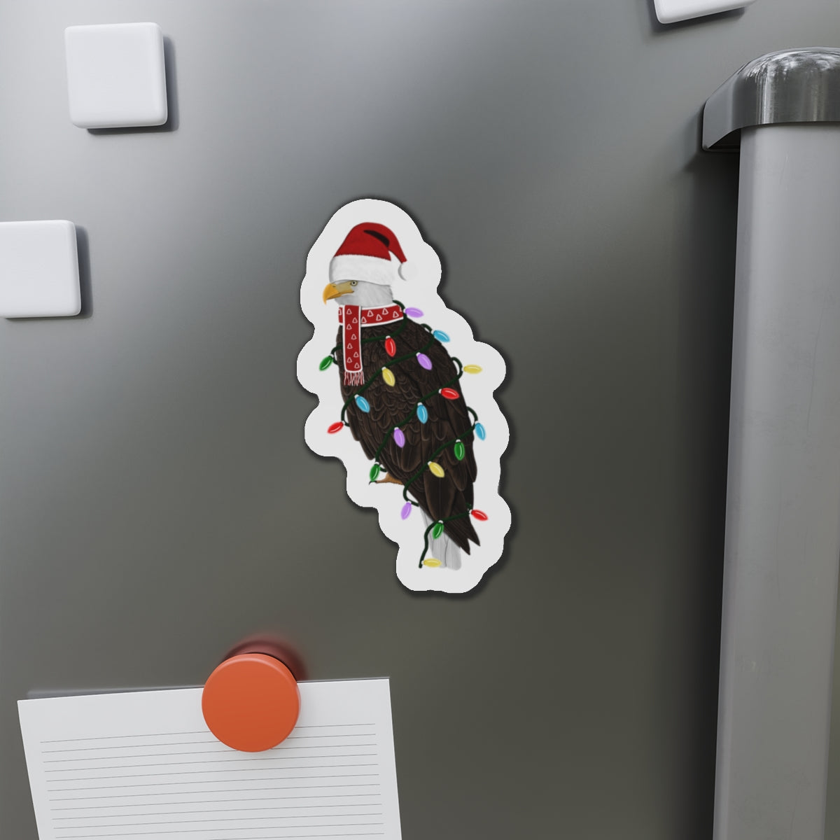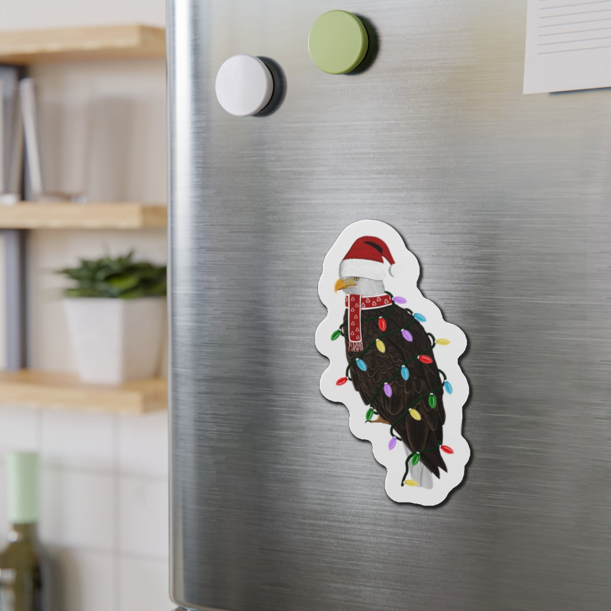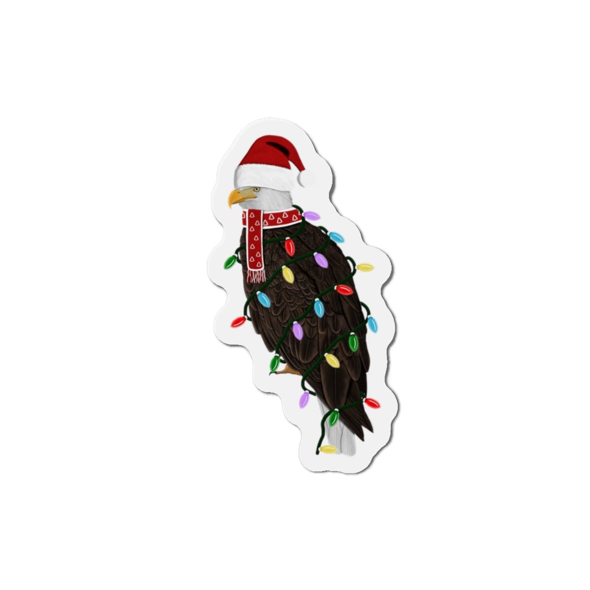 This magnet features a beautiful Bald Eagle with Fairy Lights Christmas bird illustration. It serves as both a useful tool and a lovely decoration for any home or office space. Made with high-quality materials, it is sure to add a touch of elegance to your Christmas decor.