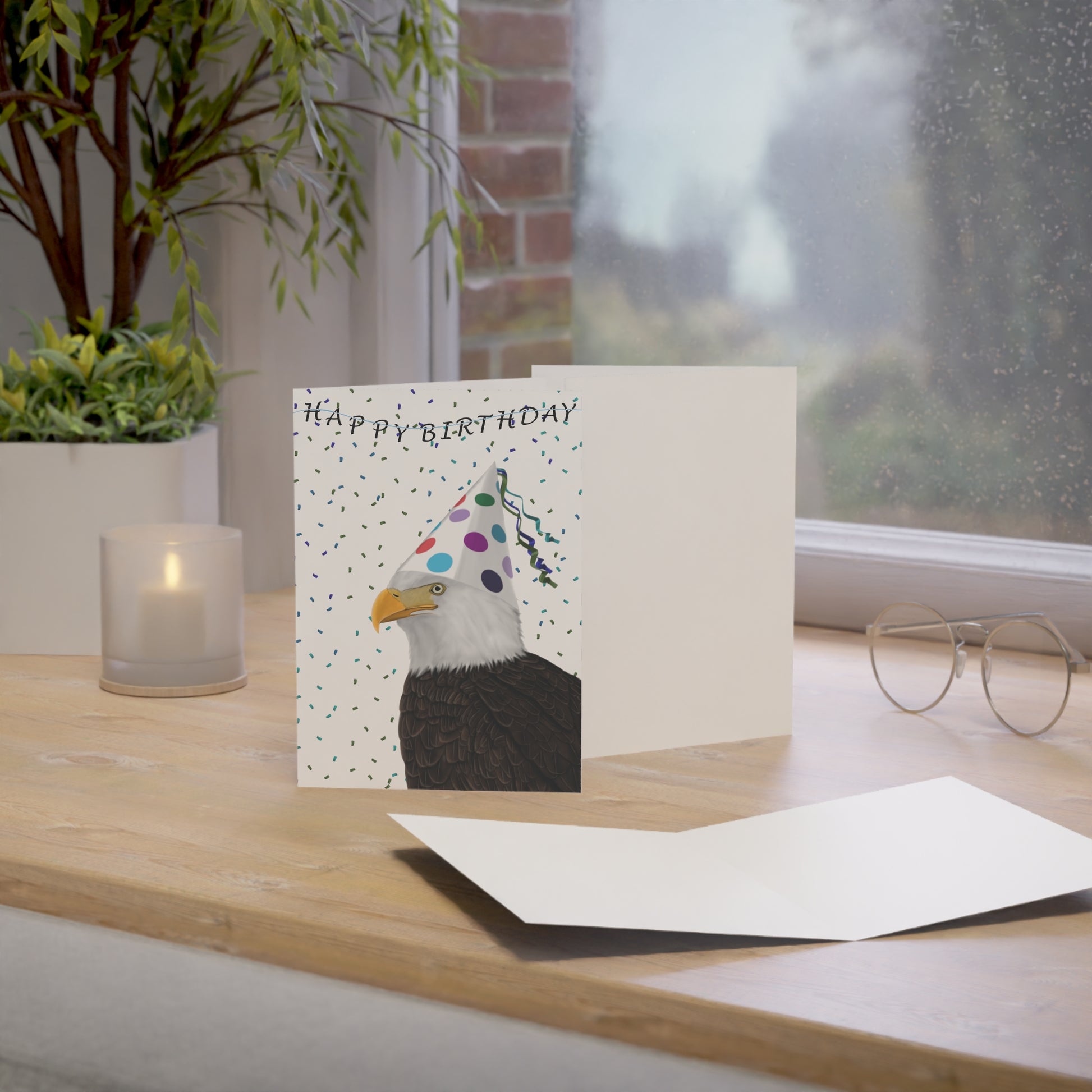 Featuring a vibrant, high-definition illustration of a Bald Eagle with Party Hat, this card is the ideal choice for bird watchers, gardeners, or anyone who appreciates the quiet beauty of the outdoors.