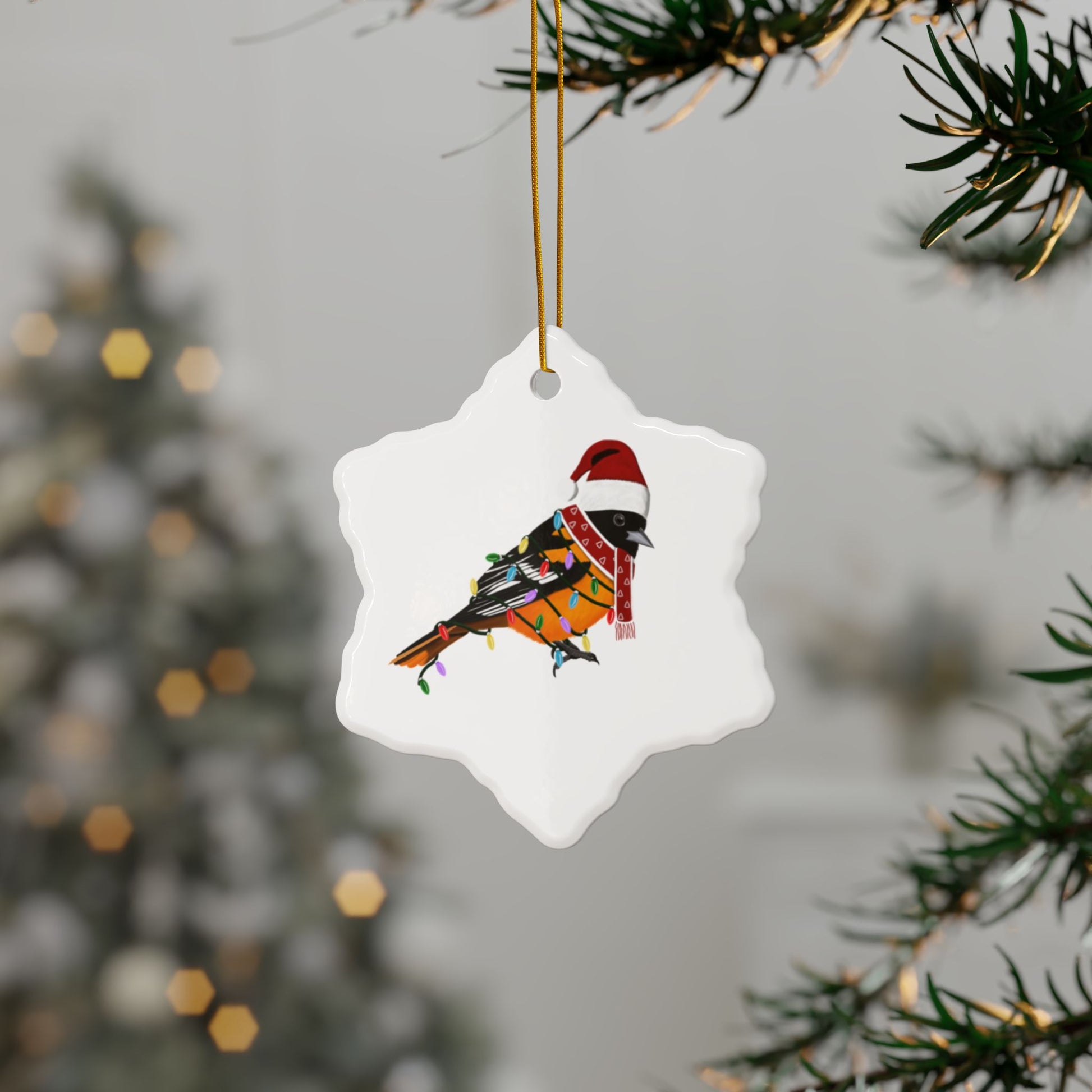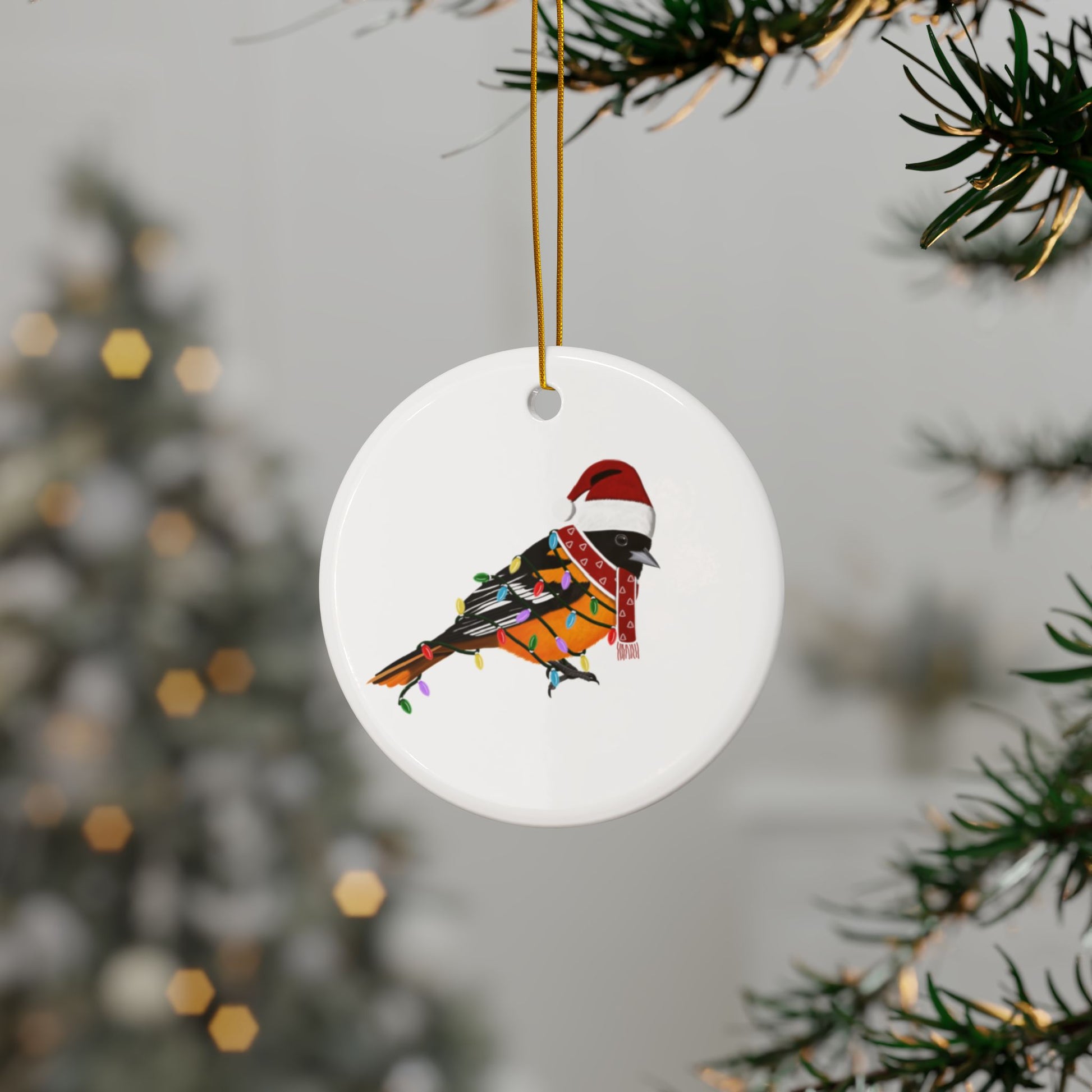 Baltimore Oriole as Santa Ceramic Bird Christmas Ornament | Durable Double-Sided Bird Lover Decor