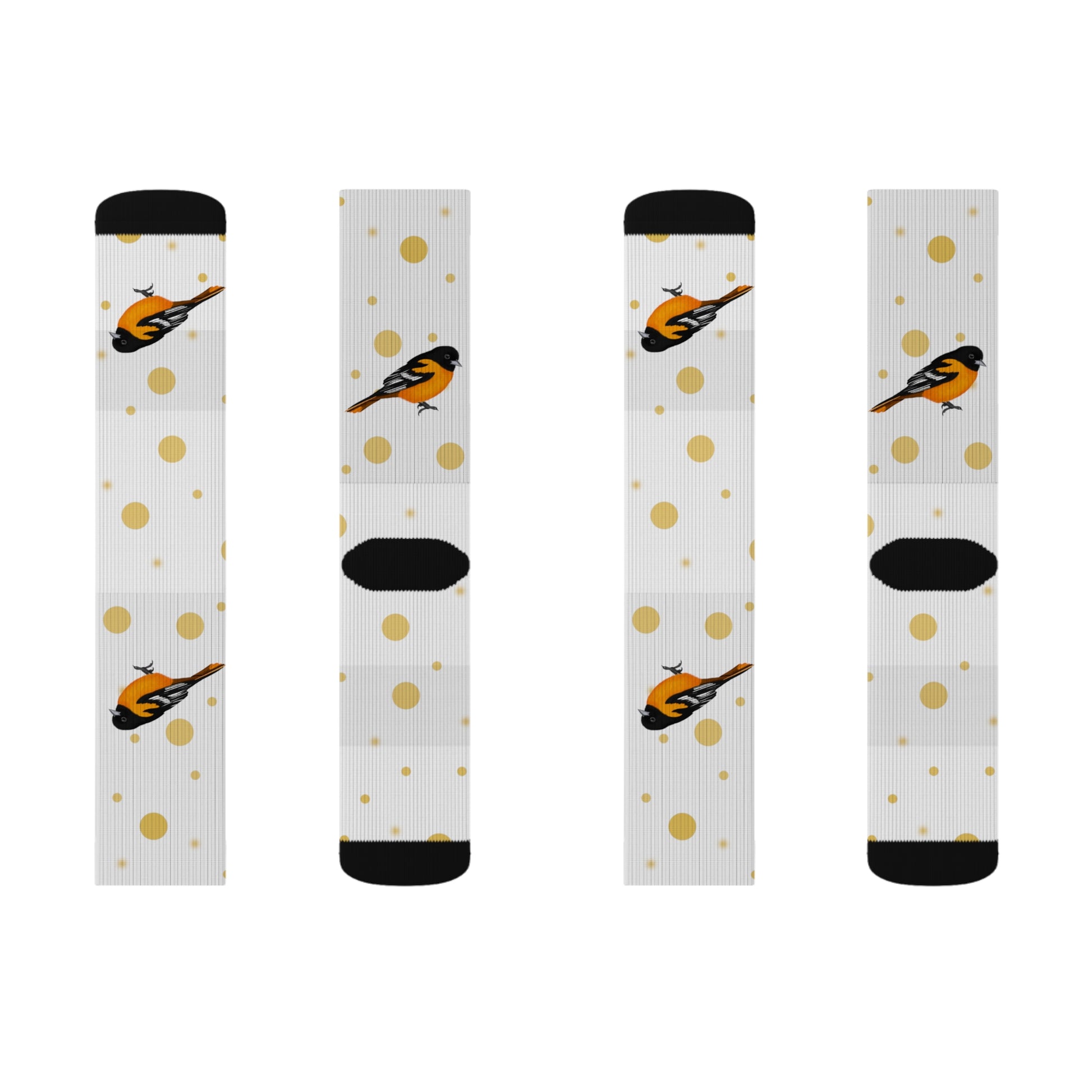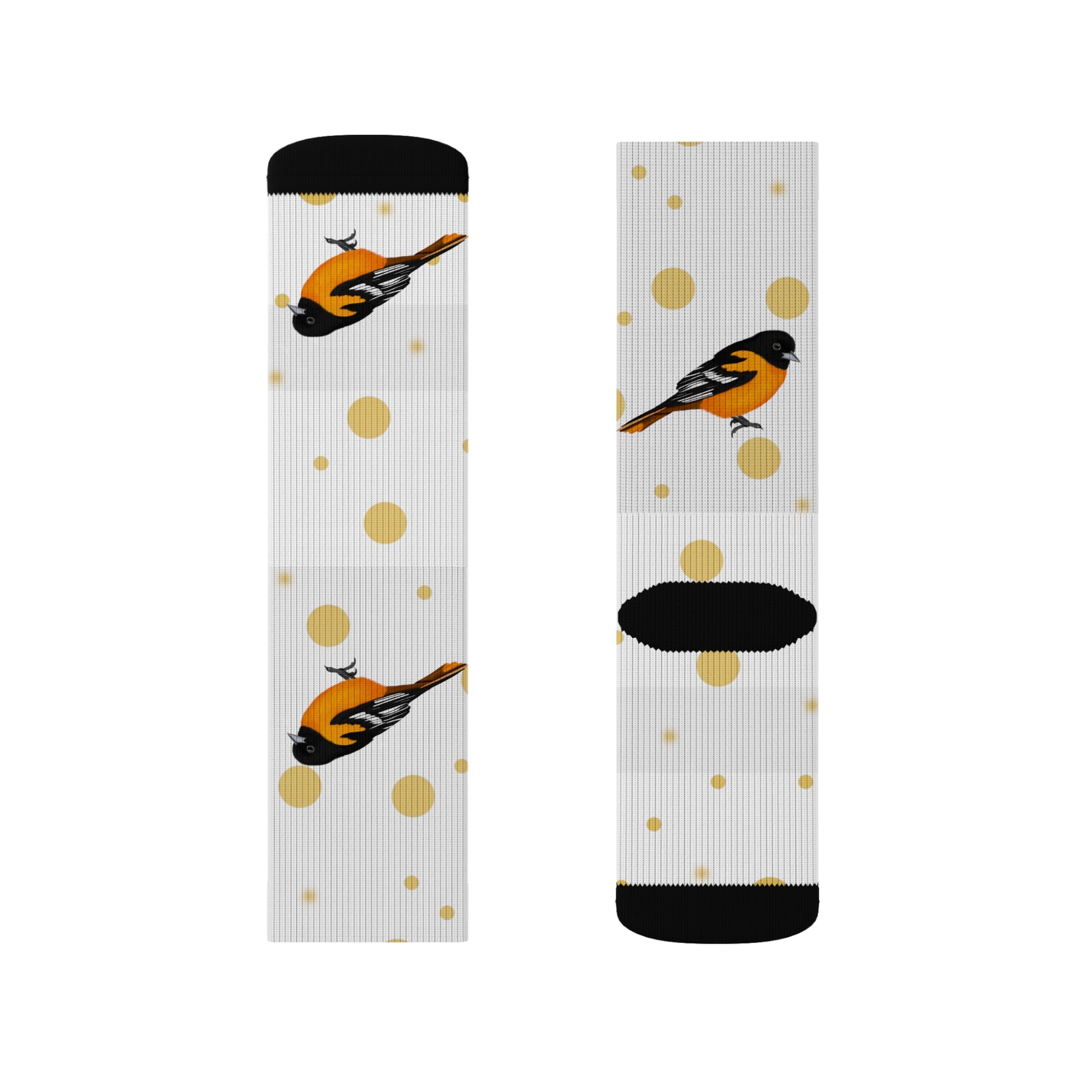 Baltimore Oriole Bird Art Socks White and Golden Dots
