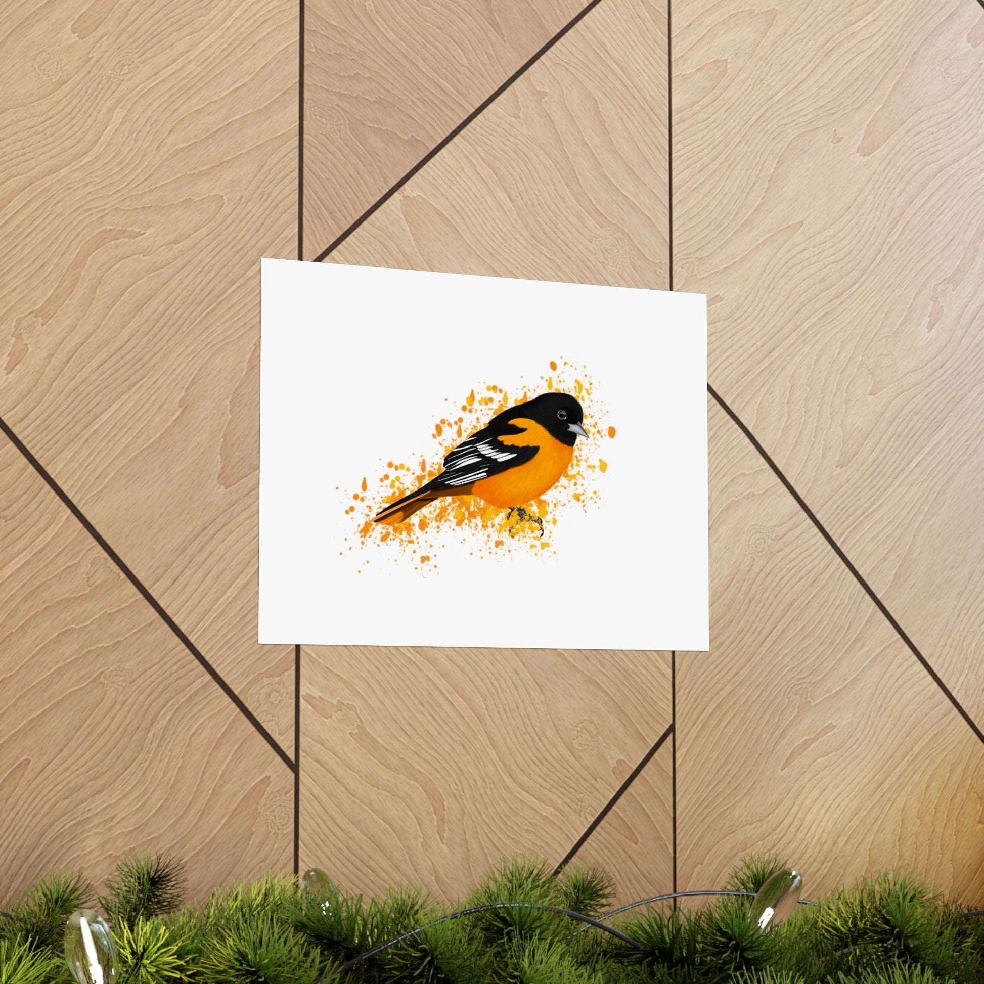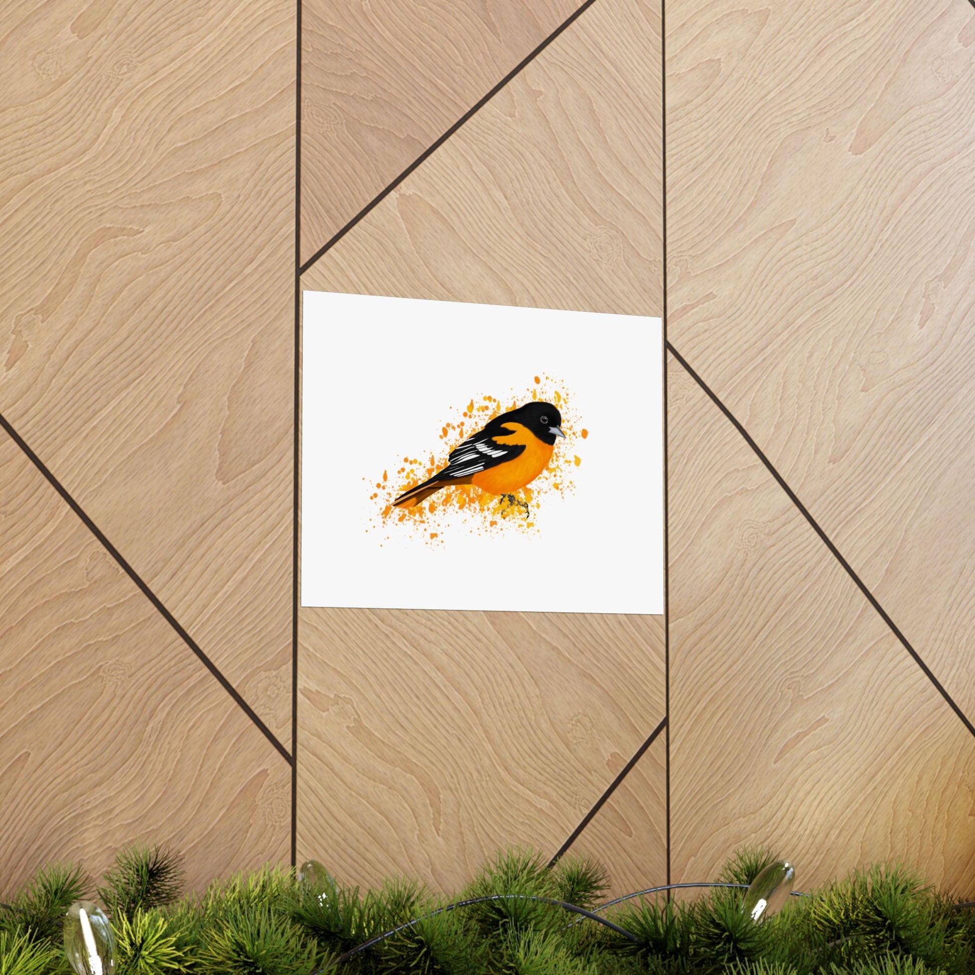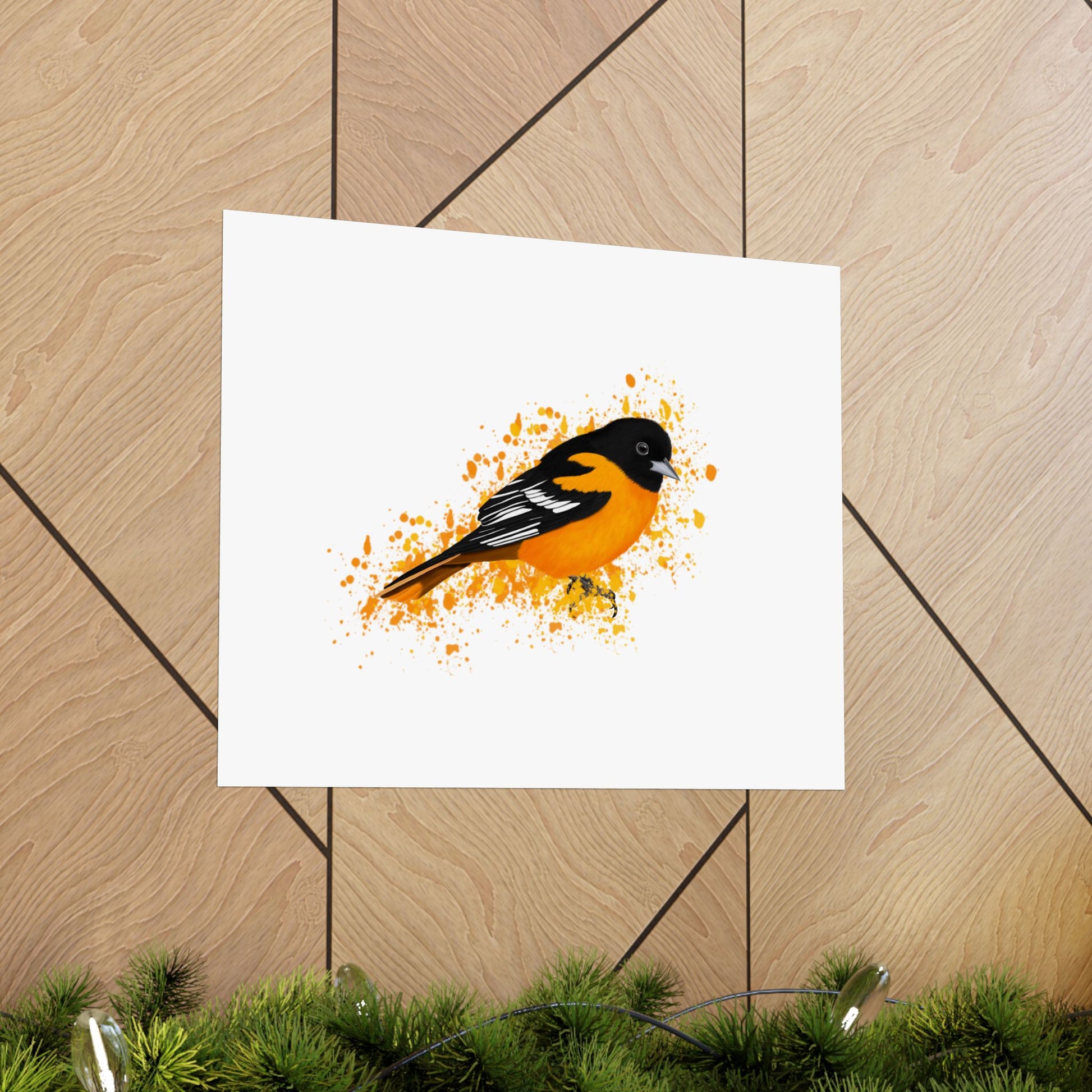 Enhance your home decor with our high-quality matte poster featuring beautiful backyard birds. Crafted with precision and detail, our Baltimore Oriole poster is perfect for bird lovers and brings a touch of nature indoors. Enjoy the calming presence of these birds in your home.