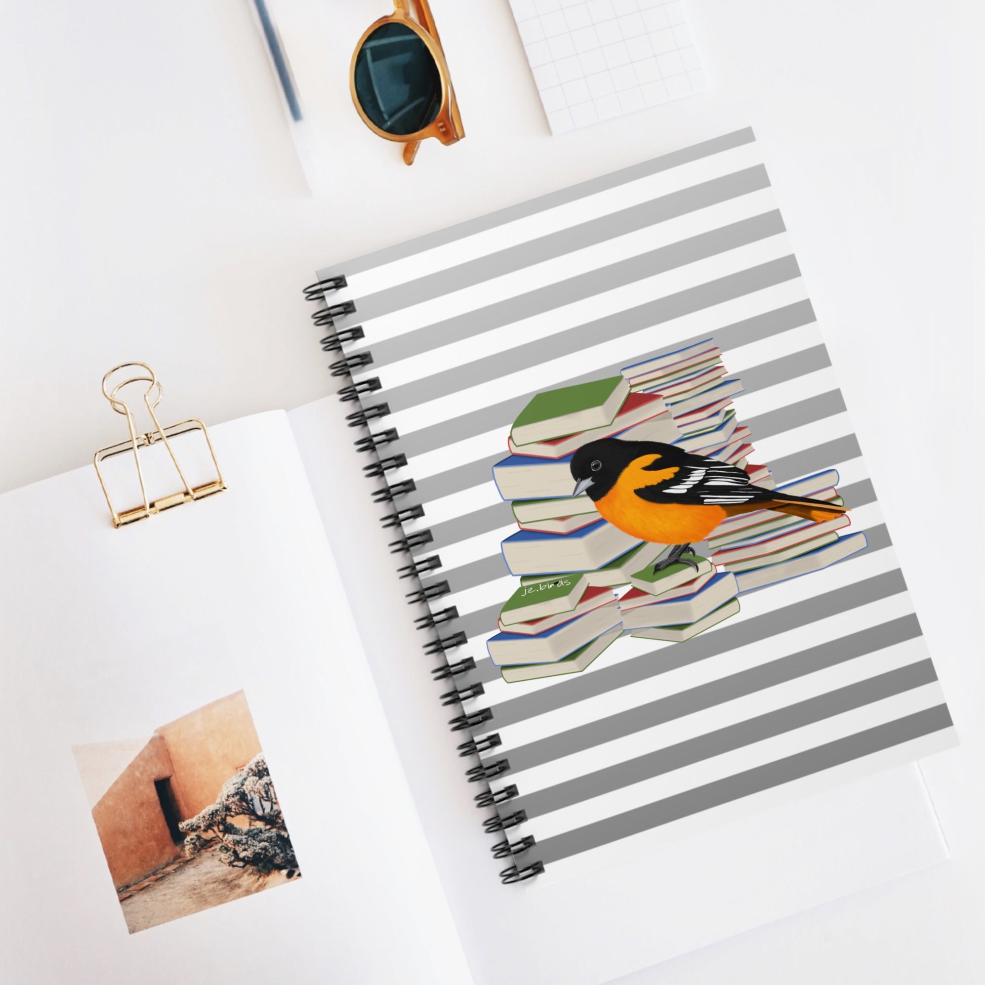 Baltimore Oriole Bird with Books Birdlover Bookworm Spiral Notebook Ruled Line 6" x 8"