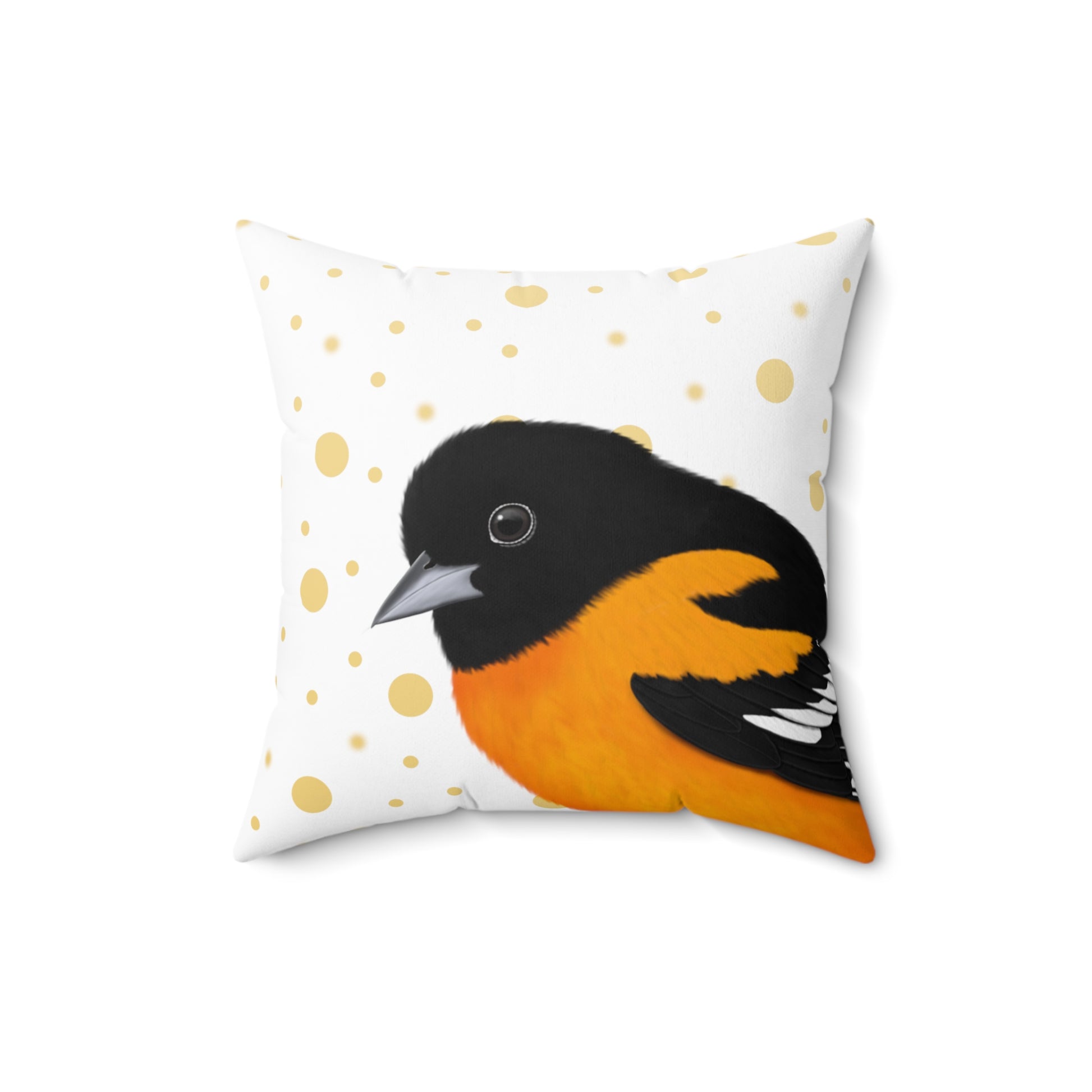 Baltimore Oriole Golden Dots Birdlover Bird Throw Pillow 16"x16" White