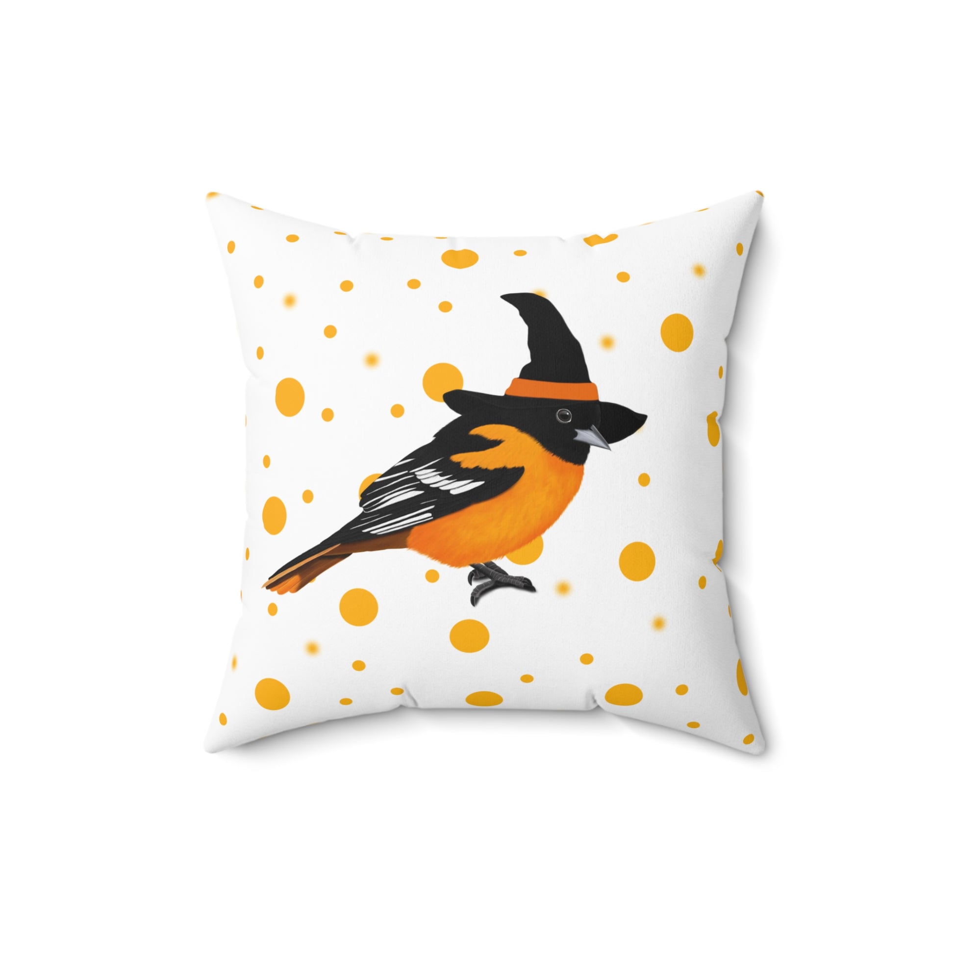 Baltimore Oriole Halloween Bird Throw Pillow White 16"x16" Orange Dots