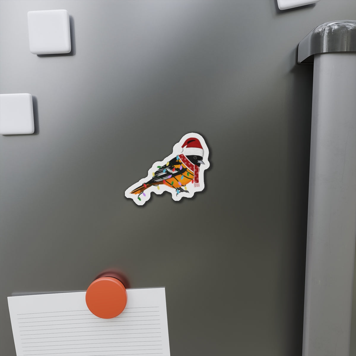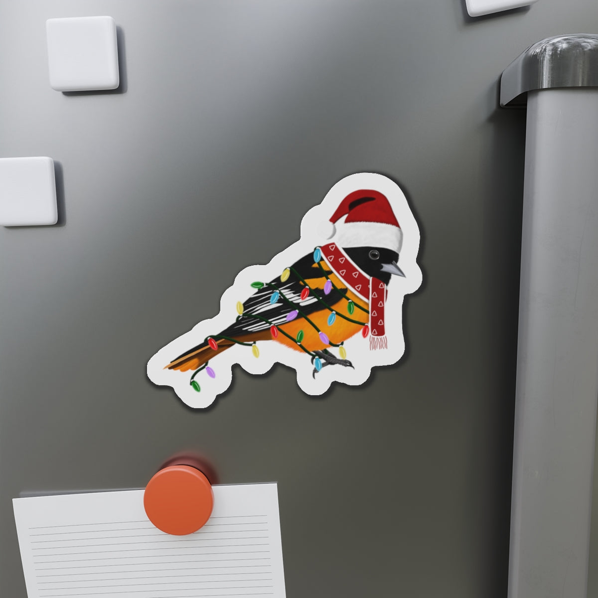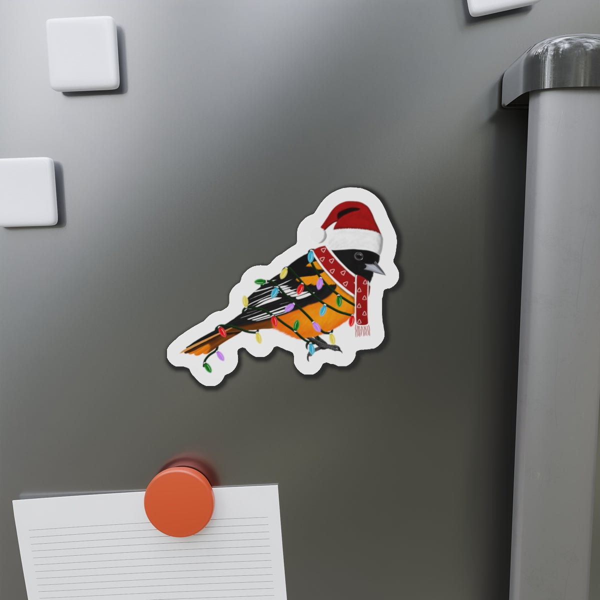Baltimore Oriole with Fairy Lights and Scarf Christmas Bird Magnet