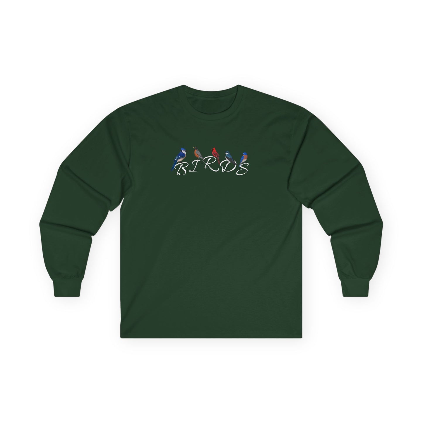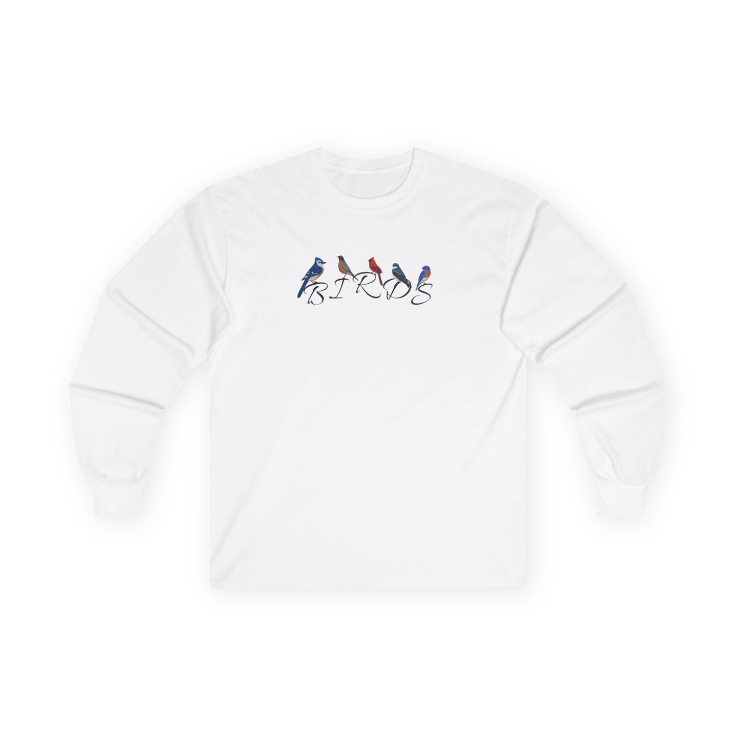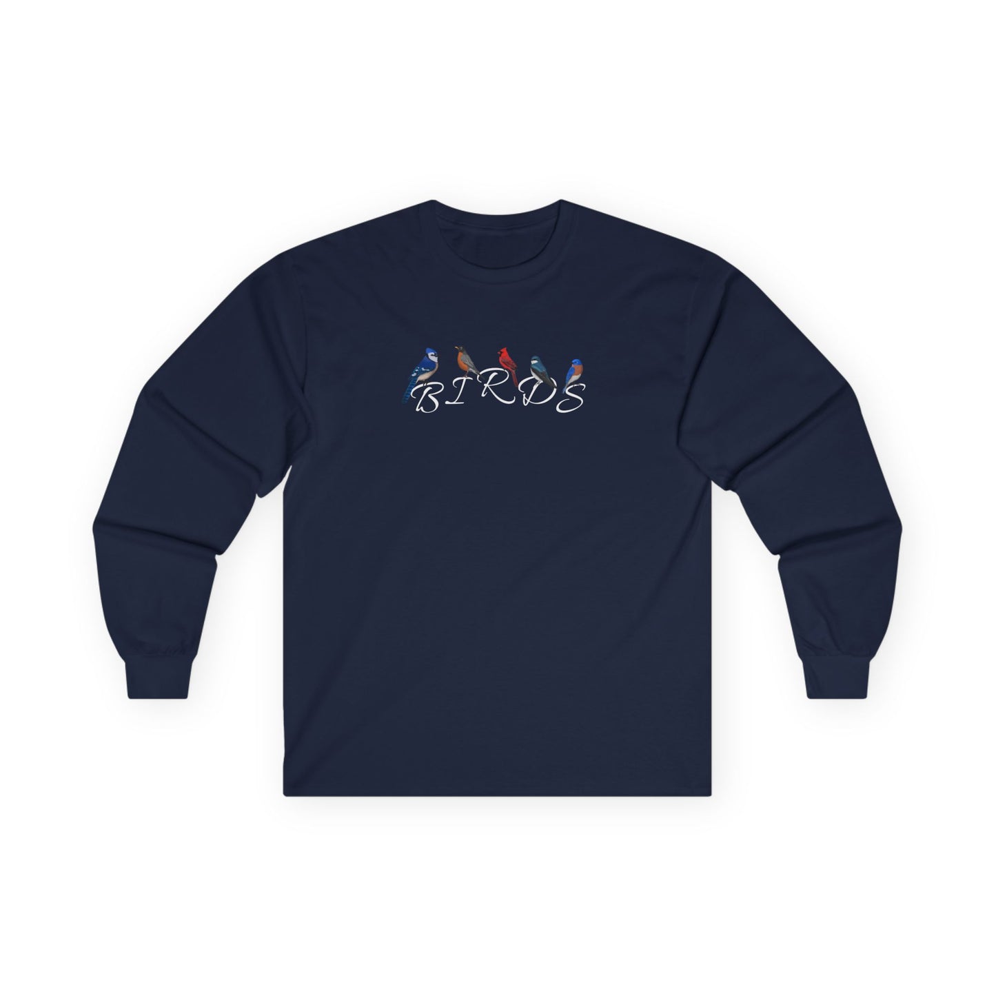 This Blue Jay, Robin, Cardinal, Tree Swallow, Bluebird bird long sleeve t-shirt is made from high-quality cotton, ensuring a comfortable fit. Its bird design adds a touch of whimsy to your wardrobe. Perfect for a casual day out or a relaxed night in, this shirt is a must-have for any bird enthusiast