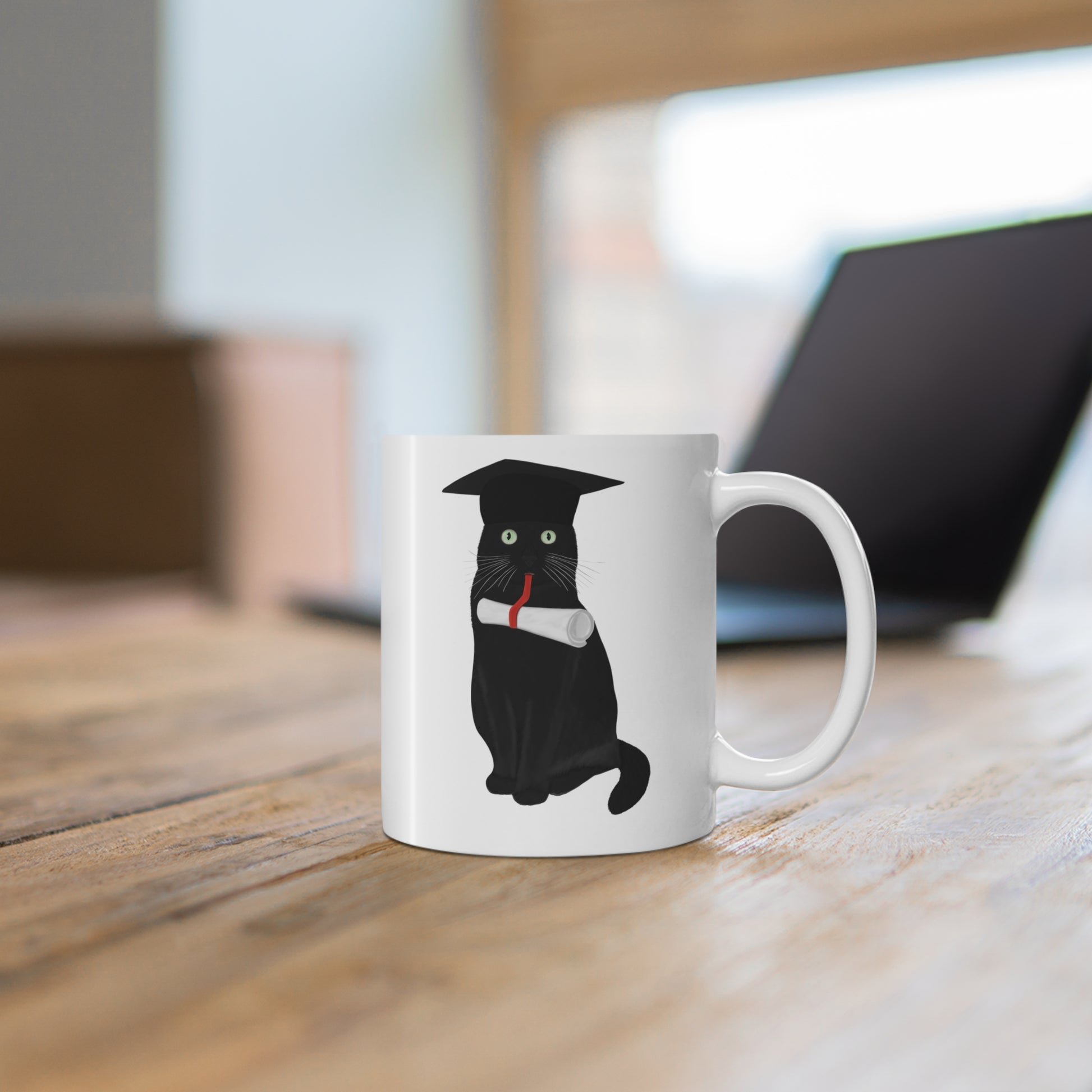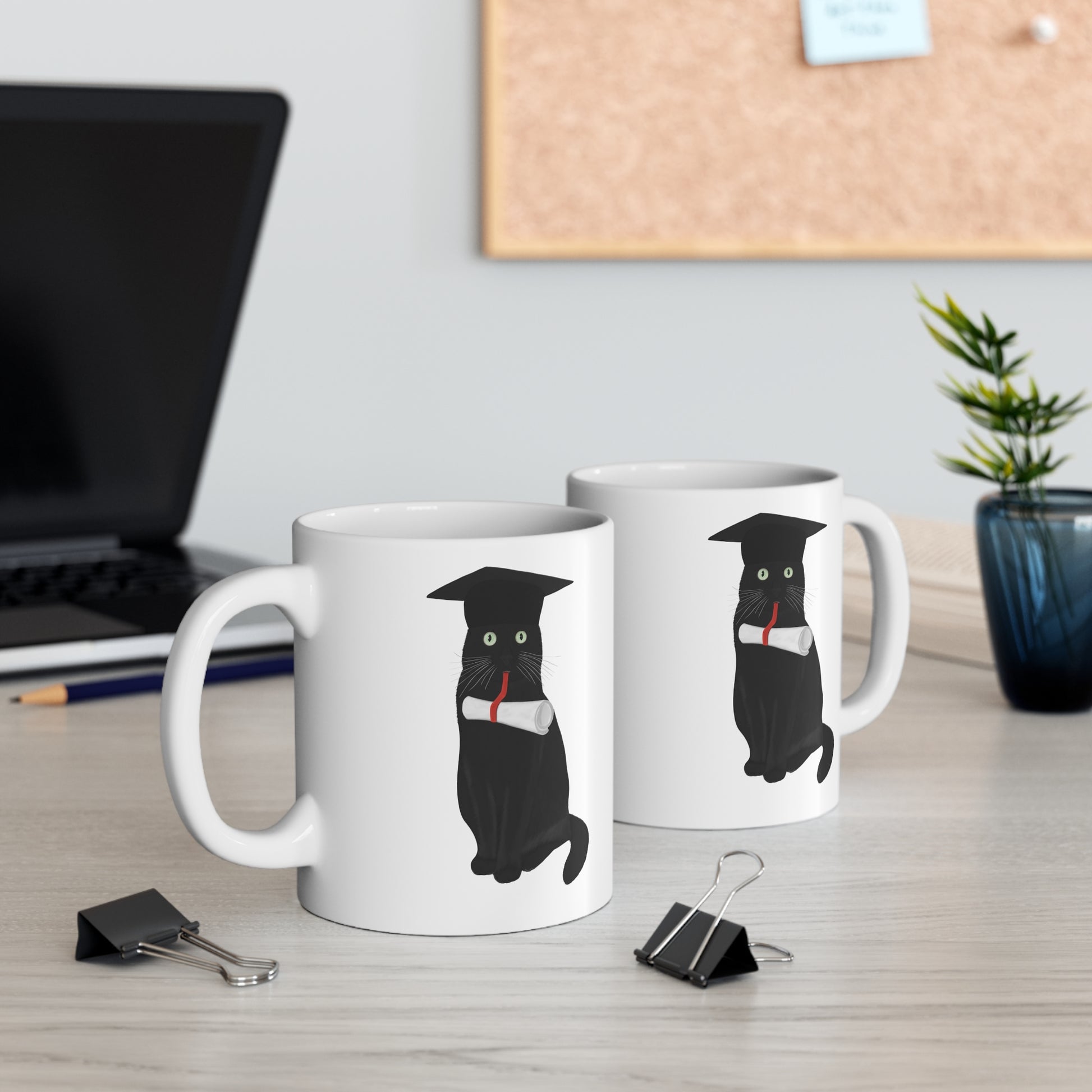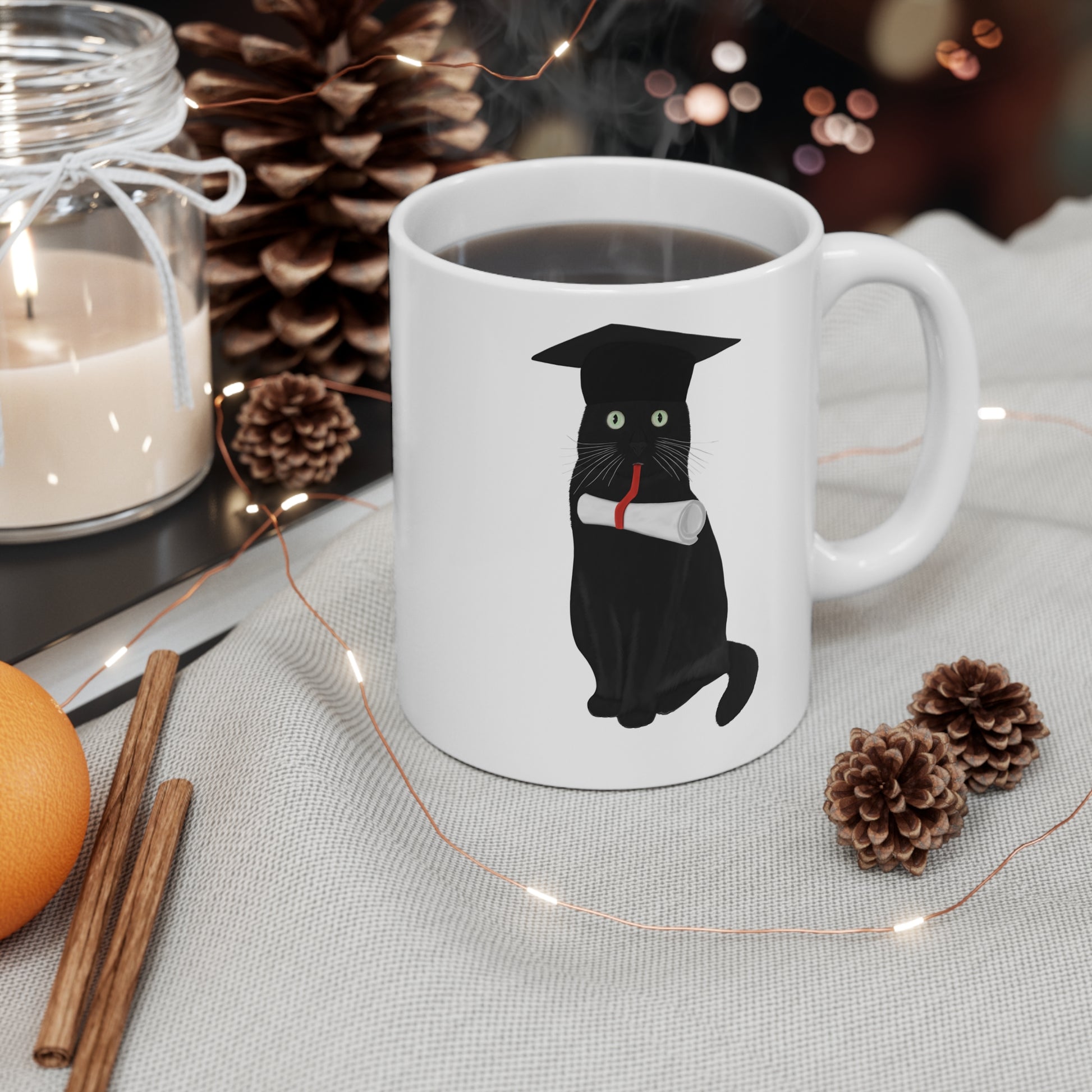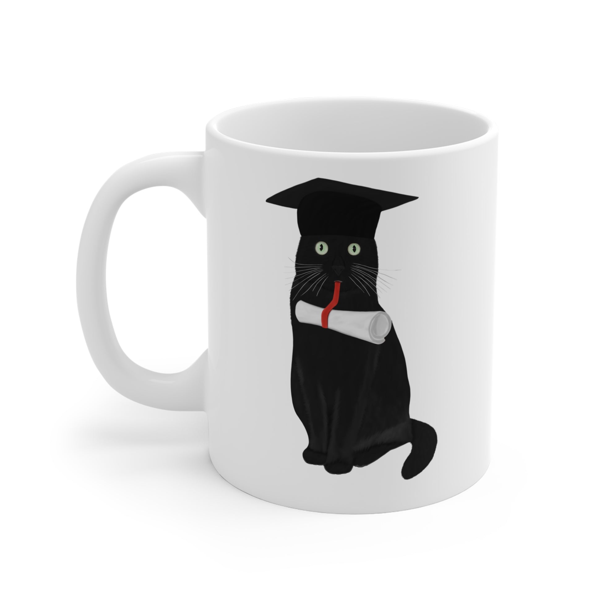 Black Cat Graduation Cat Lover Ceramic Mug White