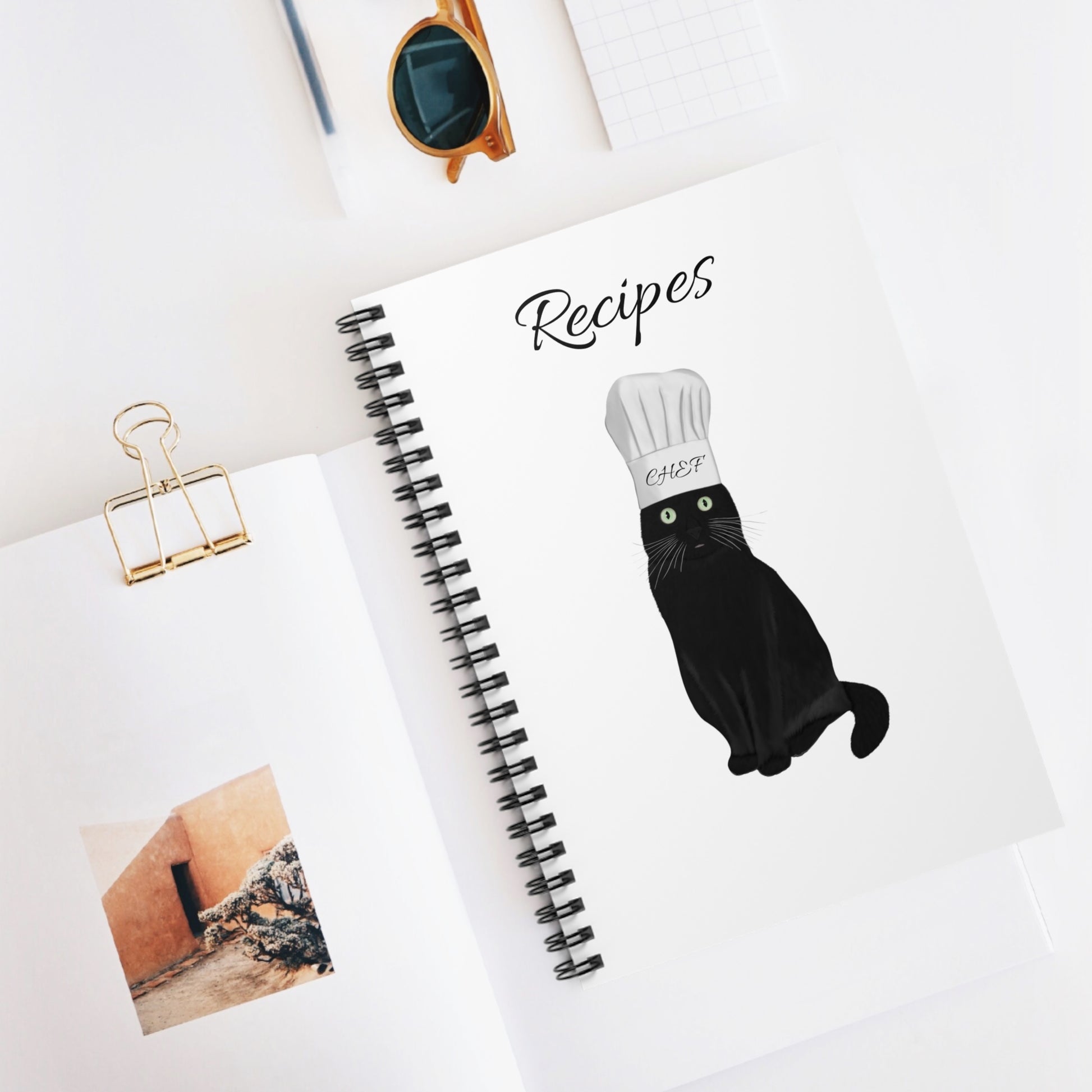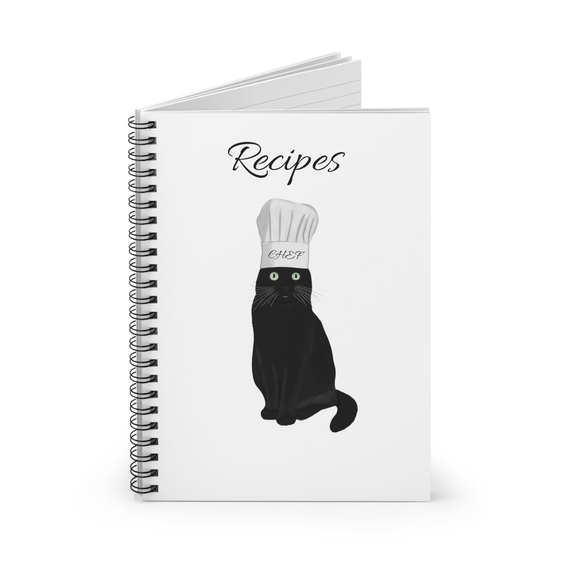 Black Cat Kitchen Chef Recipes Cat Lover Spiral Notebook Ruled Line 6" x 8"