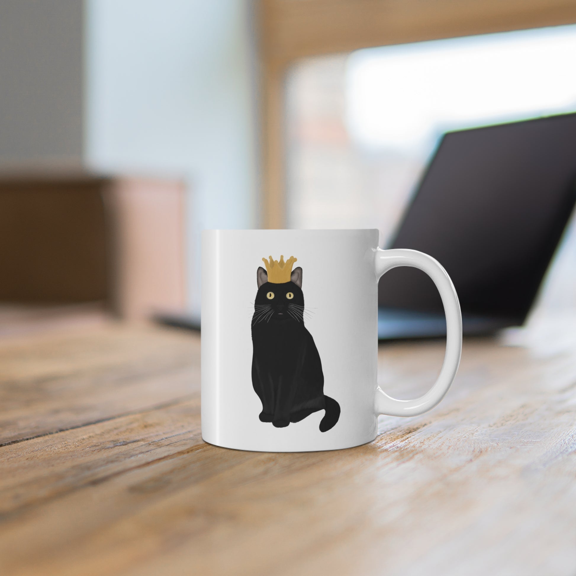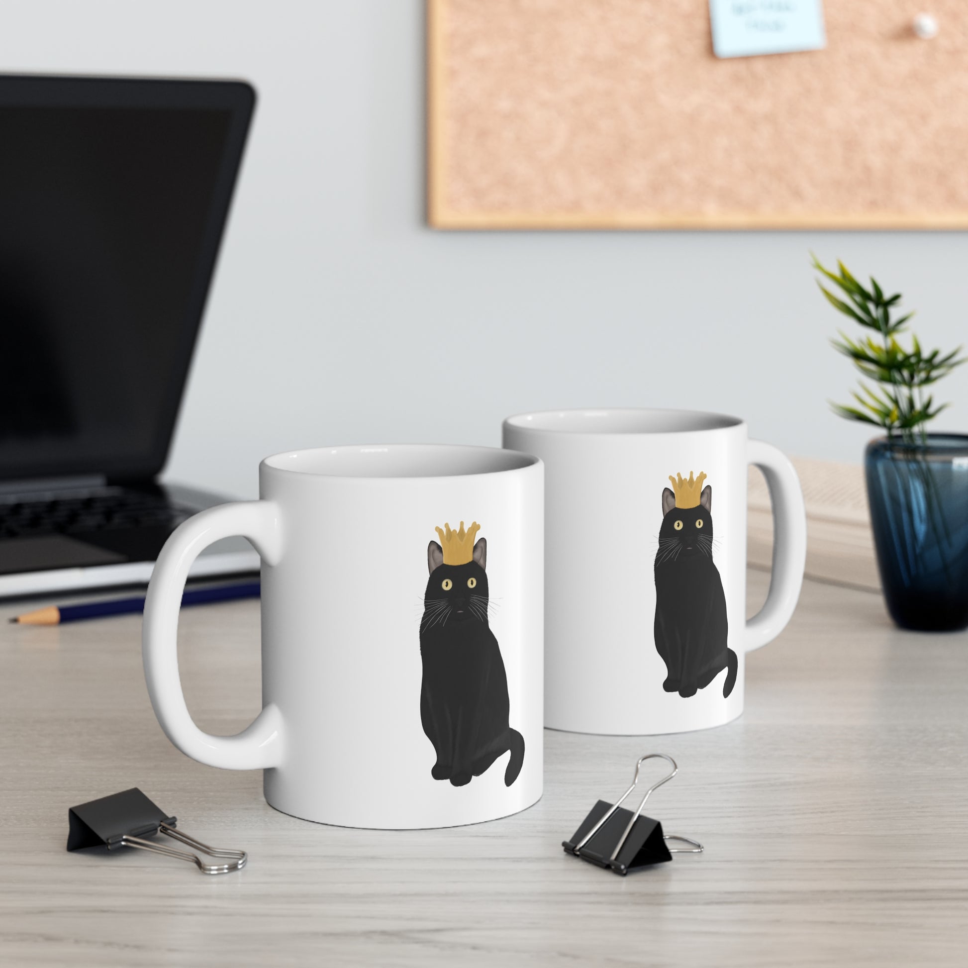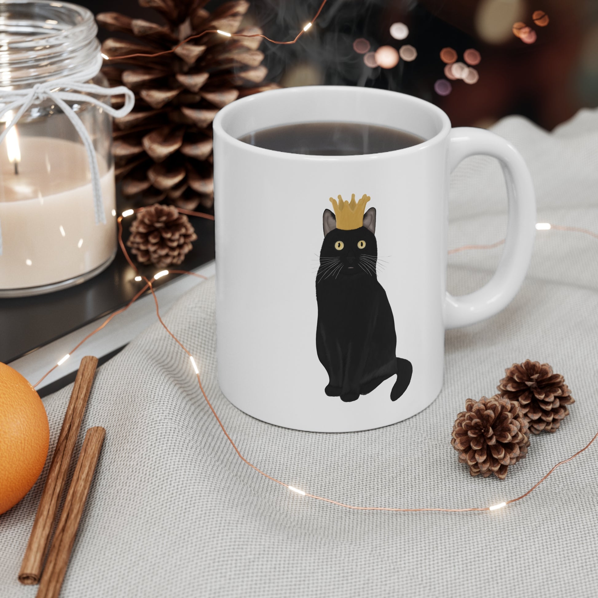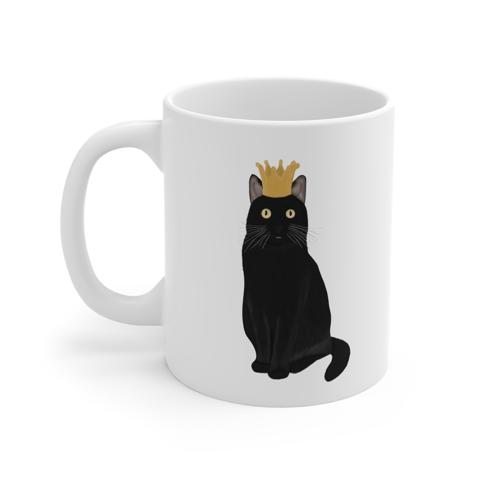 Black Cat with Crown Cat Lover Ceramic Mug White