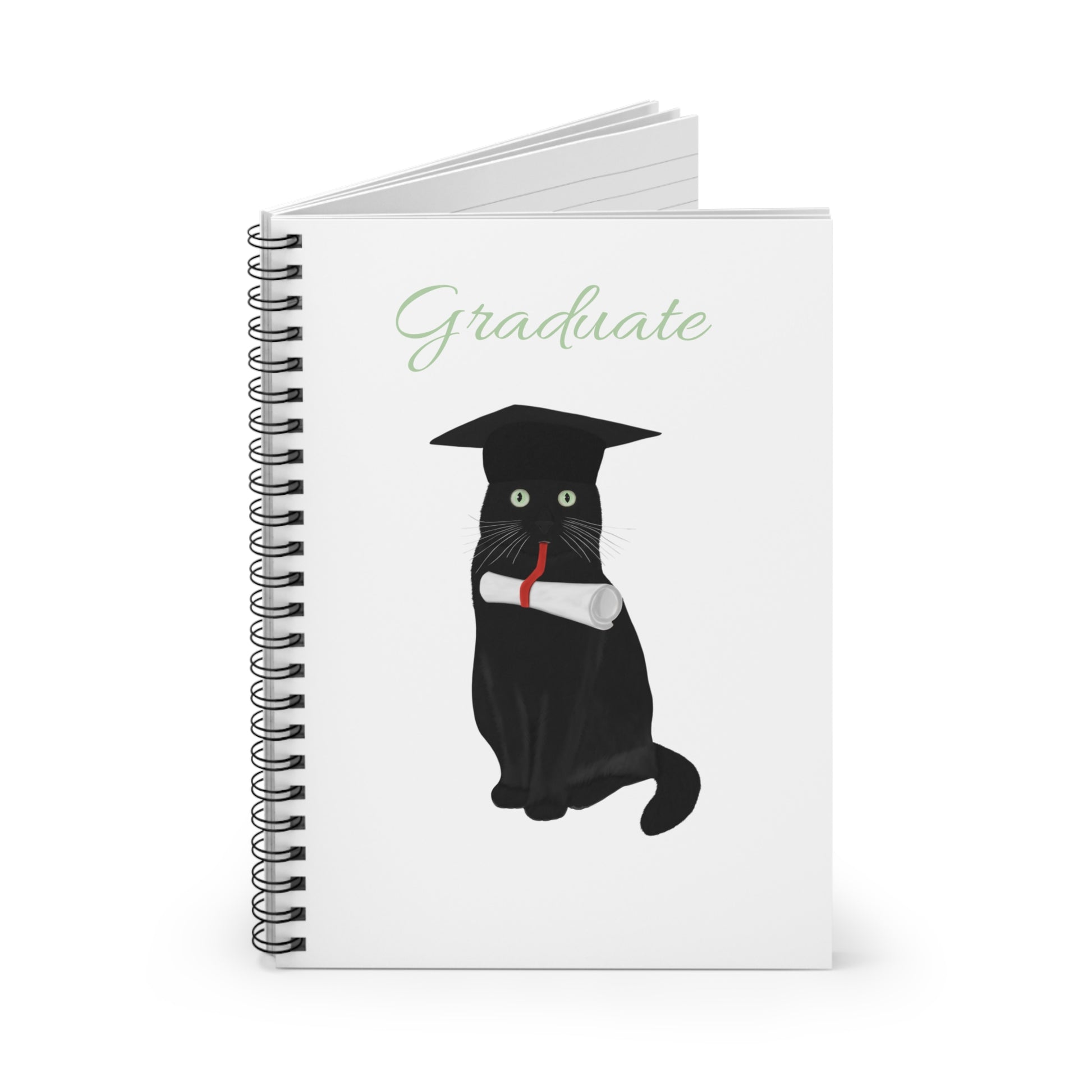 Black Cat with Doctor Hat Graduate Lover Spiral Notebook Ruled Line 6" x 8"