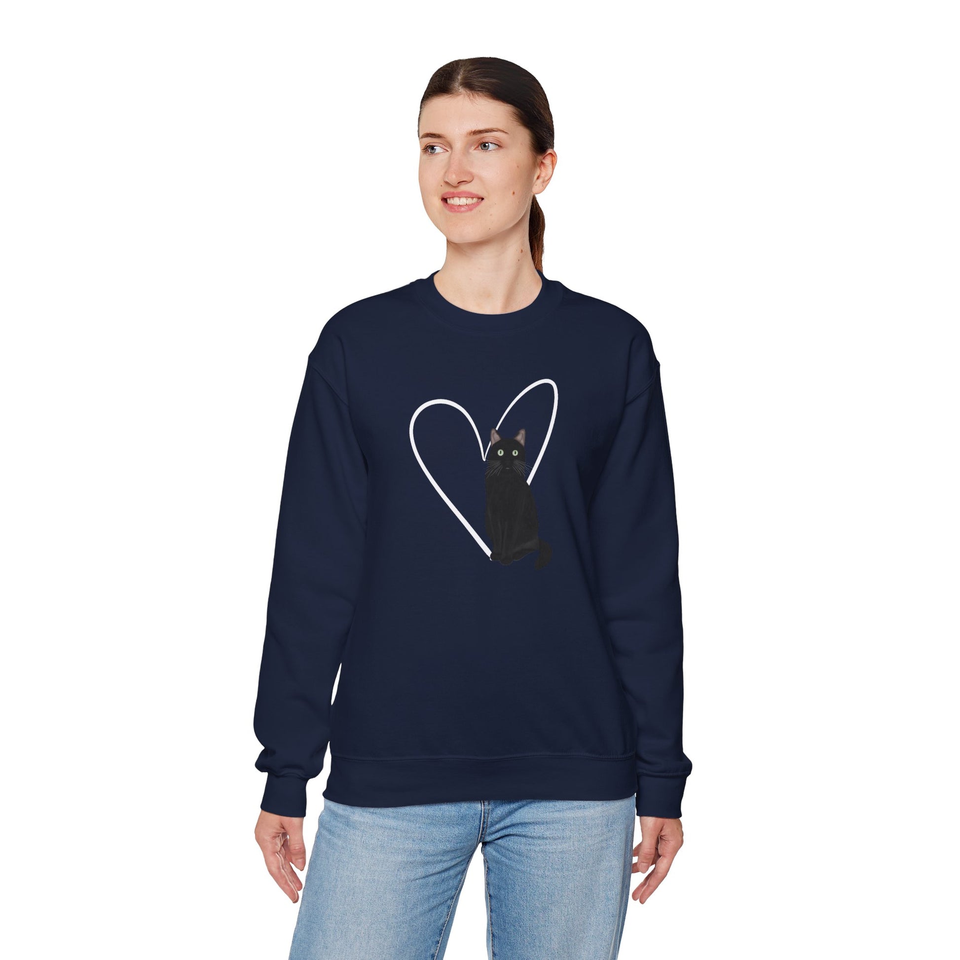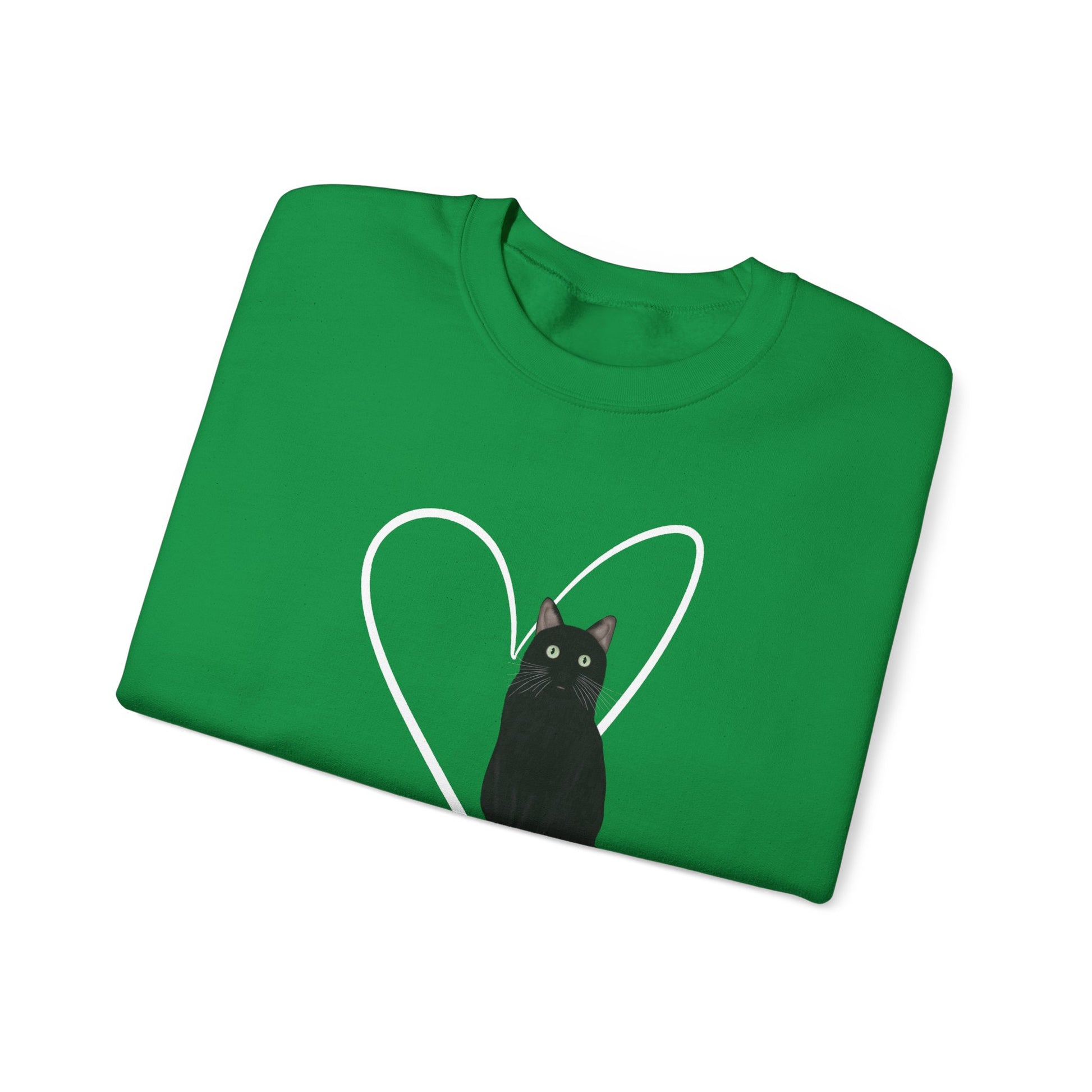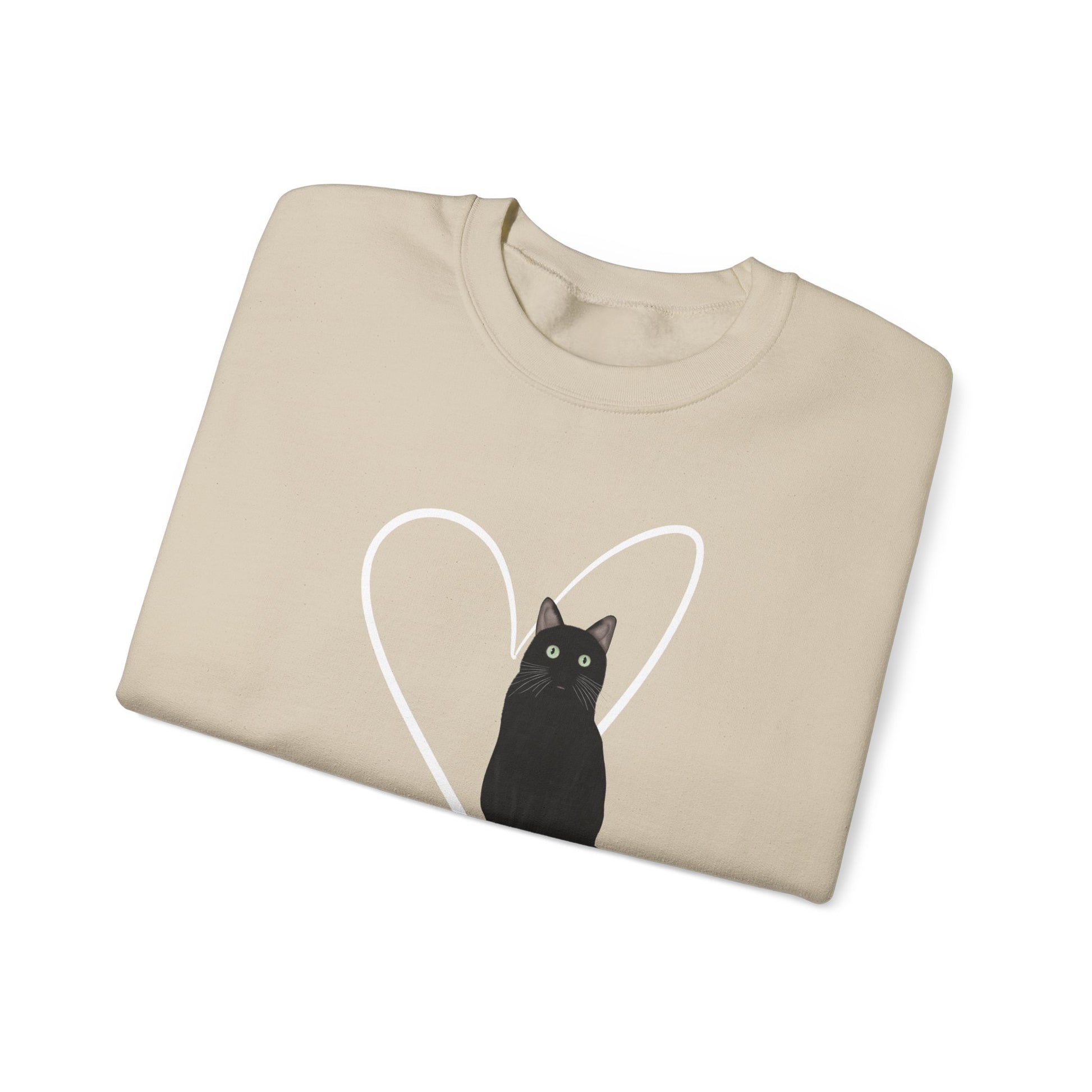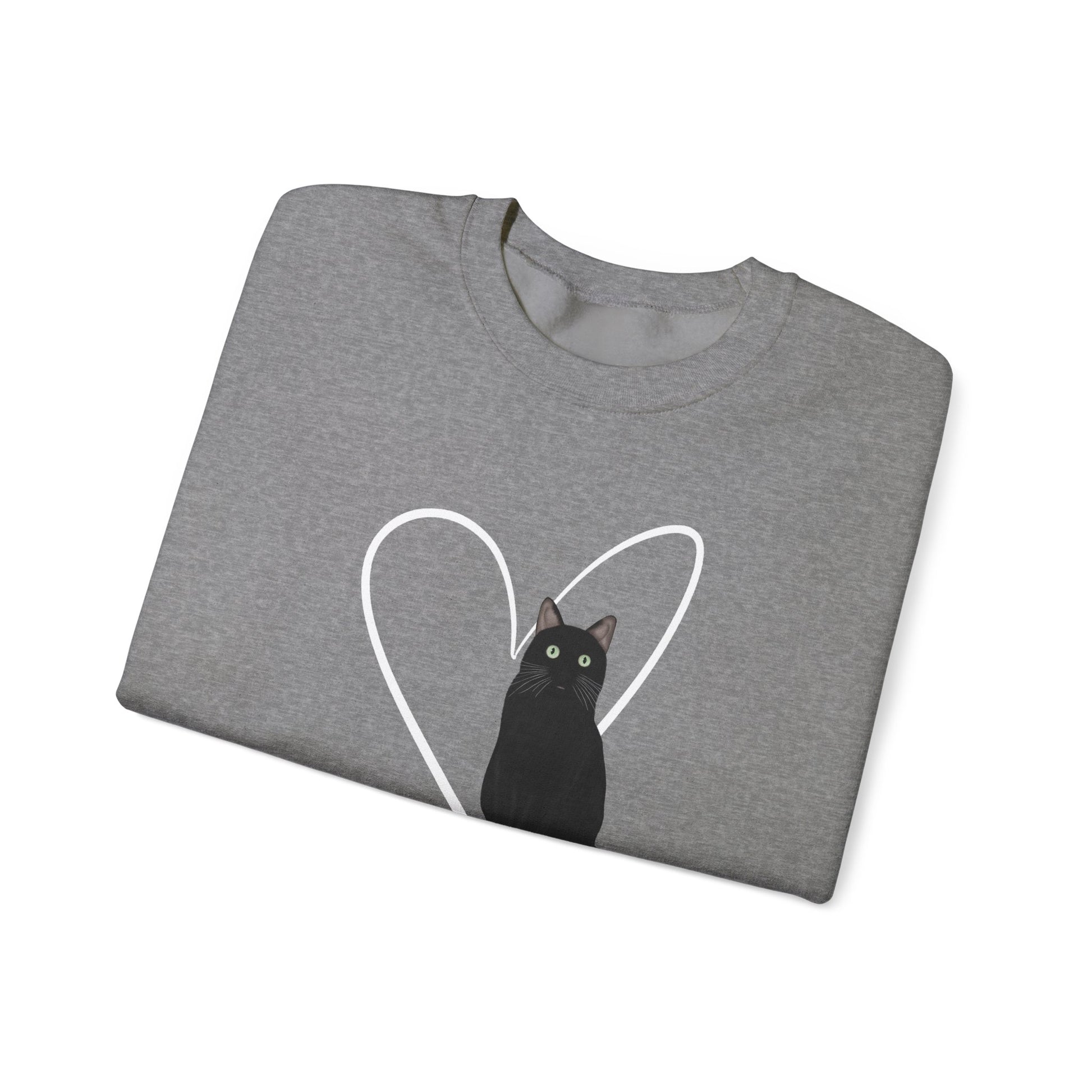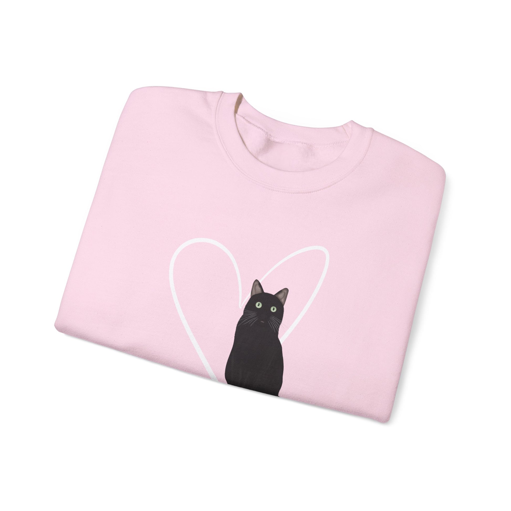 Black Cat with Heart Cat Lover Valentine's Day Sweatshirt