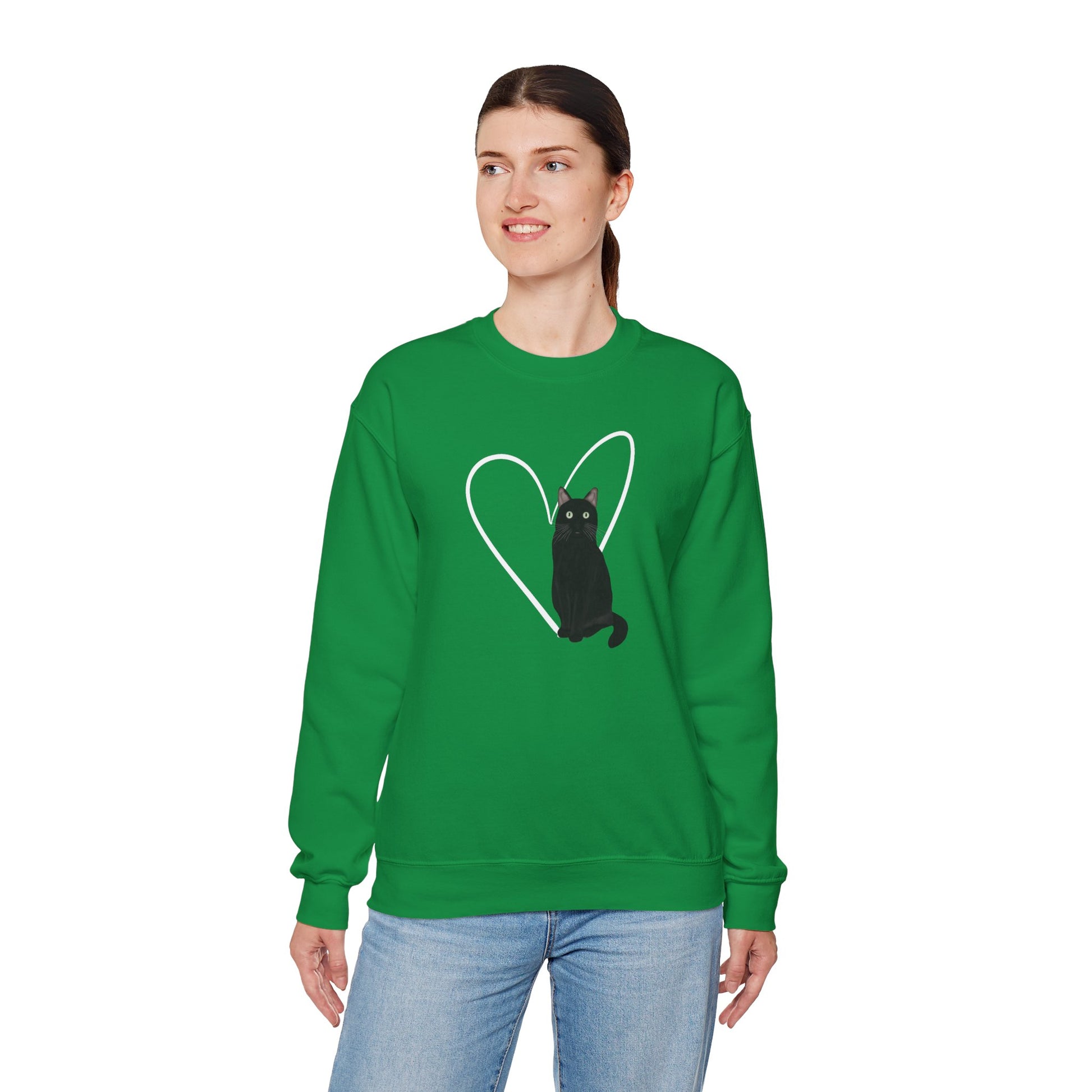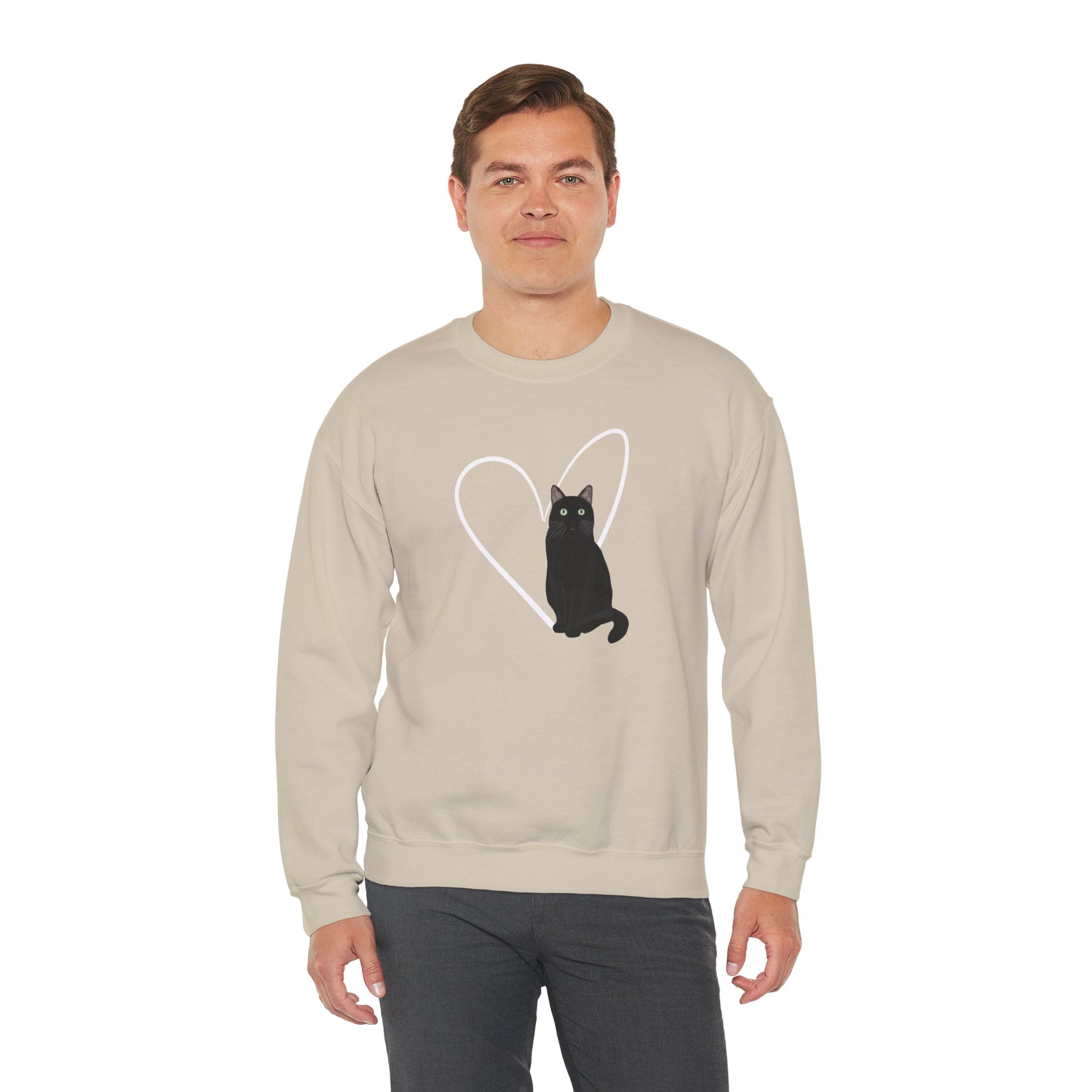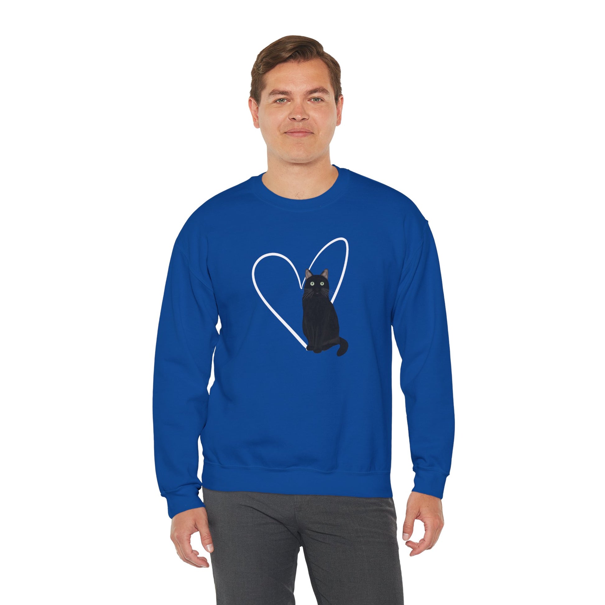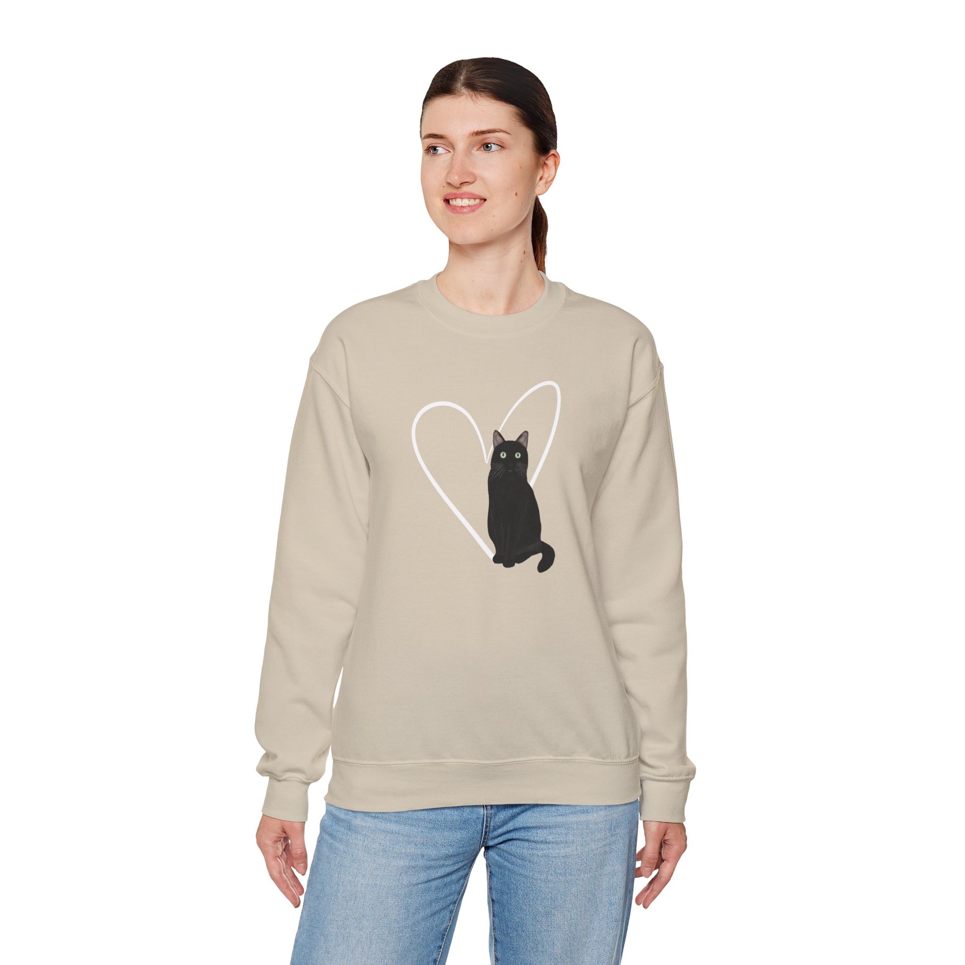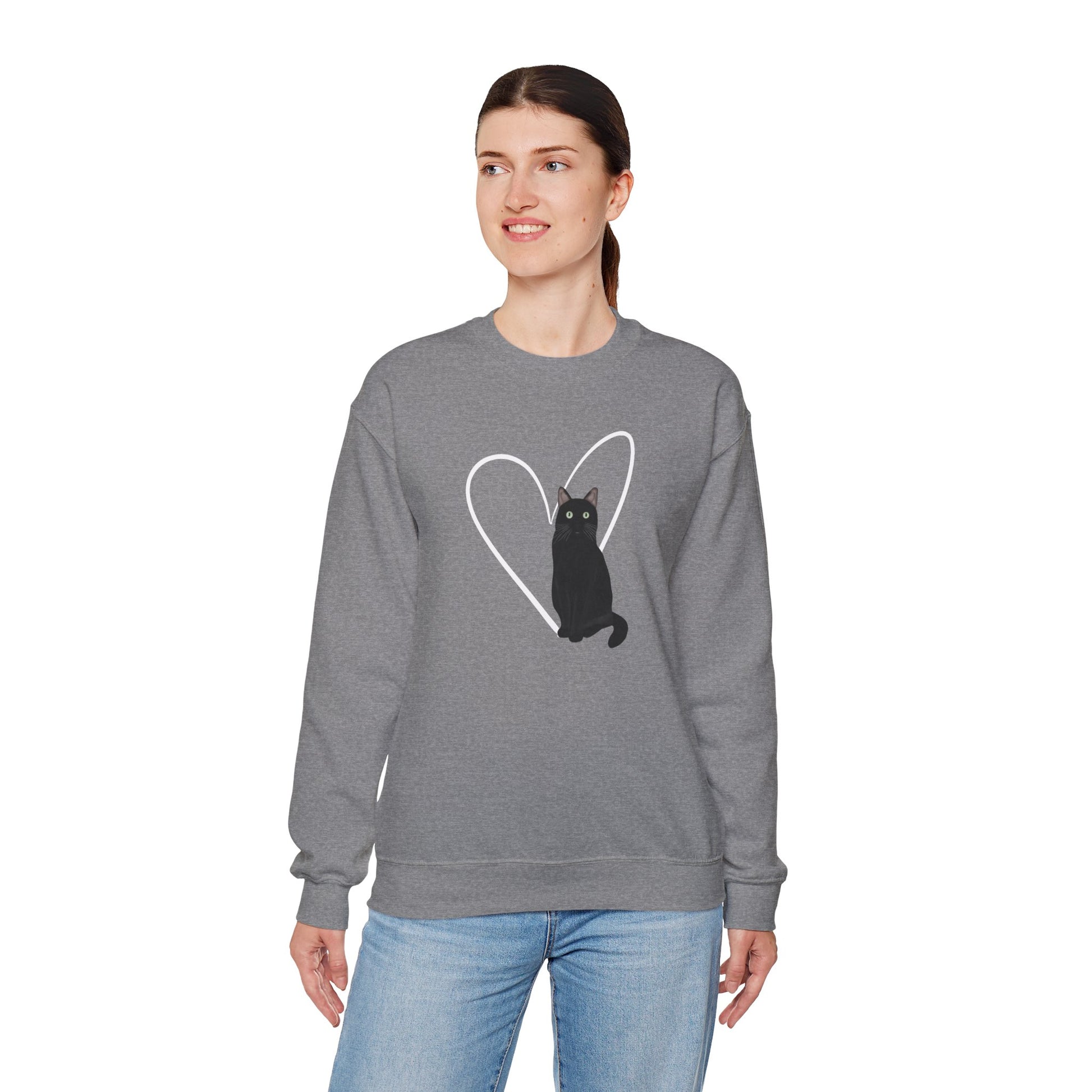 Black Cat with Heart Cat Lover Valentine's Day Sweatshirt