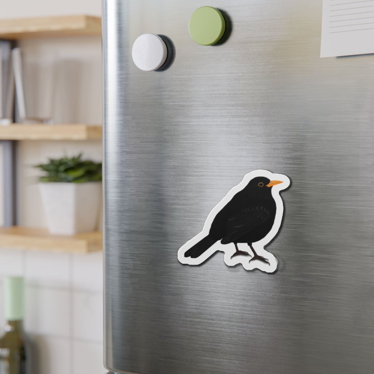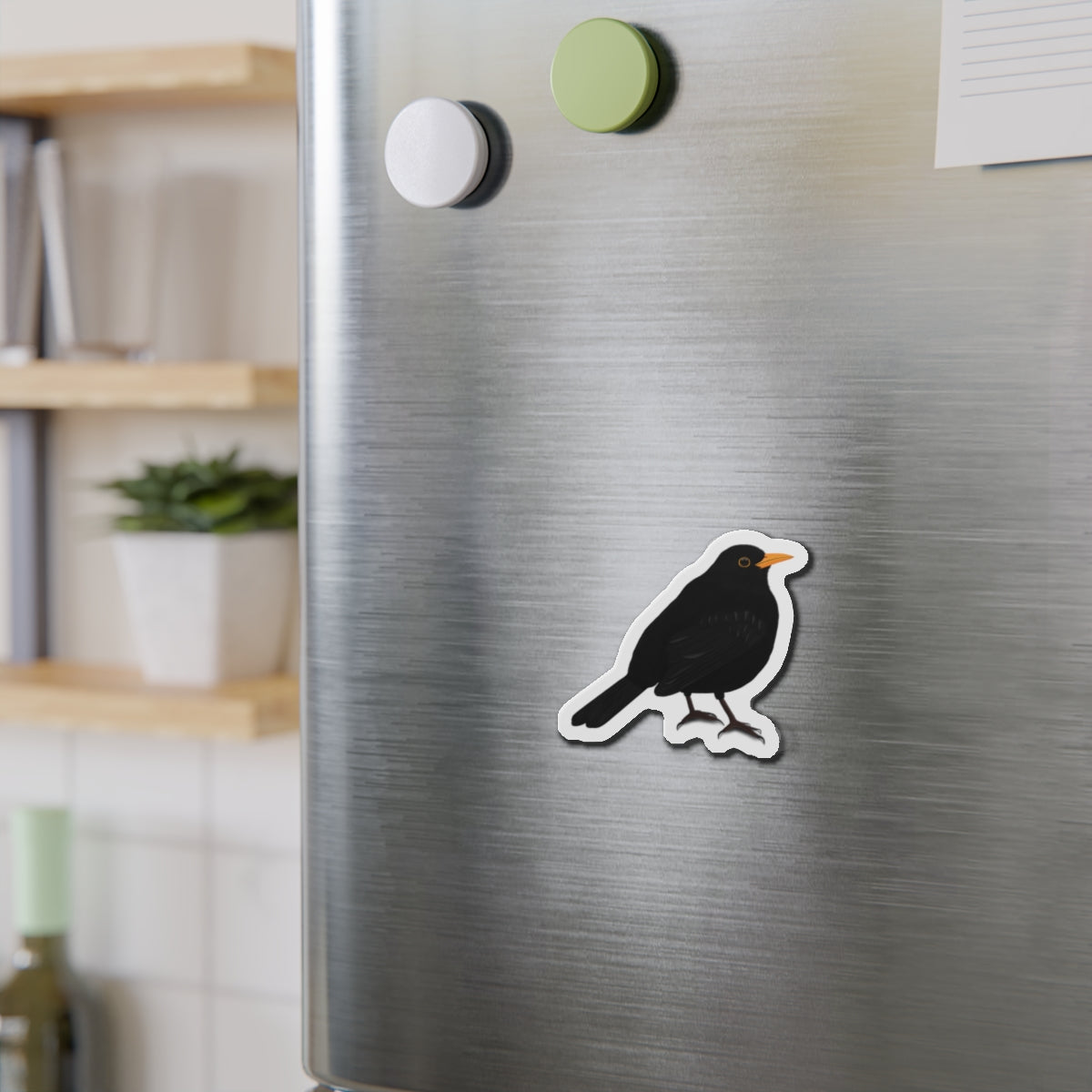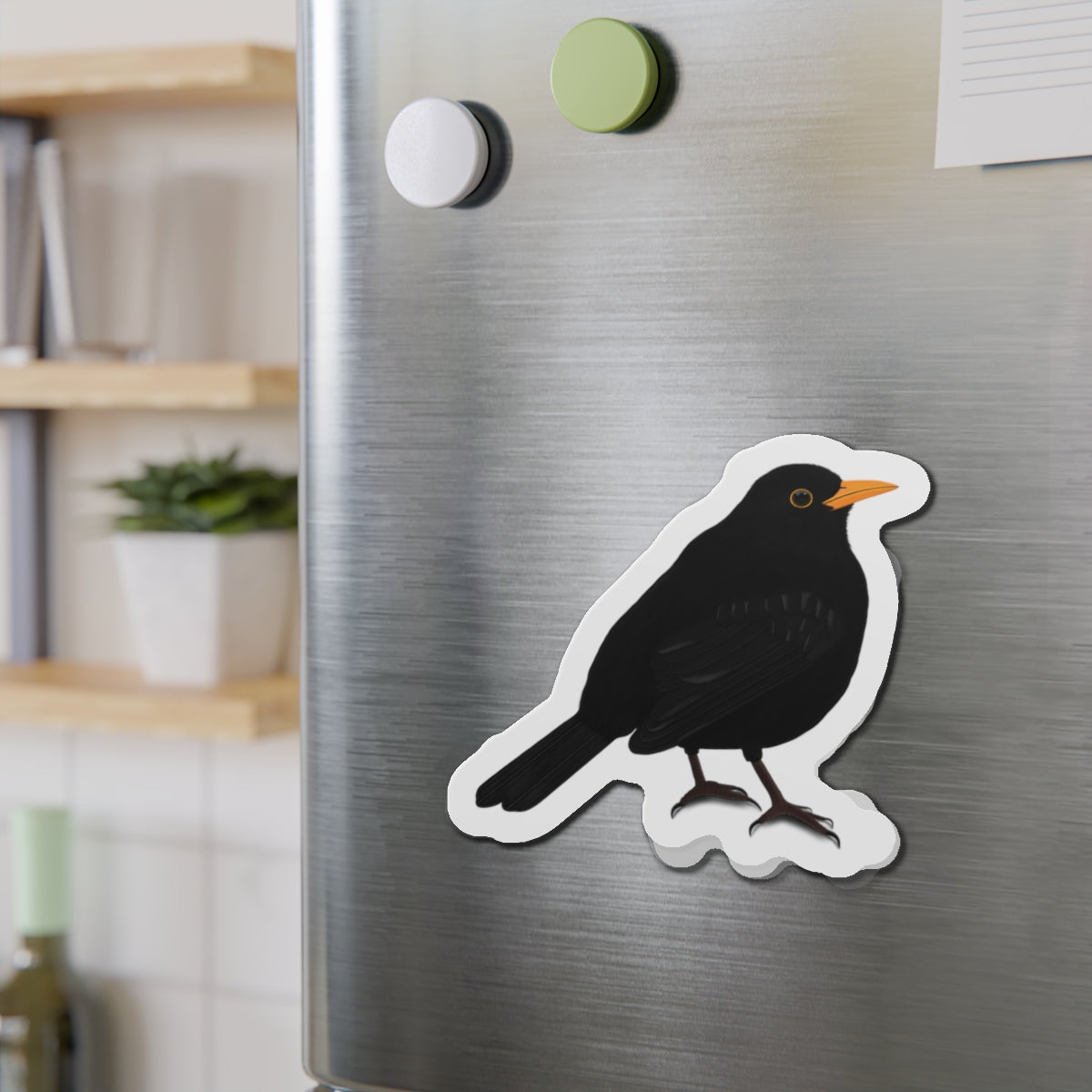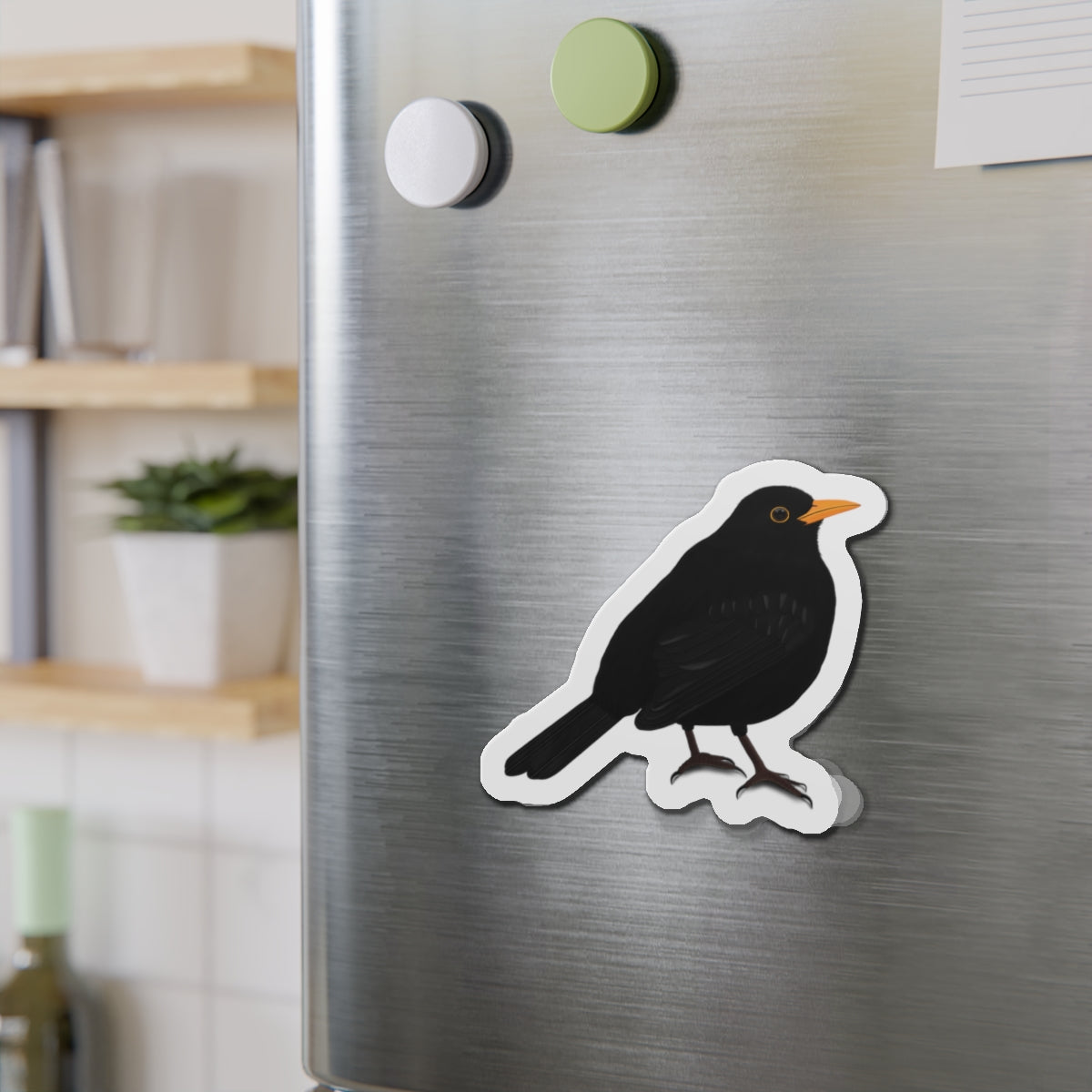 This magnet features a beautiful Blackbird bird illustration. It serves as both a useful tool and a lovely decoration for any home or office space. Made with high-quality materials, it is sure to add a touch of elegance to any setting.