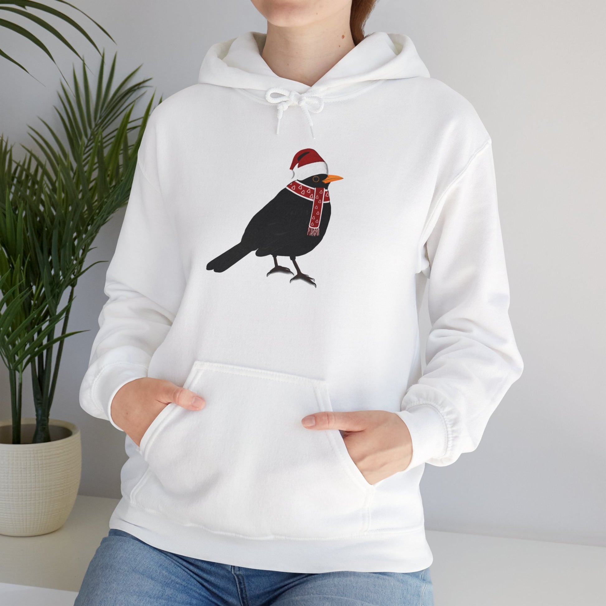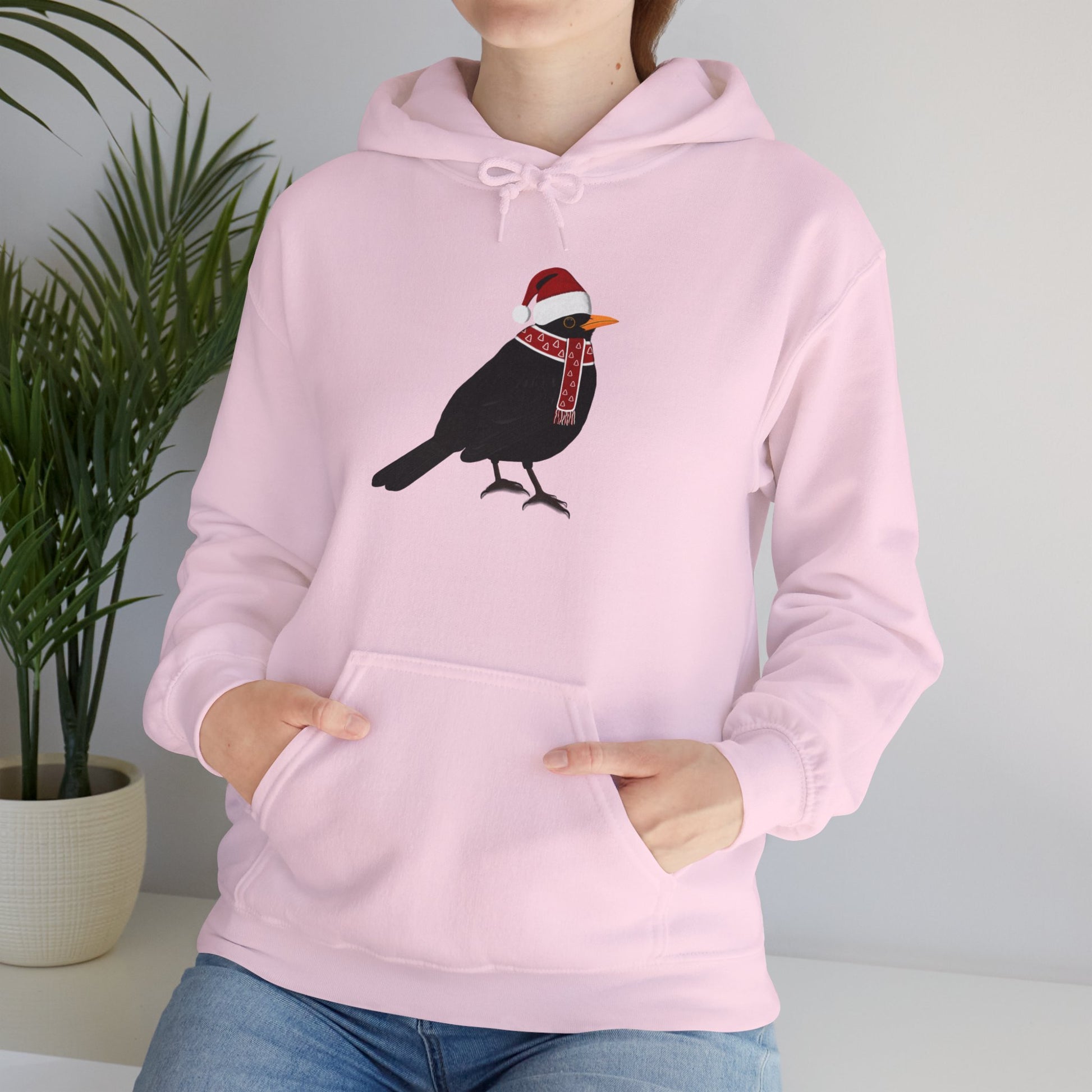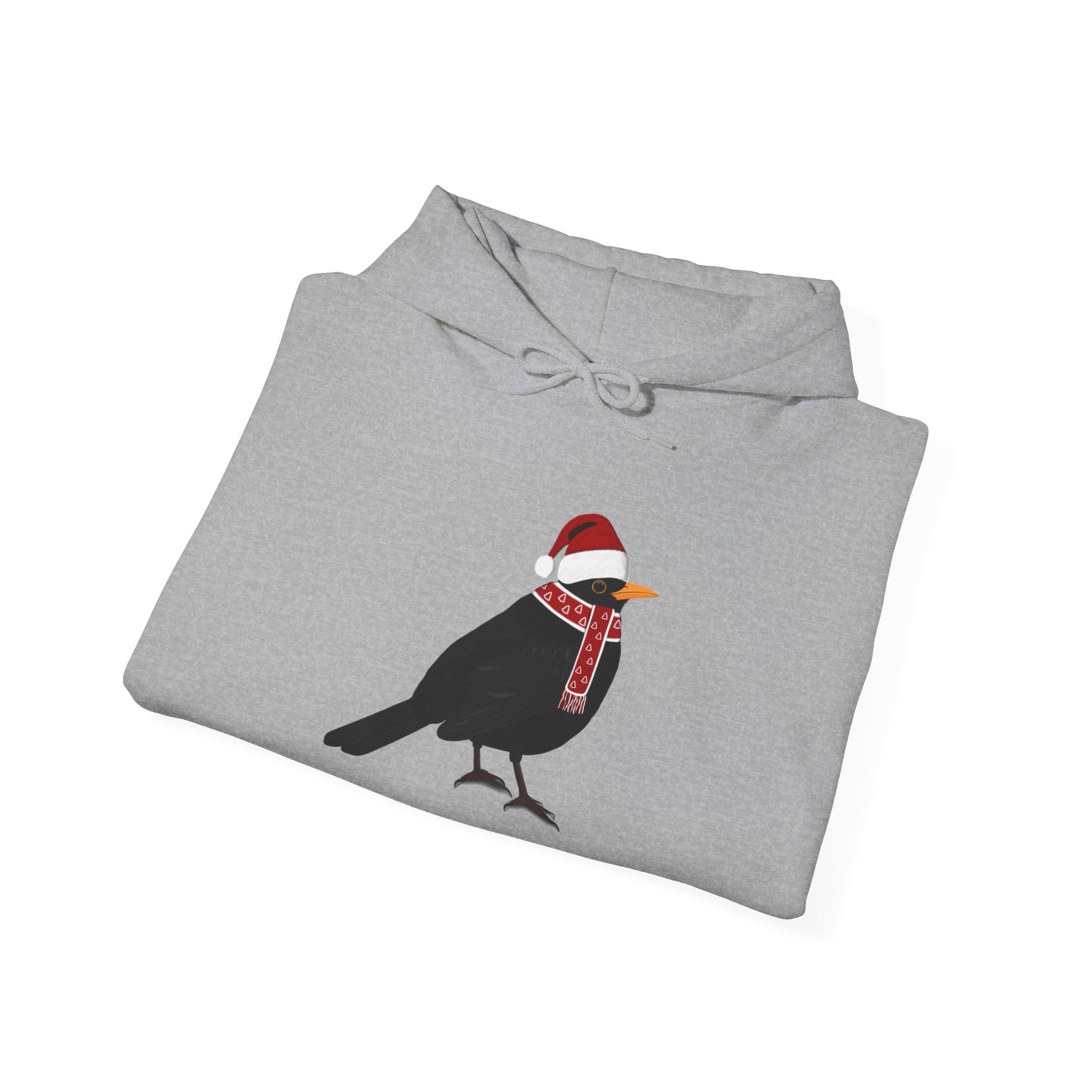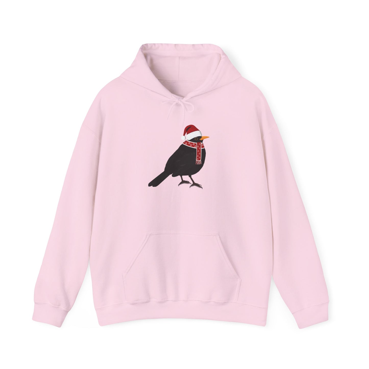 Blackbird Christmas Bird with Santa Hat Birdwatcher Birdlover Hoodie