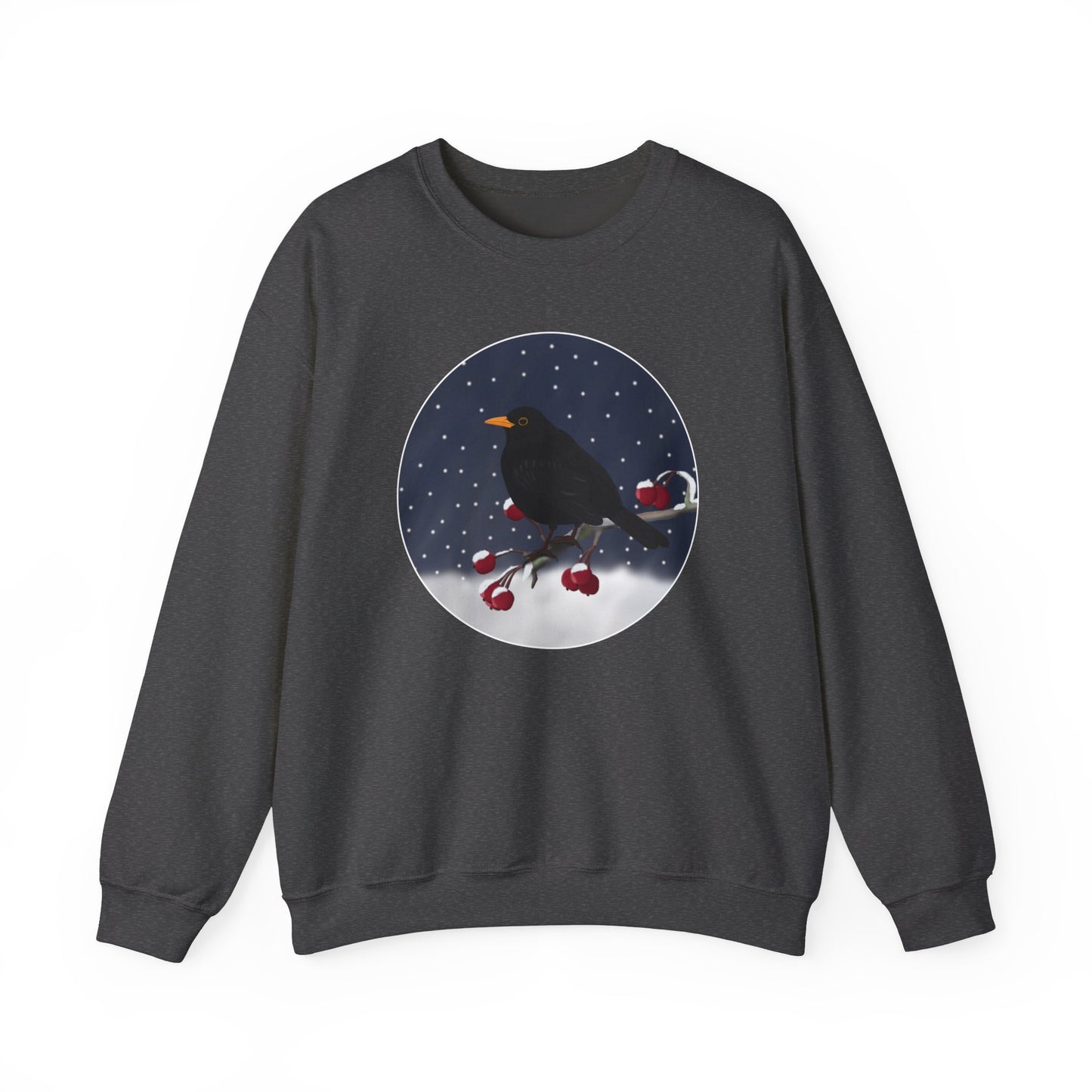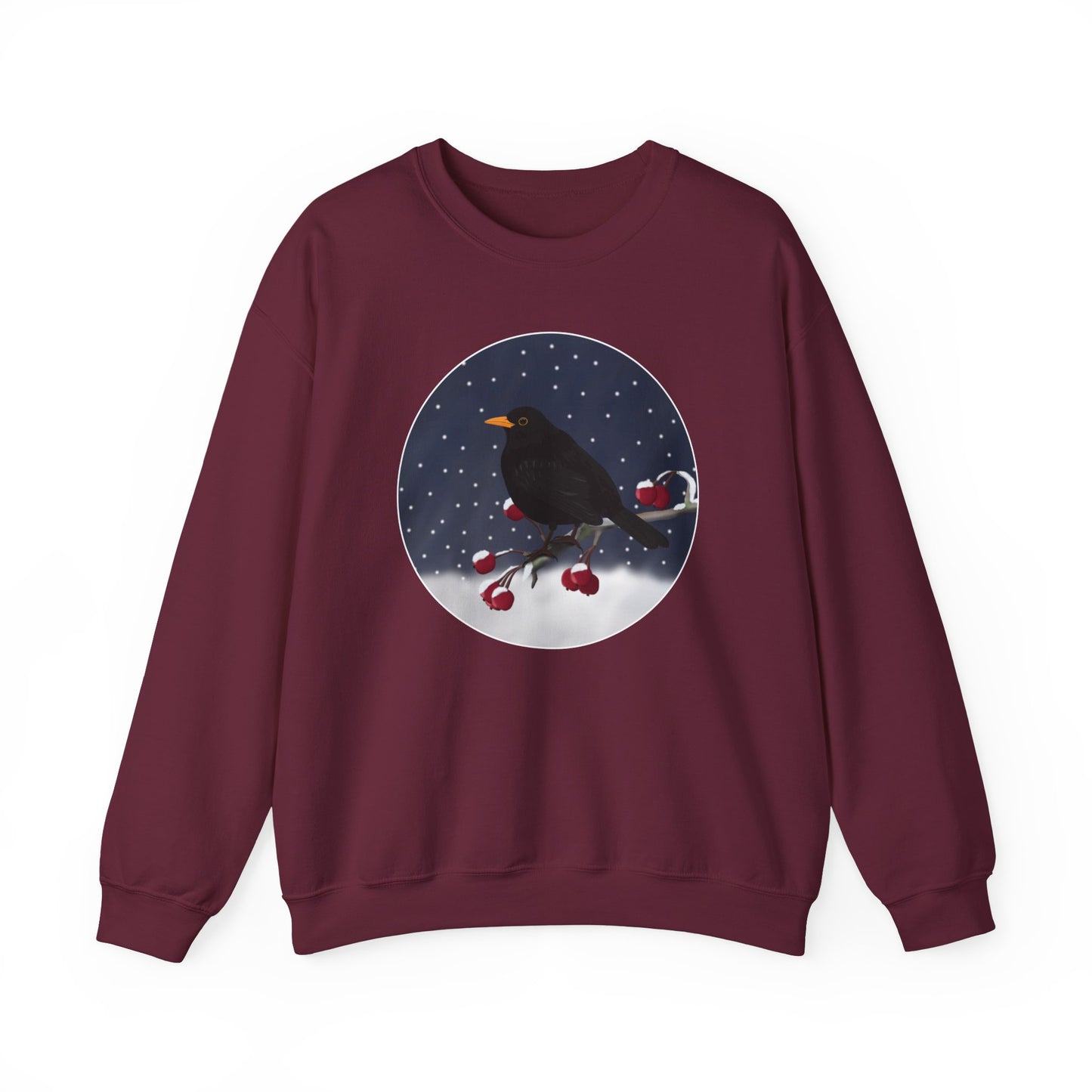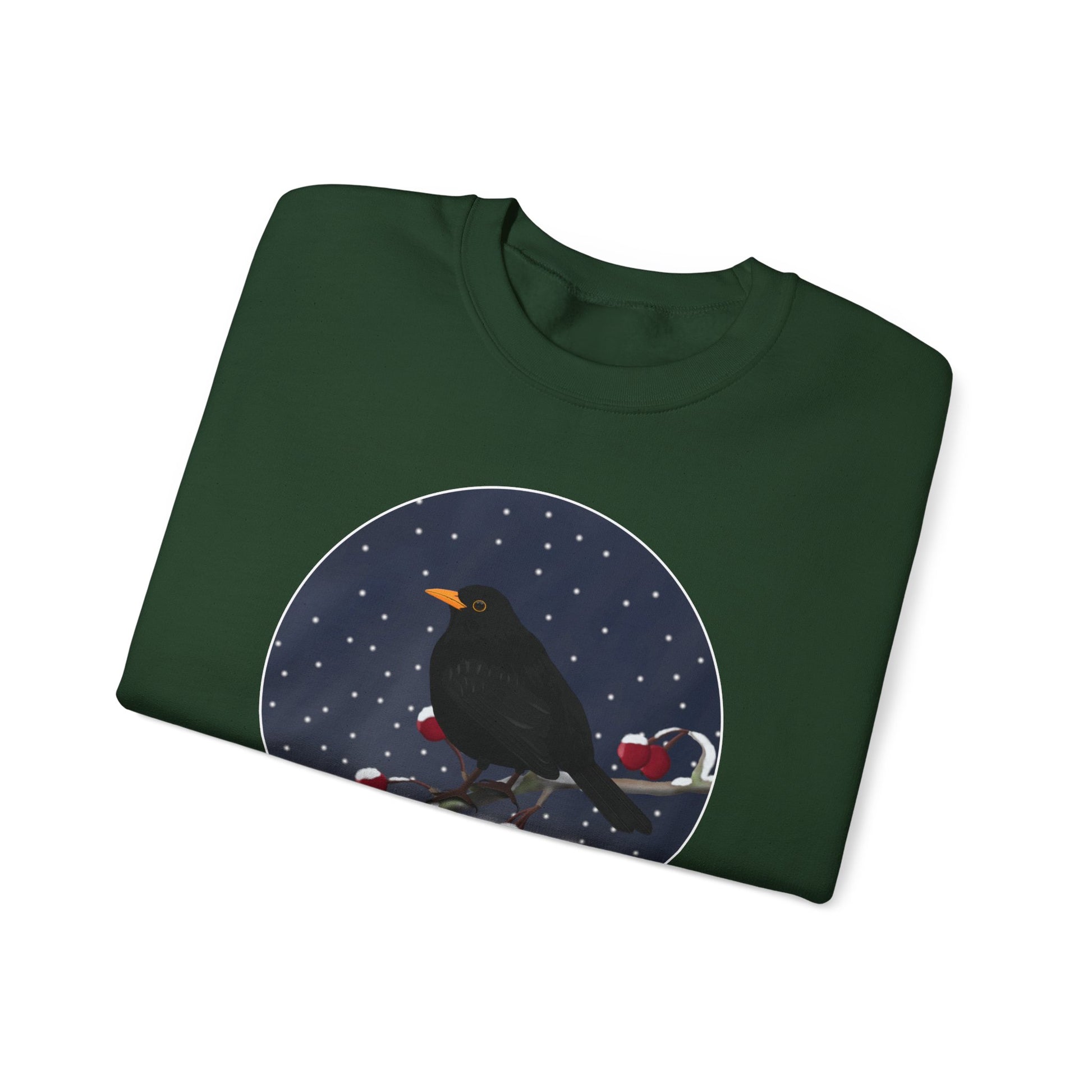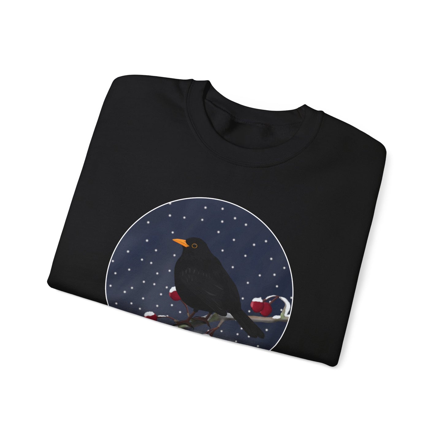 Blackbird on a Winter Branch Birdwatcher Christmas Bird Sweatshirt