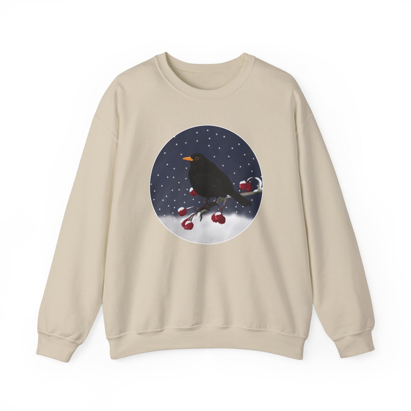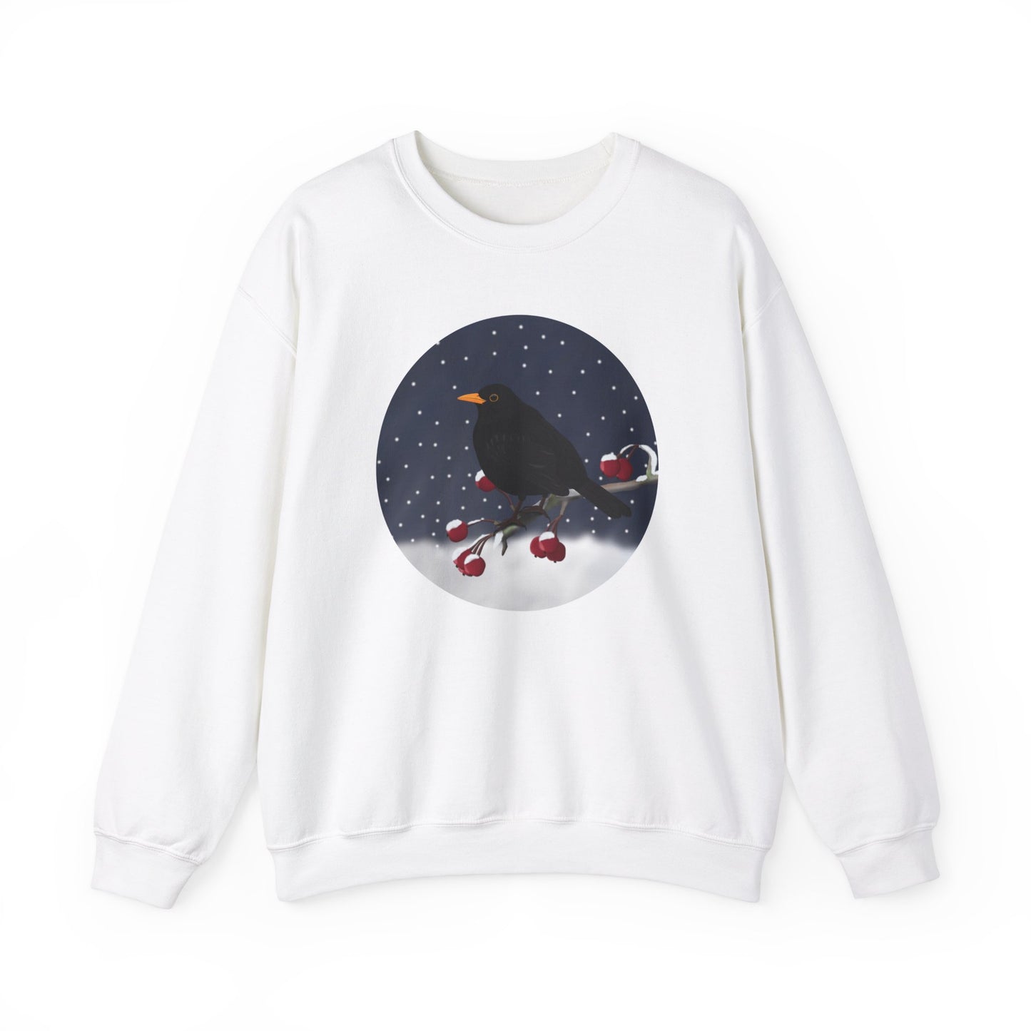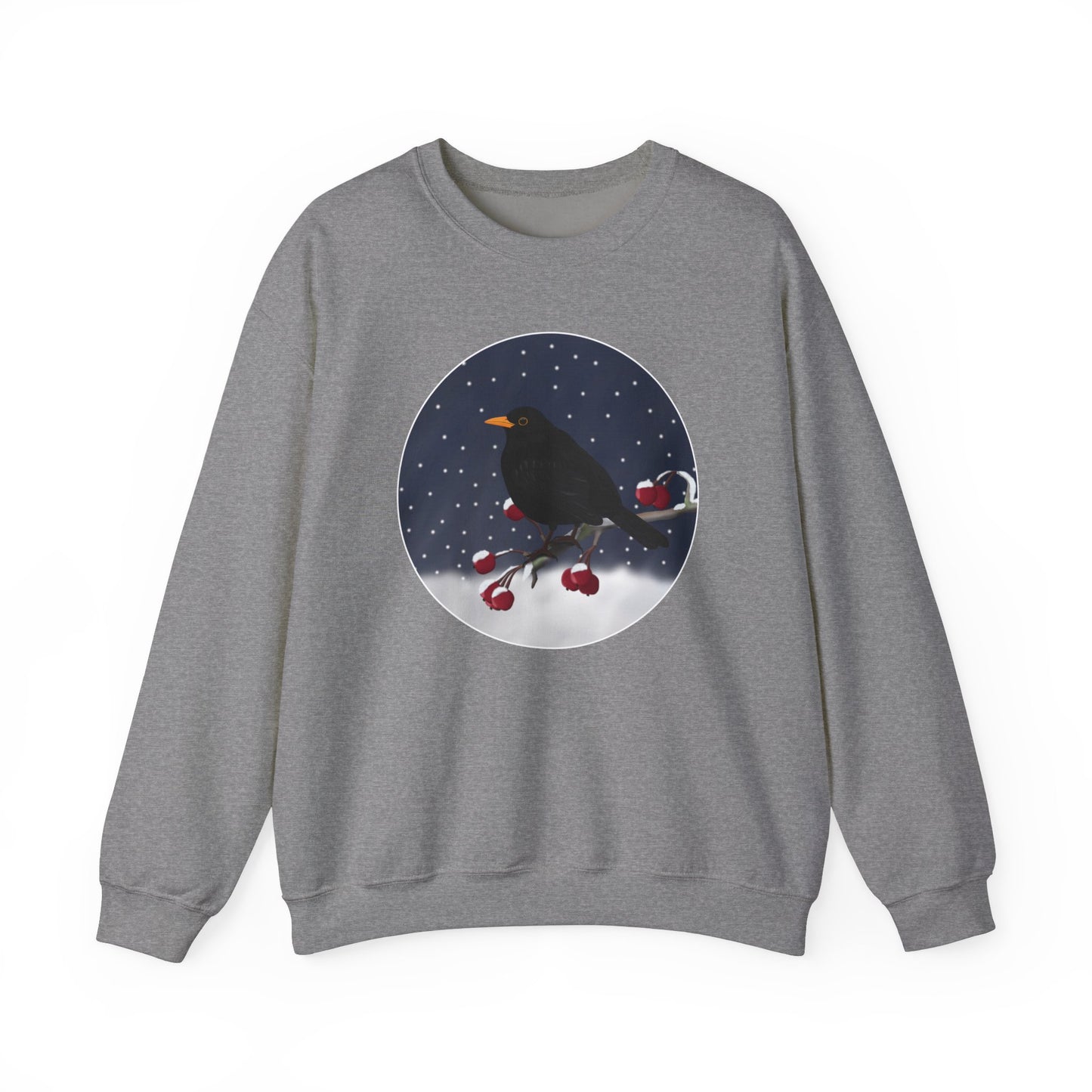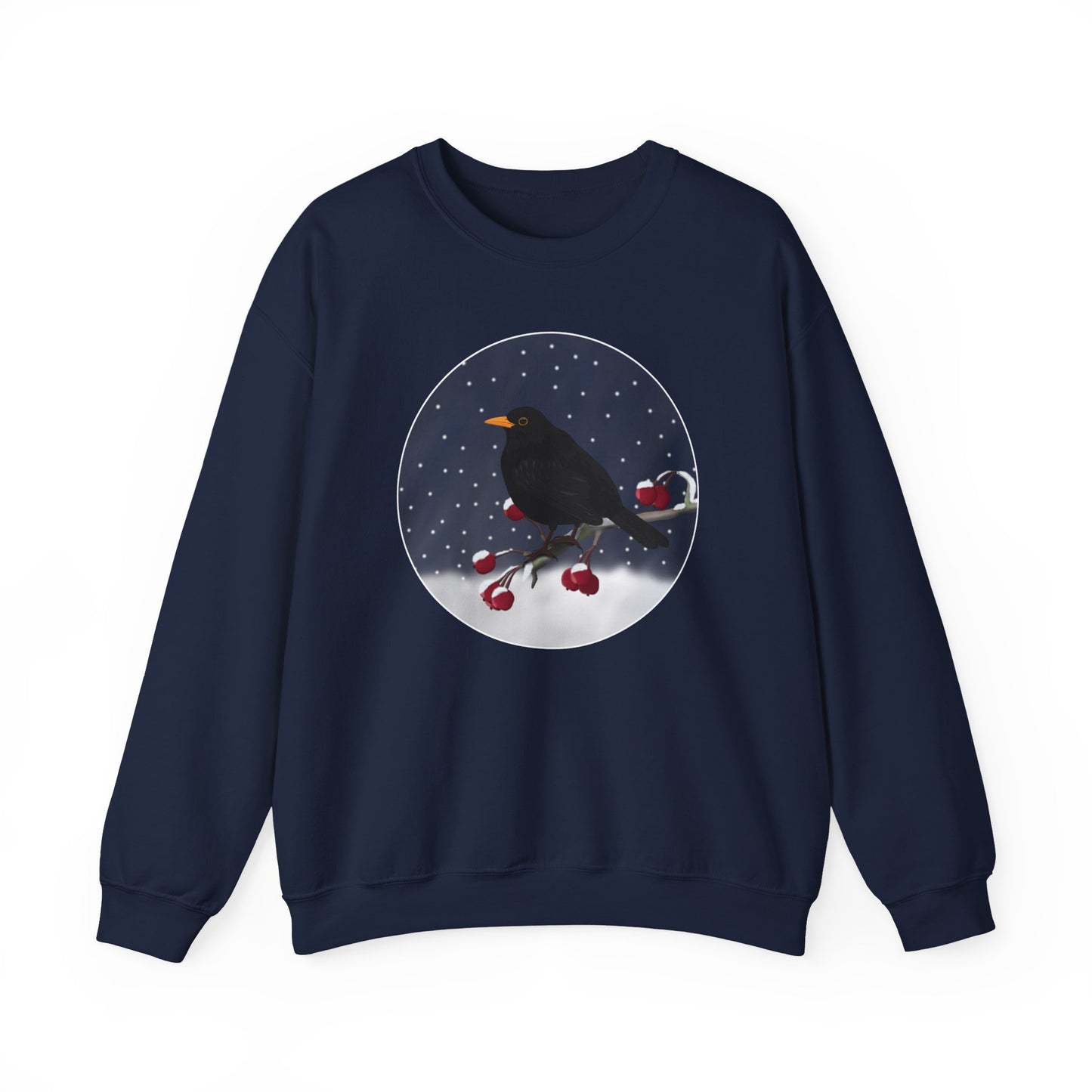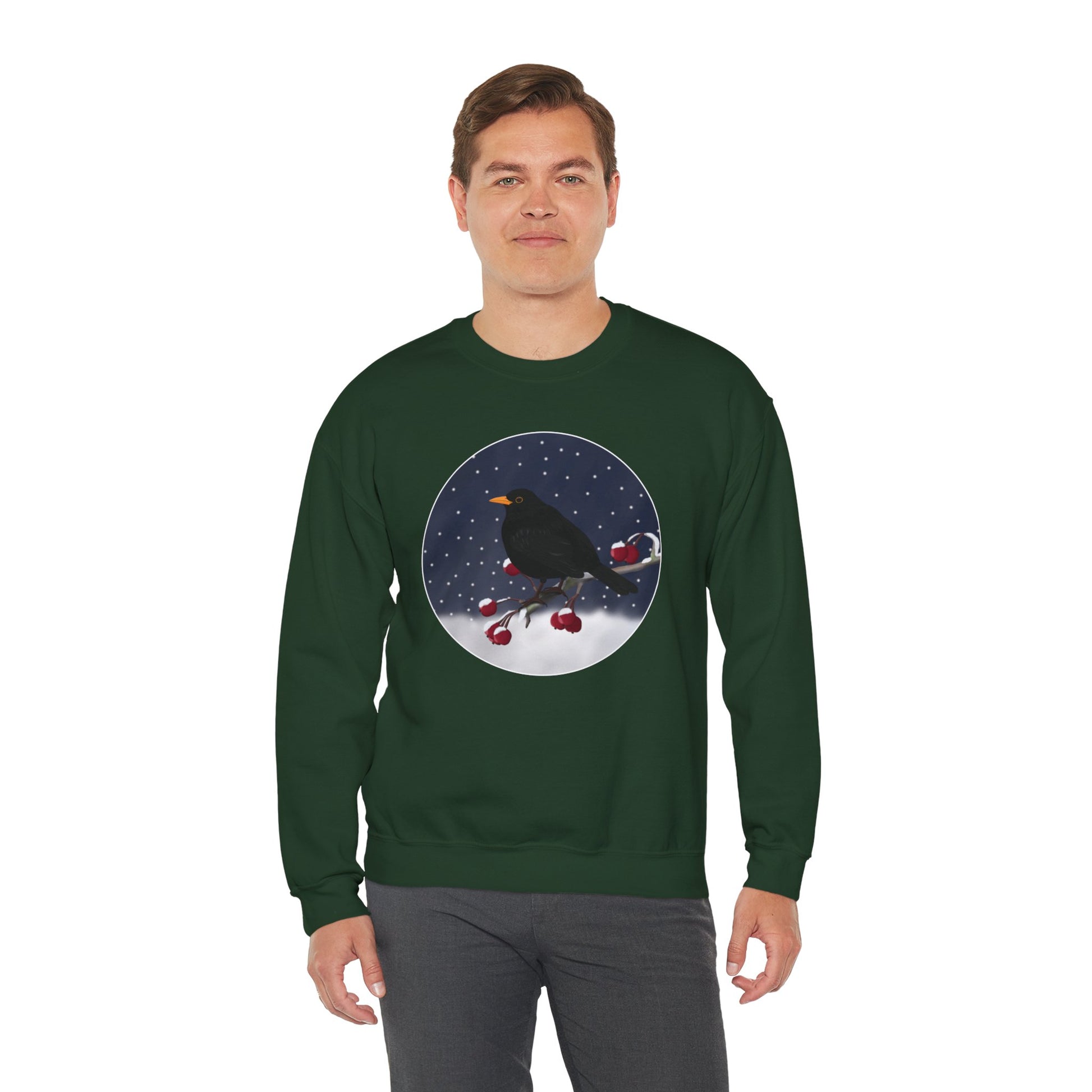 Blackbird on a Winter Branch Birdwatcher Christmas Bird Sweatshirt